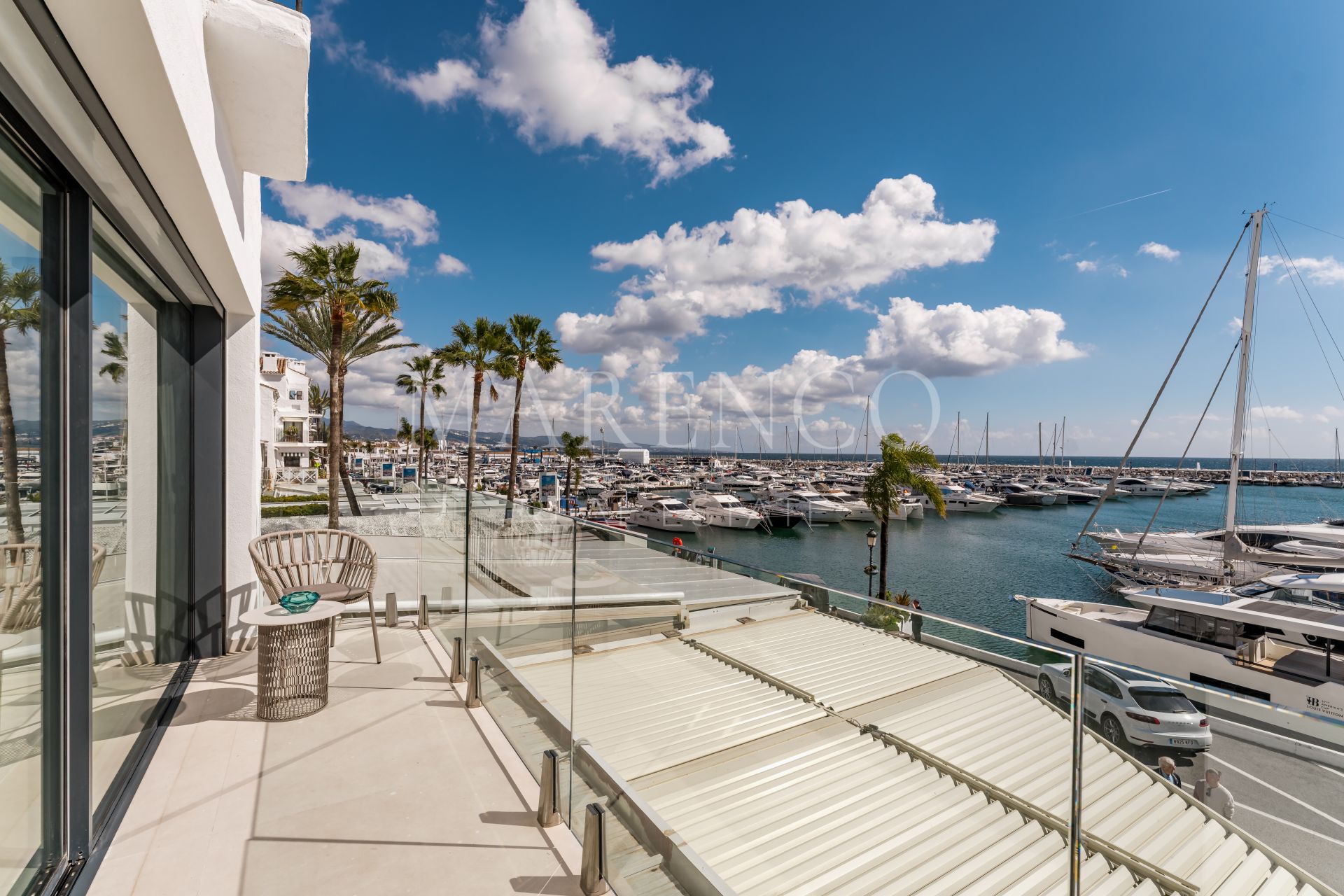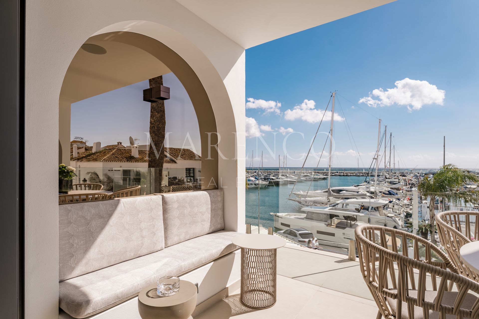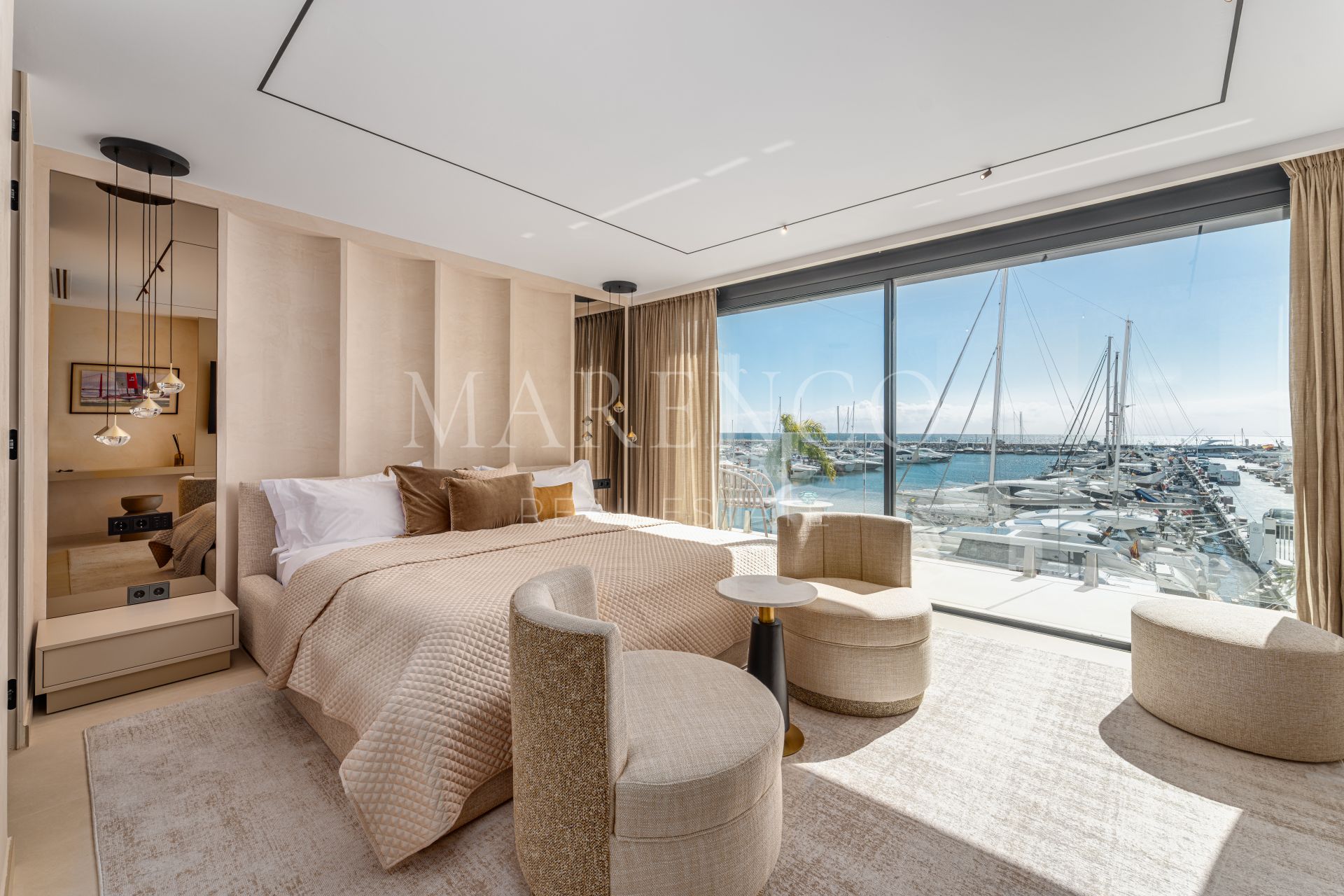 Experimenta el lujo sin igual en este apartamento completamente renovado en primera línea en Puerto Banús, que ofrece impresionantes vistas panorámicas del puerto y los yates de lujo. Diseñado con un gusto exquisito y acabados de alta gama, esta propiedad excepcional cuenta con tres amplios dormitorios en suite, además de un aseo para invitados, garantizando confort y privacidad.