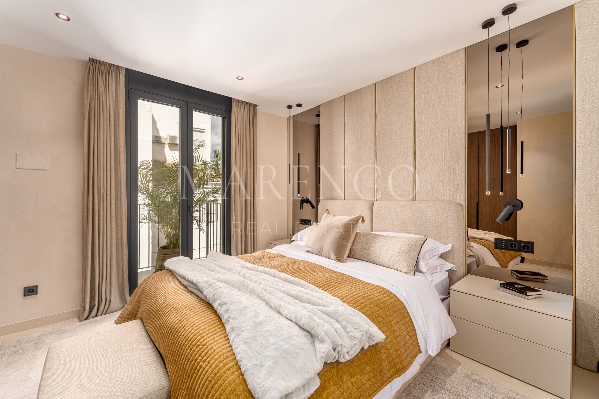El apartamento dispone de dos elegantes terrazas, perfectas para relajarse o recibir invitados. Disfruta de cenas al aire libre con una vista privilegiada del exclusivo estilo de vida de Puerto Banús. El espacio de estar de concepto abierto ha sido diseñado para maximizar la luz natural y las impresionantes vistas, mientras que la cocina moderna está equipada con electrodomésticos de última generación.