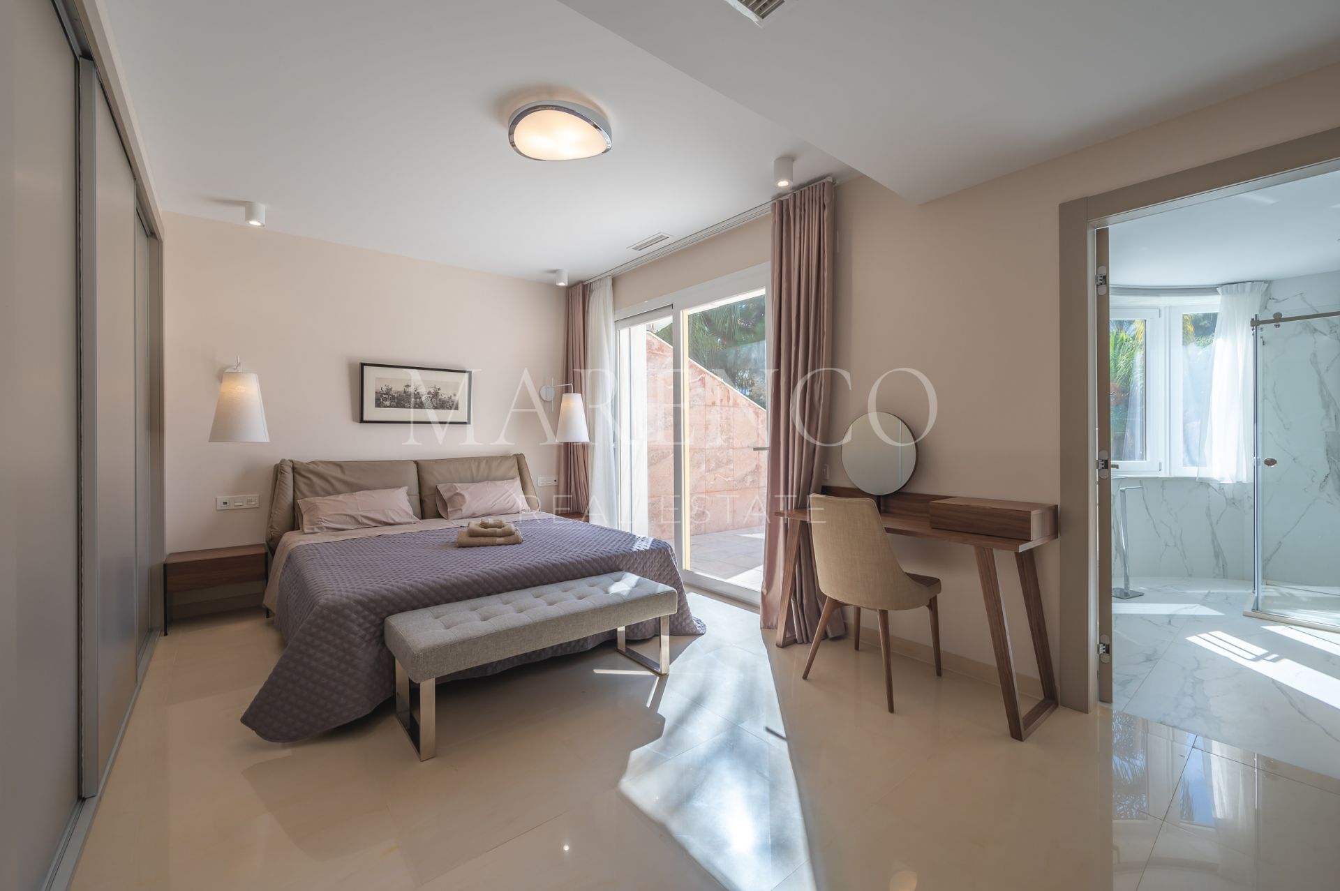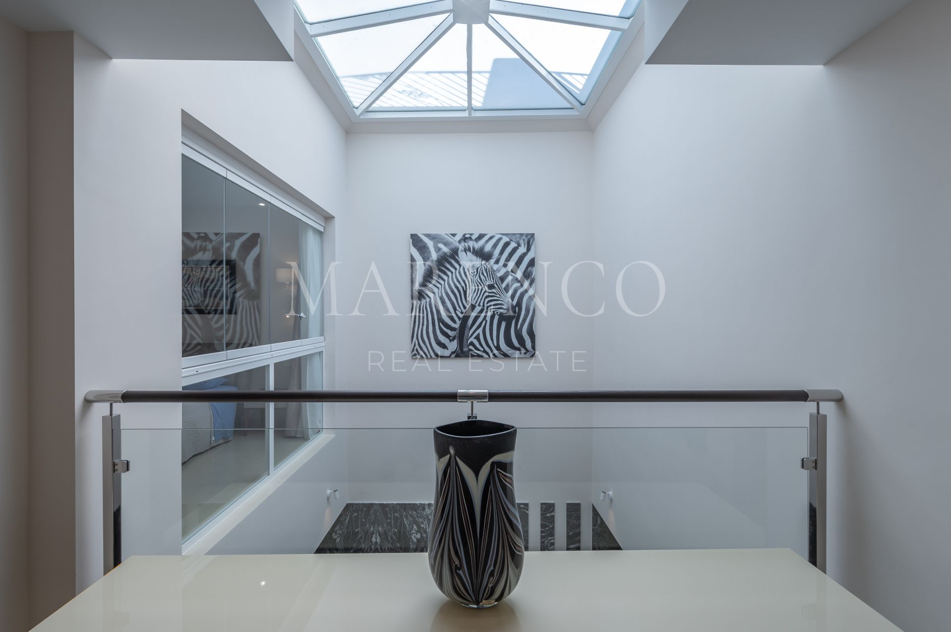 El dúplex tiene 6 habitaciones, donde una de ellas dispones de jacuzzi, vestidor y desde la cual disfrutamos de las prestigiosas vistas al mar. La gran ventaja de disponer de tantas habitaciones para poder disfrutar de la compañía de sus amigos y familiares en las más deseadas vacaciones en La Costa Del Sol.