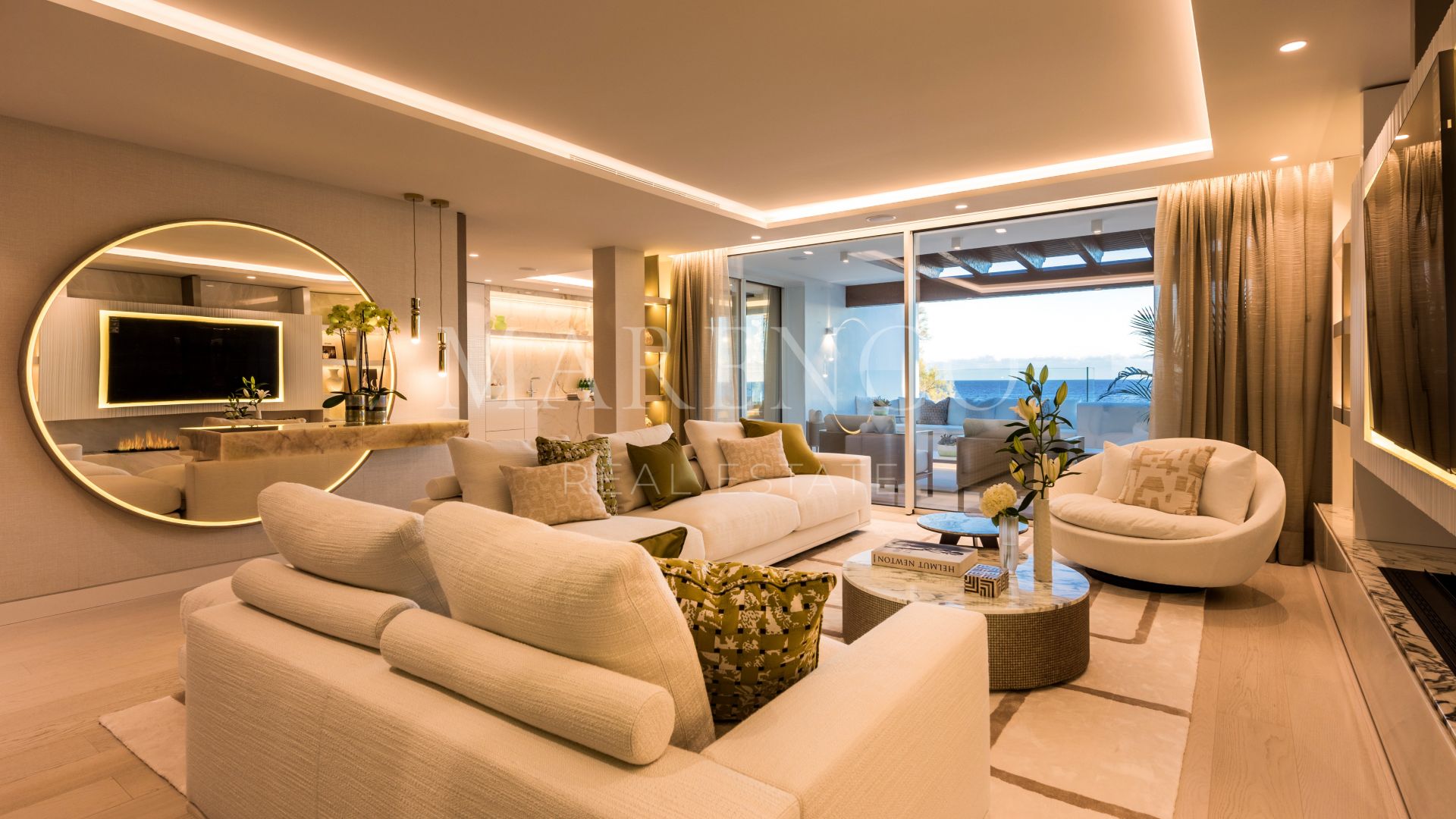 Impresionante ático dúplex recientemente renovado situado en Persian Gardens, dentro del prestigioso Puente Romano Beach Resort, Marbella. Esta propiedad cuenta con impresionantes vistas panorámicas al mar y una posición en primera línea de playa. Cada detalle refleja el lujo, desde los mejores materiales utilizados, hasta el sofisticado diseño interior realizado por el renombrado Aalto Design Marbella.