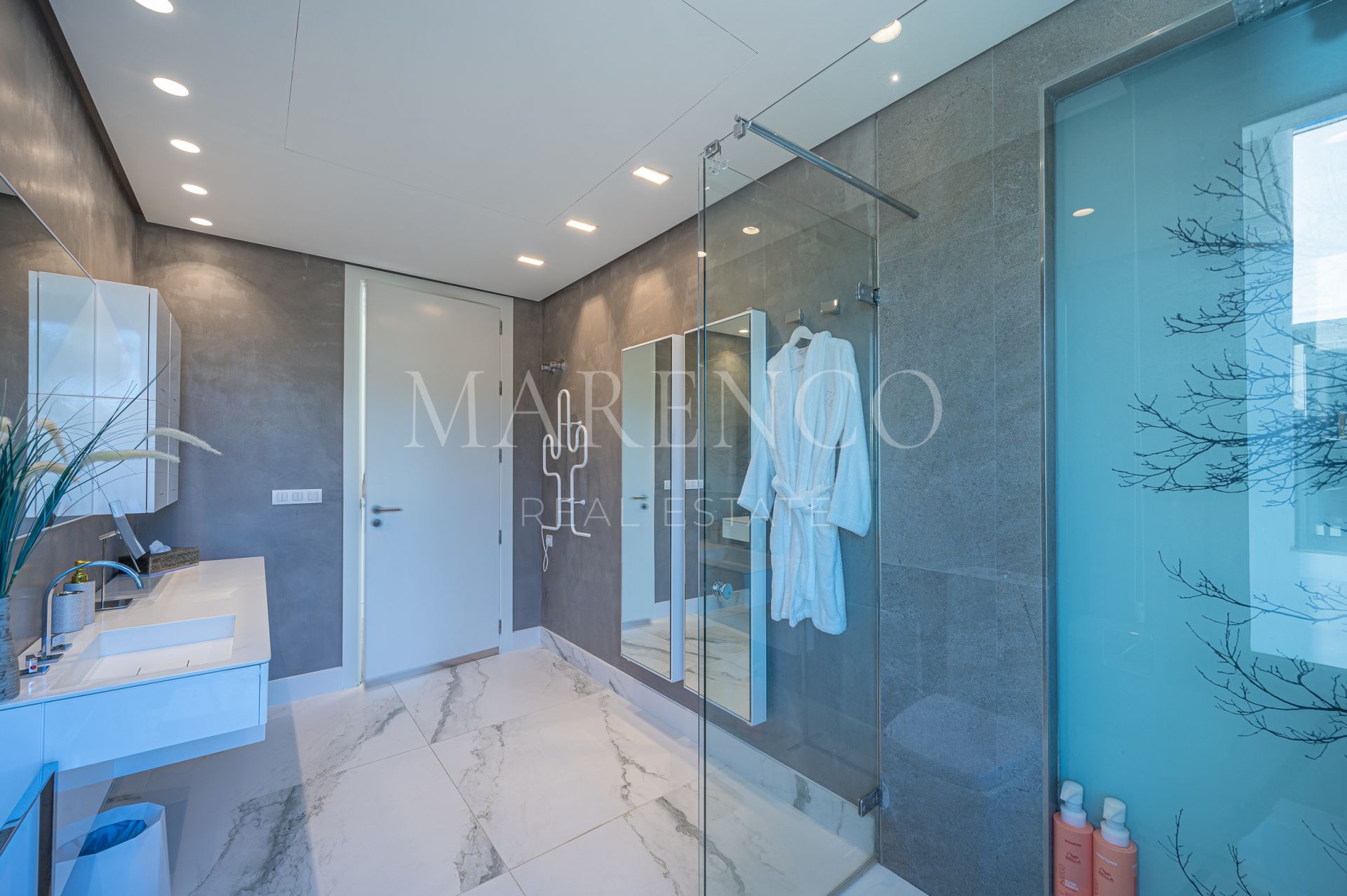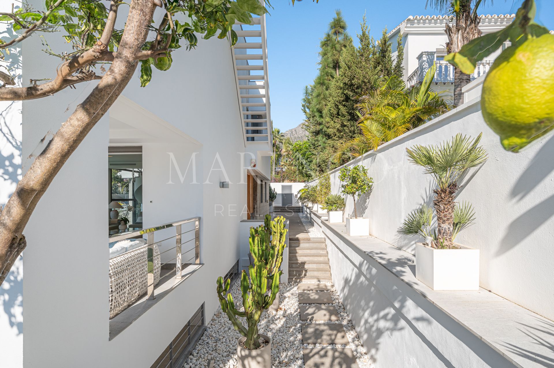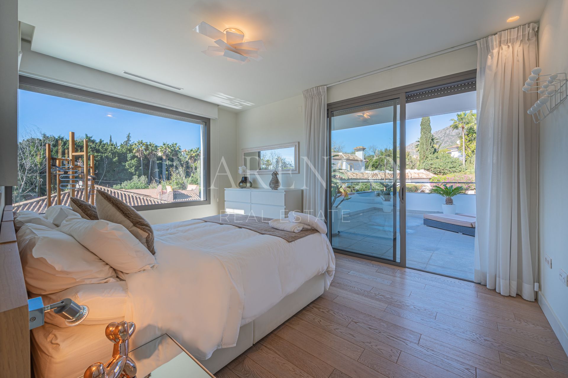 Esta moderna villa se encuentra en una de las zonas mas prestigiosas de Marbella, La Milla de Oro. Situada en Nagüeles, cerca de la montaña y rodeada de casas de alta gama. A solo 5 minutos en coche de todos los servicios y comodidades que ofrece la ciudad de Marbella y el famoso Puerto Banus. A poca distancia del Marbella Club Hotel de cinco estrellas, Puente Romano y Nobu Hoteles.