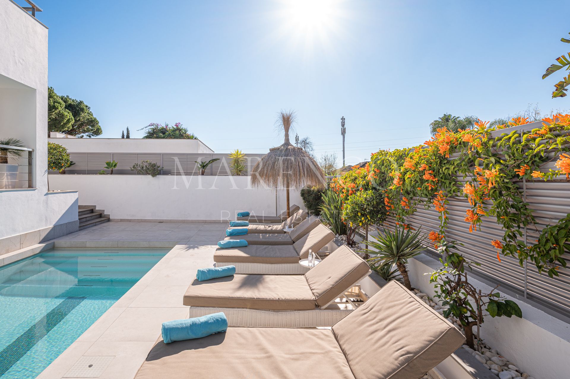 Distribuida en tres niveles, la villa consta de 4 espaciosos dormitorios y 4 baños, un luminoso salón con acceso directo a la terraza cubierta y piscina privada. Además, una cocina totalmente equipada con electrodomésticos de calidad, un comedor y un aseo de invitados.
