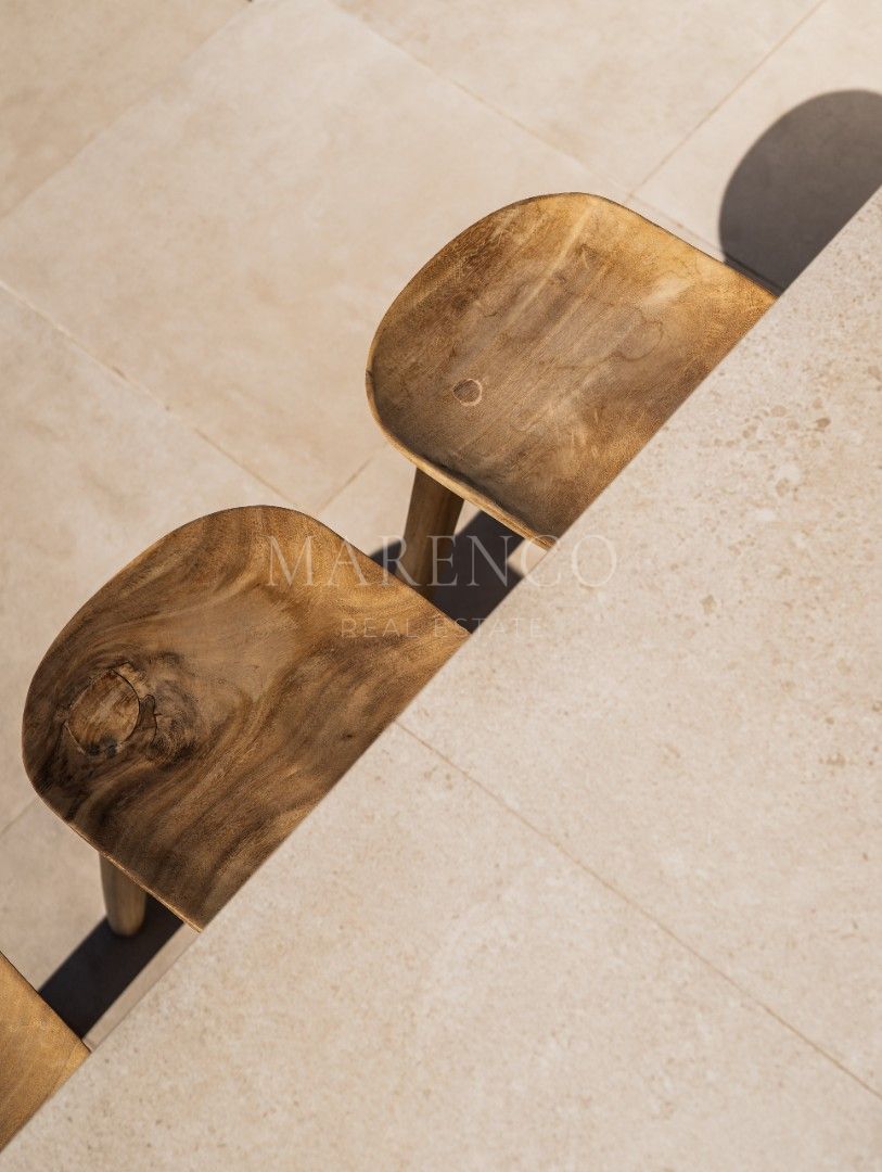 Desde el momento en que pones un pie en esta villa, te sumergirás en su ambiente luminoso y espacioso. Las áreas de estar han sido decoradas con exquisito gusto y cuentan con muebles de alta gama y accesorios que realzan su belleza. La sala de estar de planta abierta y el comedor te llevan a un hermoso jardín con una piscina, creando un entorno perfecto para descansar y relajarse bajo el cálido sol.