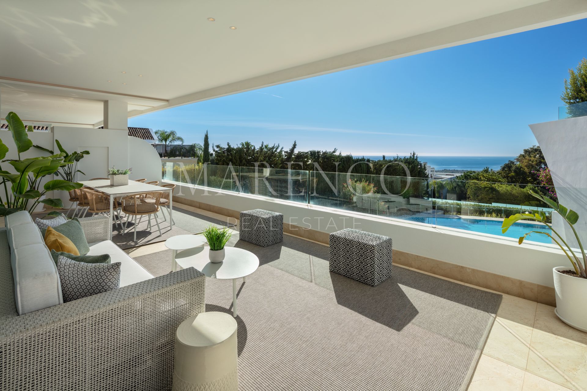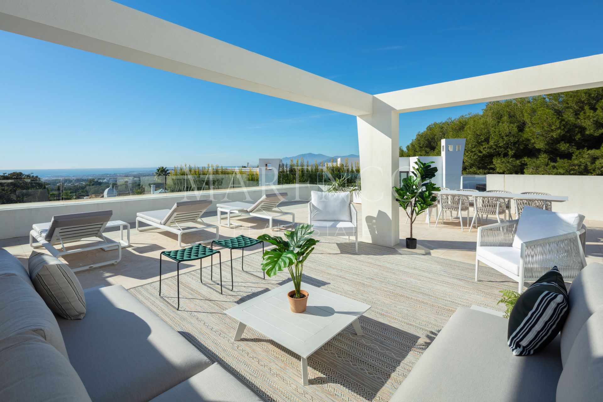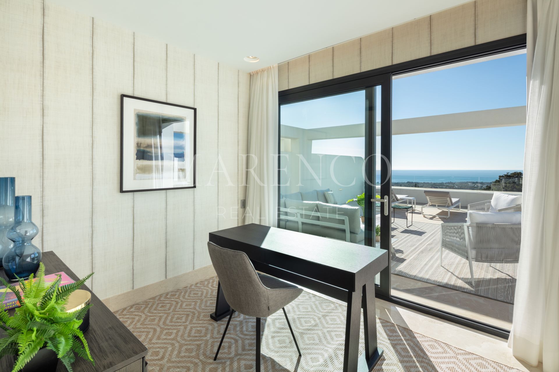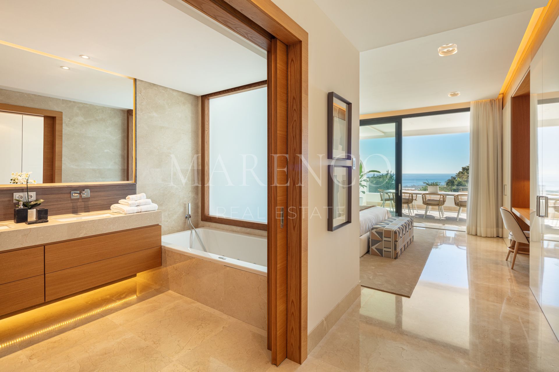 Este lujoso ático dúplex está ubicado en Sierra Blanca, dentro de una prestigiosa comunidad en Marbella. Se encuentra cerca del centro de la ciudad y todos los servicios y comodidades que ofrece la Milla de Oro de Marbella.