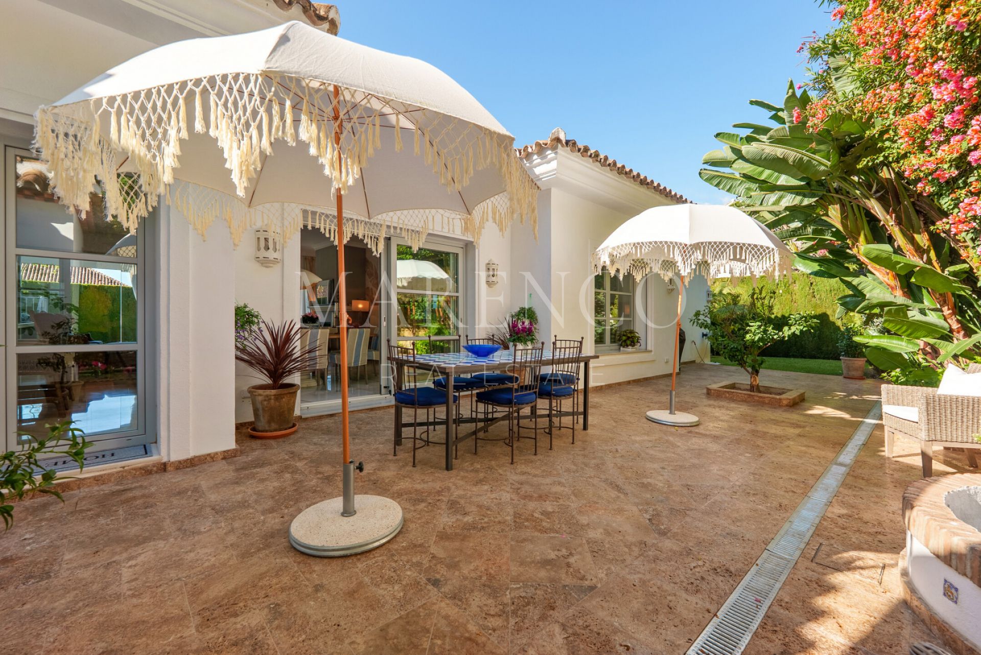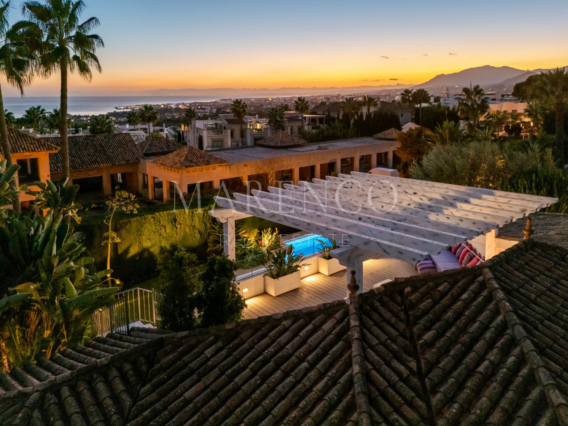 Ubicada en una de las zonas más exclusivas de Marbella, esta encantadora villa en Sierra Blanca, Marbella Golden Mile combina el carácter atemporal del estilo mediterráneo con privacidad, comodidad y una ubicación privilegiada. Rodeada de naturaleza y dentro de una comunidad cerrada y segura, la propiedad invita a imaginar una vida tranquila, luminosa y sofisticada, a pocos minutos del mar y de los servicios más emblemáticos de la Costa del Sol.