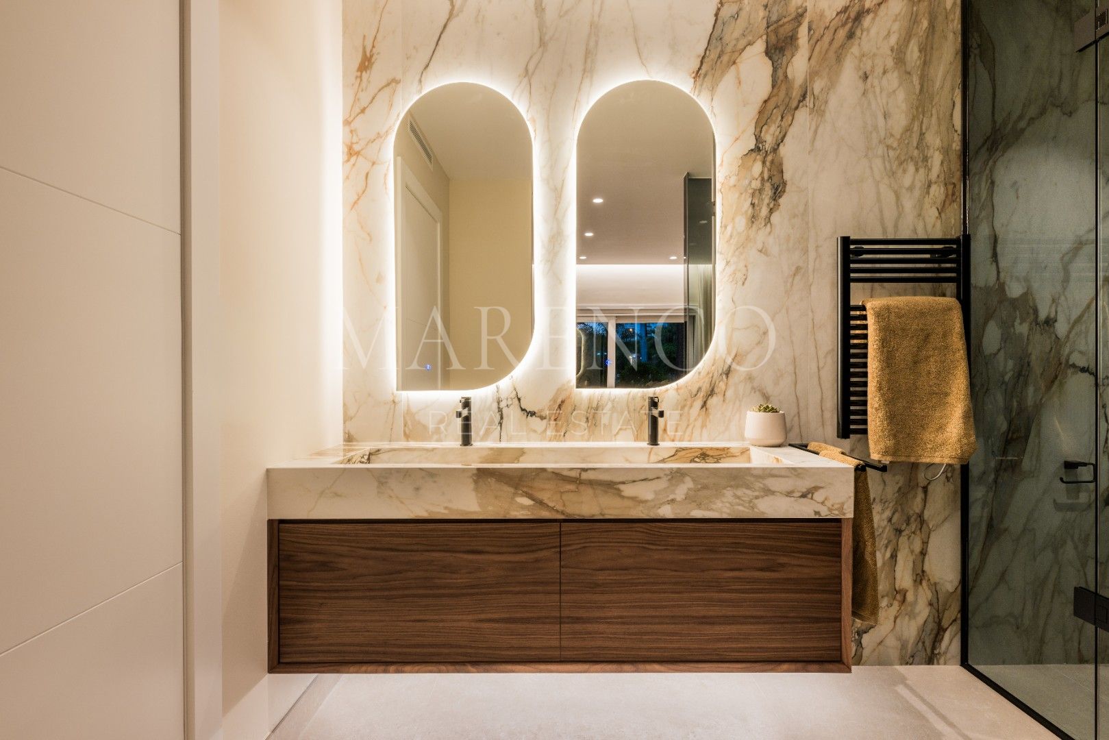Incluye suelos elegantes, una nueva cocina de diseño equipada con electrodomésticos Miele, un sistema de sonido Bang & Olufsen, armarios a medida y una chimenea eléctrica. Es ideal para quienes buscan el máximo lujo en una vida frente al mar.