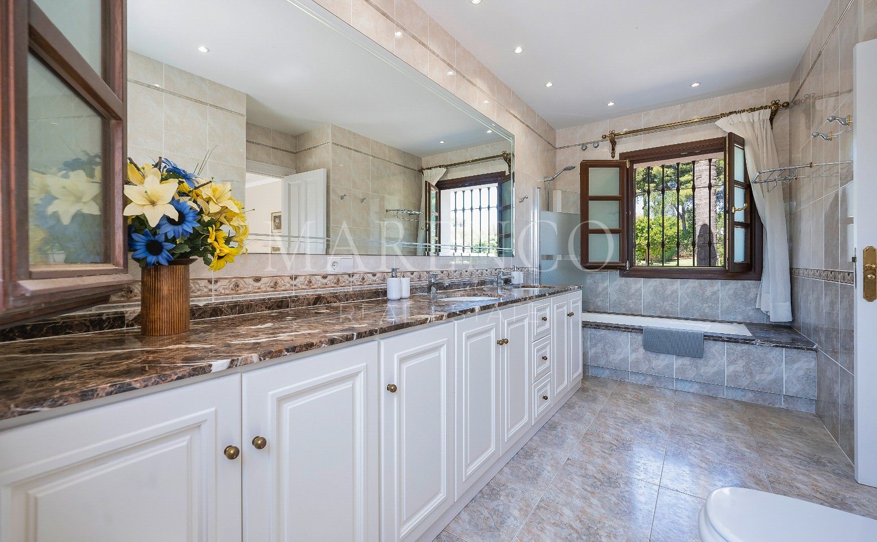Cette propriété, orientation sud-est, a les installations suivantes: terrasse privée, salle de séjour, services de proximité, transport proche, vue mer, vue campagne, vue montagne, cheminée, plancher en marbre, proche de la mer/plage, terrasse découverte, balcon, solarium, terrasse couverte, service 24h, excellent état, barbecue et vue sur le jardin.