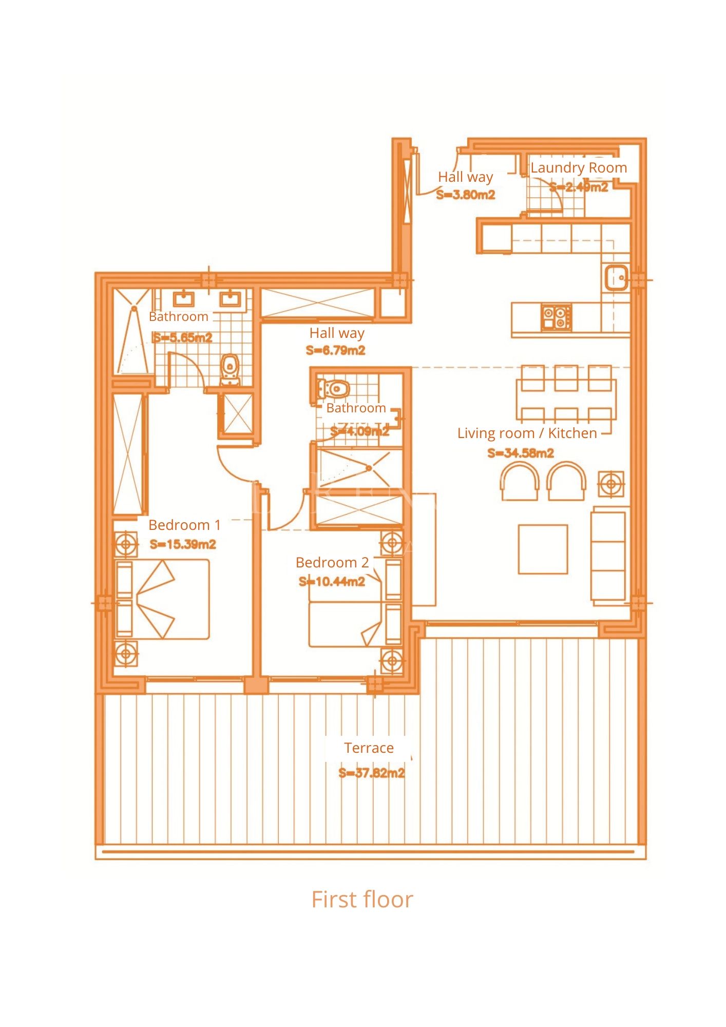 Cet appartement de 2 chambres et 2 salles de bain est conçu pour tirer le meilleur parti de la lumière naturelle et des espaces ouverts. Son design moderne comprend une cuisine ouverte entièrement équipée avec des appareils haut de gamme SIEMENS, idéale pour ceux qui recherchent confort et fonctionnalité. Il dispose également de la climatisation, d’un système d’alarme et d’un détecteur de fumée pour plus de sécurité.