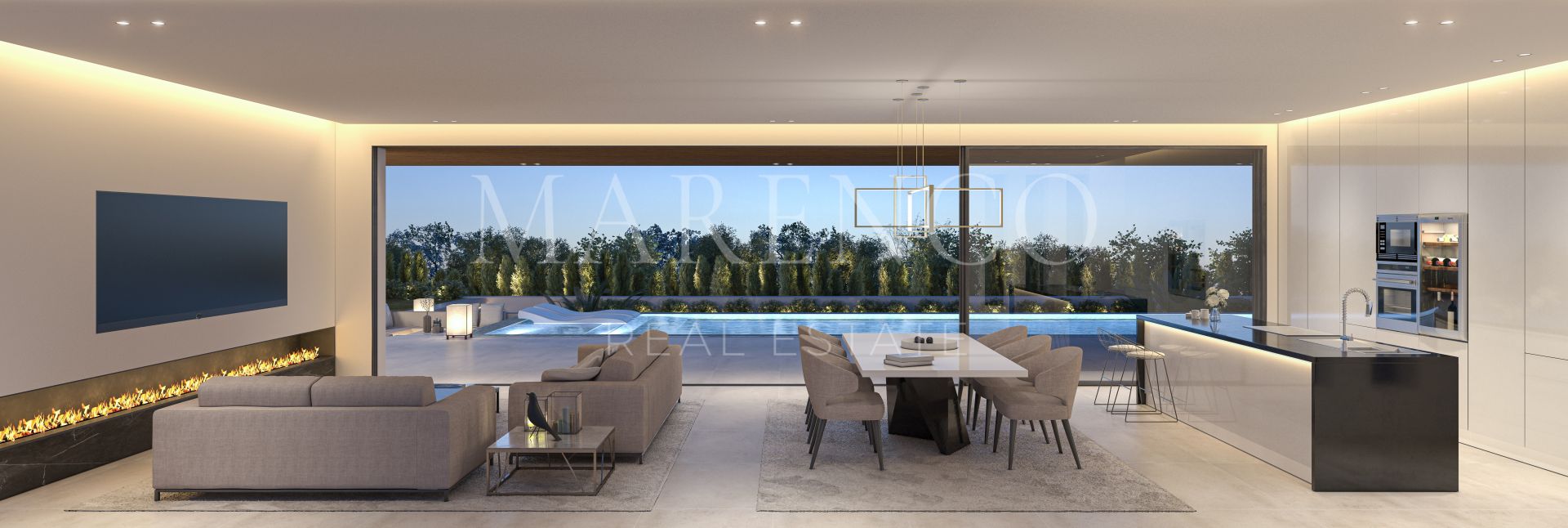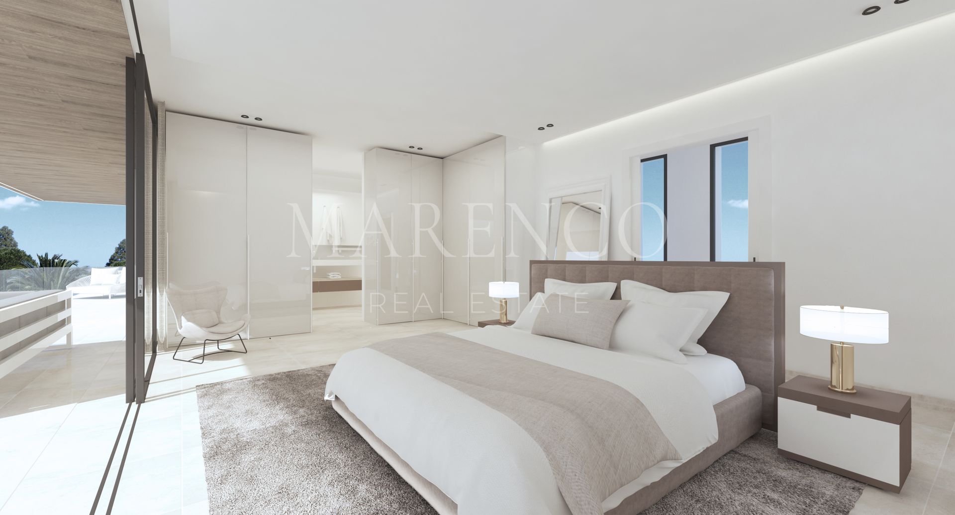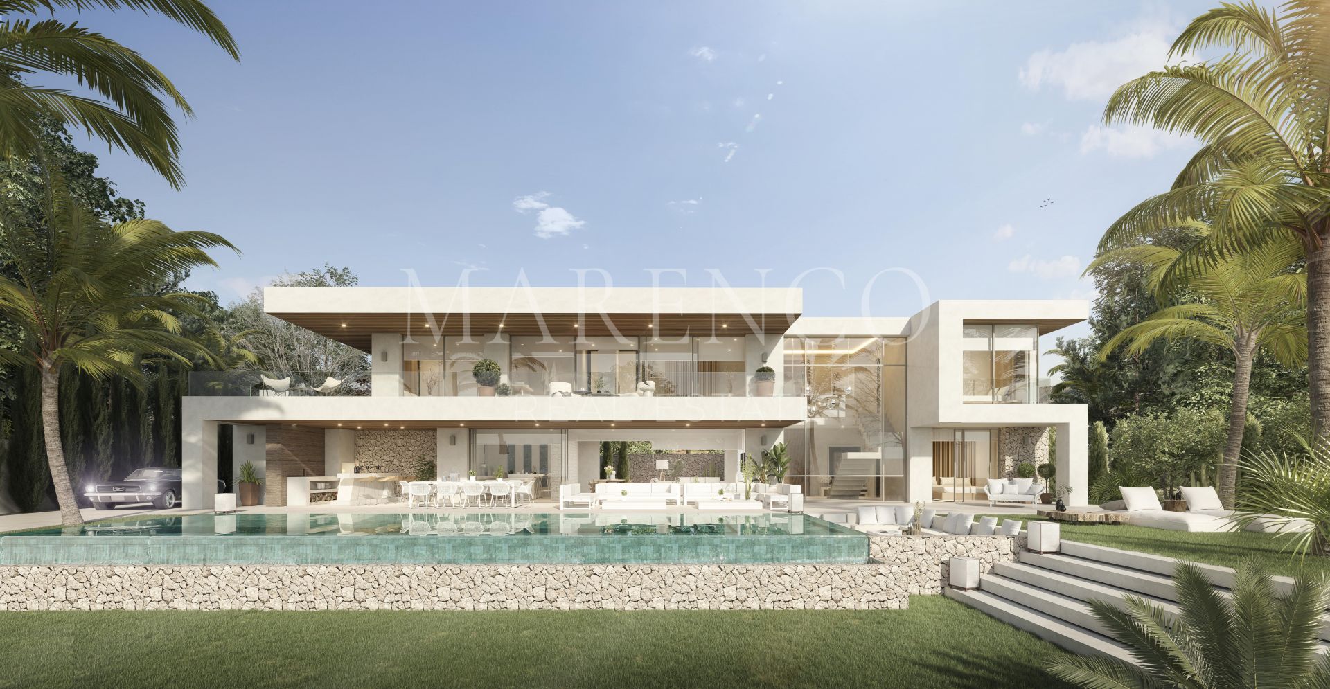 Villa à vendre à Guadalmina Baja, San Pedro de Alcantara avec 5 Chambres, 5 Salles de bain, 5 salles de bain en-suite, 2 toilets, construit 2024 et a piscine (privé), garage (abri voiture) et garden (privé). Dimensions: 460m² construit et 1016m² Parcelle.