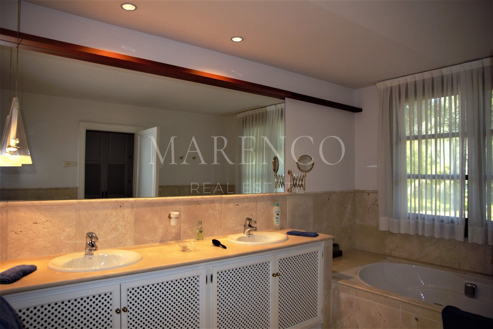 En entrant dans la villa, vous serez accueilli par un hall d’entrée avec des plafonds à double hauteur et un escalier menant à l’étage supérieur. De là, vous accédez au salon avec cheminée et à une salle à manger formelle séparée, avec un accès direct à la terrasse couverte offrant une vue sur le jardin, la piscine et la mer. Au rez-de-chaussée, vous trouverez également des toilettes invités, 2 chambres avec salles de bains attenantes, une cuisine entièrement équipée avec un îlot central et un coin petit-déjeuner, un cellier et une sortie vers la terrasse latérale avec barbecue intégré.