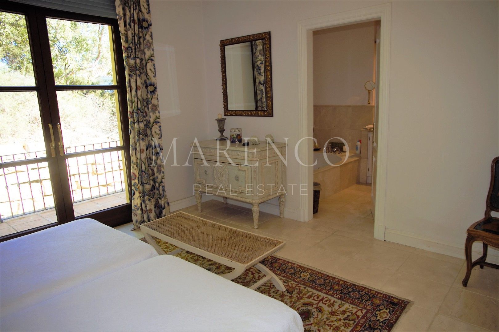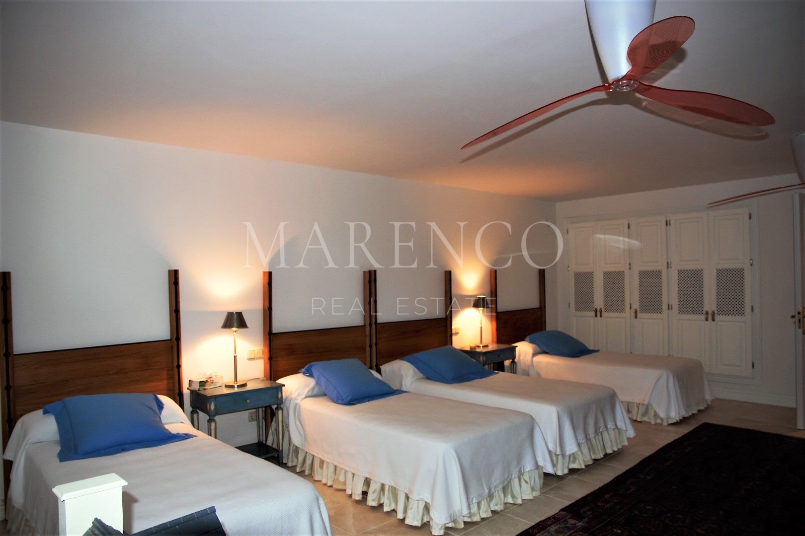 L’étage supérieur est entièrement occupé par la chambre principale, qui dispose d’une salle de bain en marbre attenante et d’un dressing. Depuis sa terrasse privée, vous pourrez profiter d’une vue enchanteresse sur la mer.