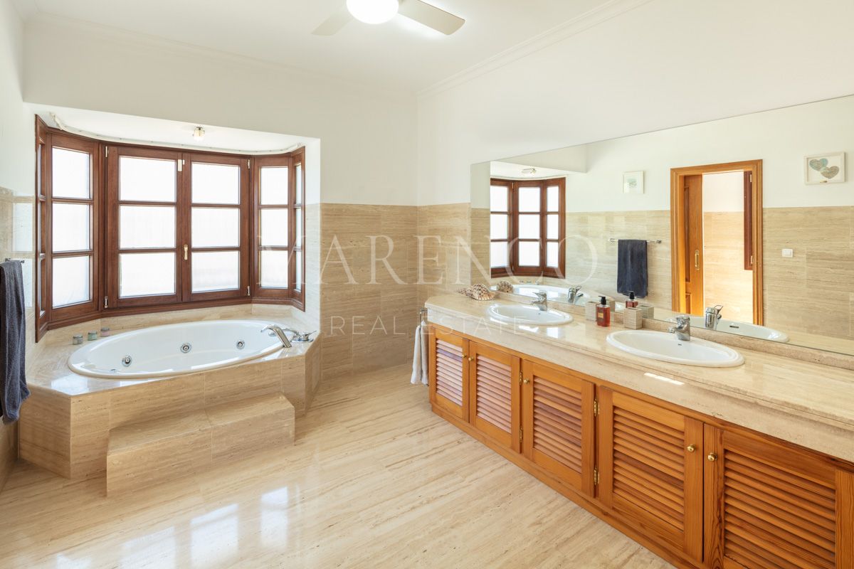 Cette propriété, orientation sud, a les installations suivantes: terrasse privée, À proximité des commerces, climatisation, près de la ville, chauffage par le sol (partiel), proche des écoles, vue mer, pièce de service, cheminée, plancher en marbre, jacuzzi, golf à proximité, terrasse découverte, cave, entrepôt, buanderie, terrasse couverte, excellent état, vue sur le jardin, vue sur la piscine, toilette d'invités et vue urbaine.