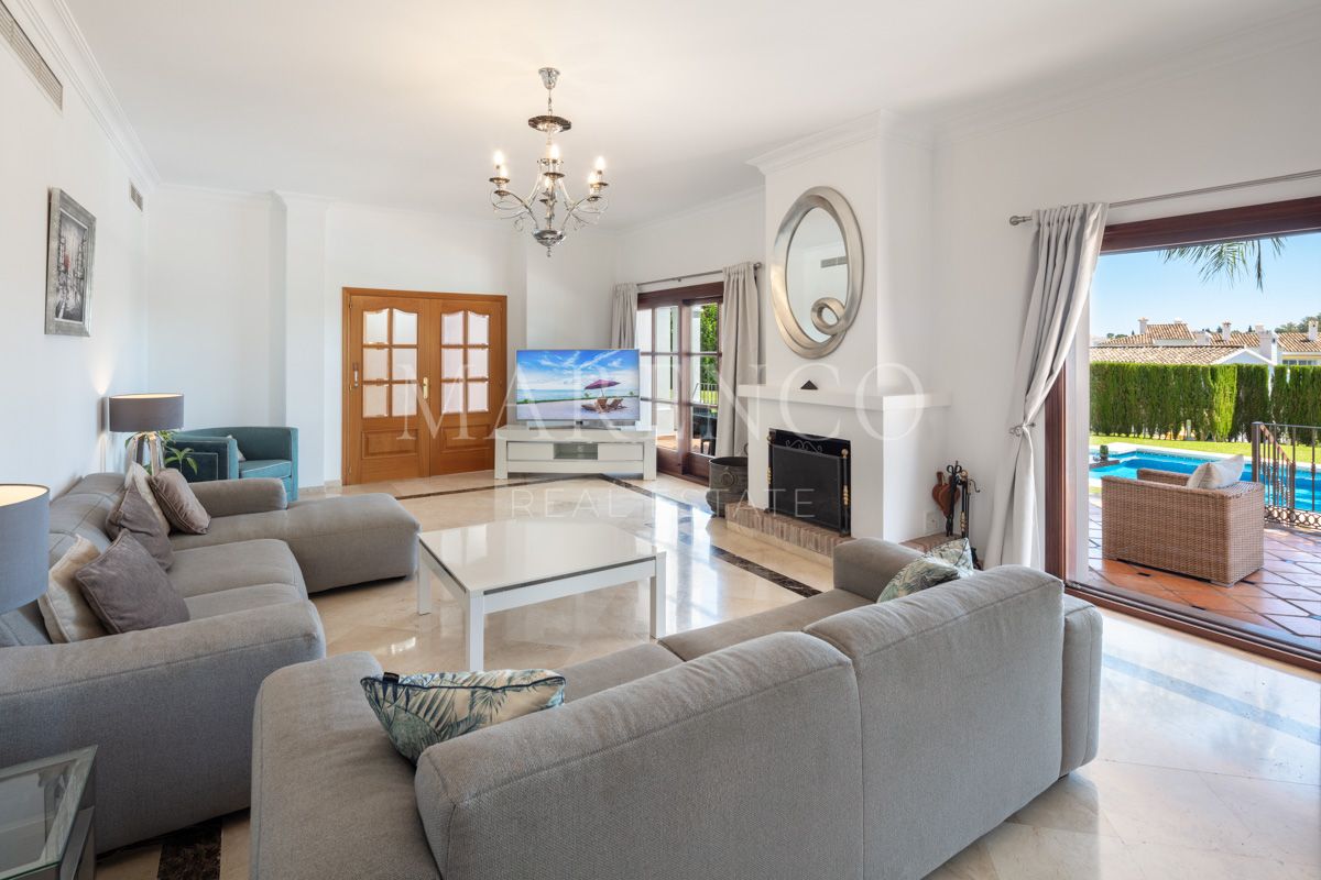 Villa à vendre à Paraiso Alto, Benahavis avec 4 Chambres, 4 Salles de bain, construit 2003 et a piscine (privé), garage (privé) et garden (privé). Dimensions: 524m² construit, 1762m² Parcelle et 100m² terrasse.
