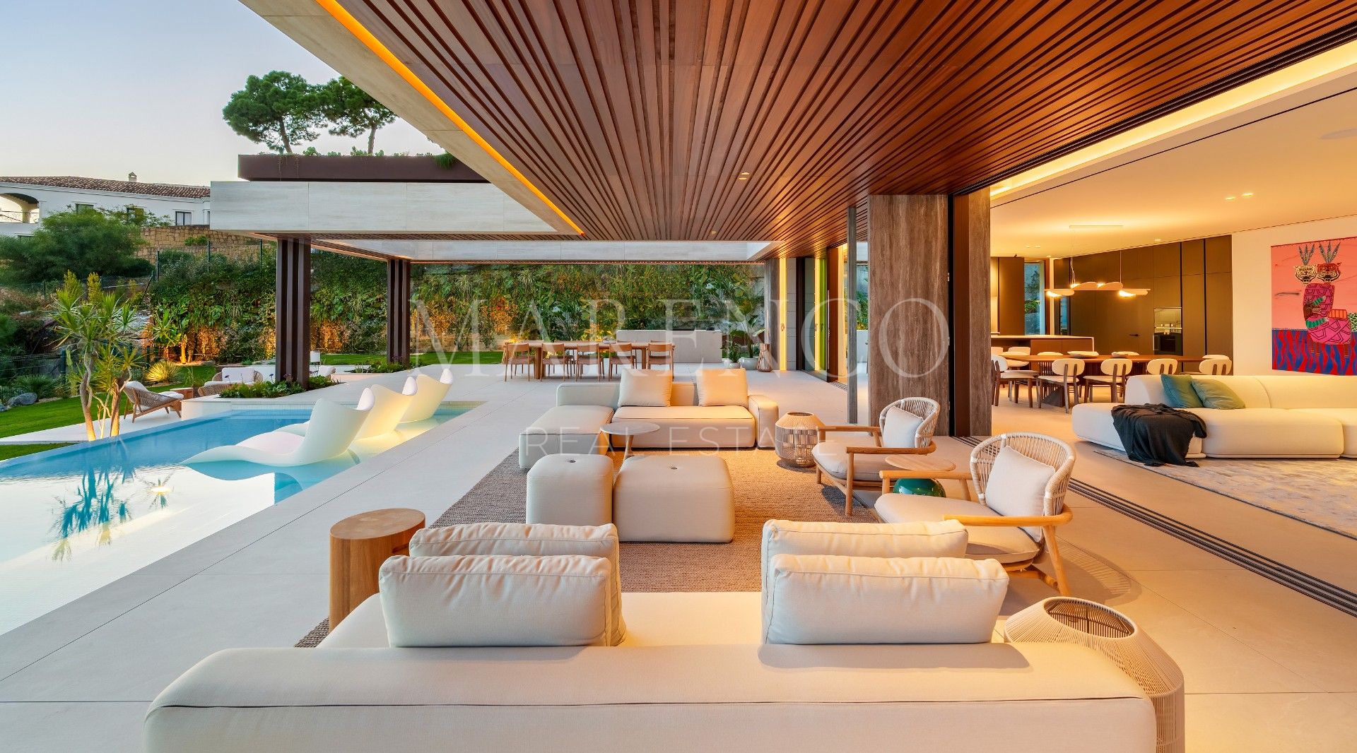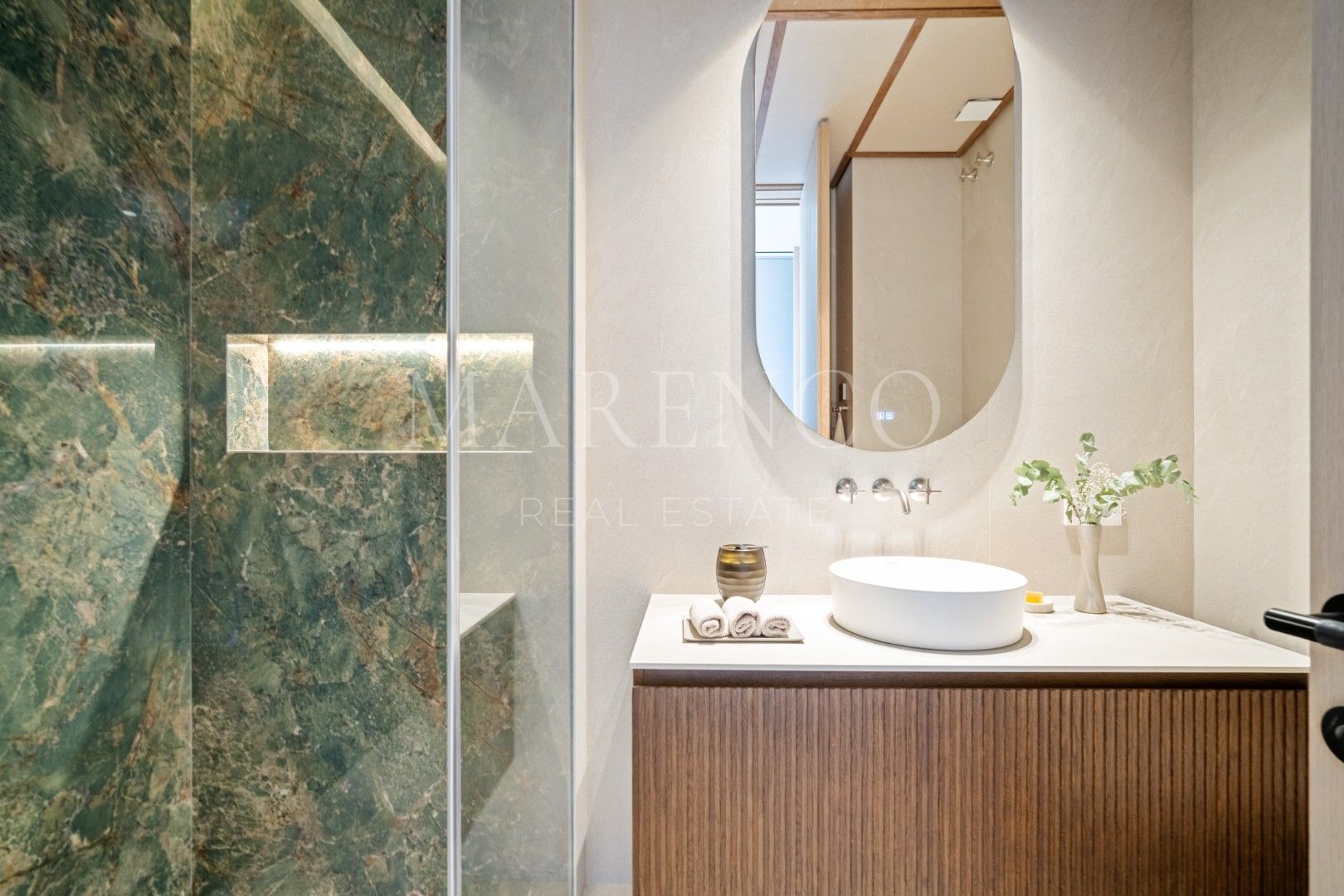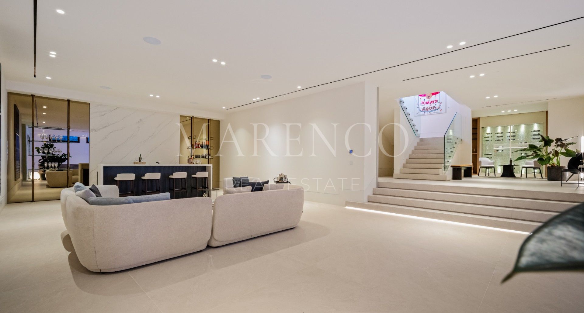 There are options with five or six bedrooms, carefully distributed over three levels, encompassing approximately 850 square meters of impressive spaces. The main level reveals an open-concept living area, which flows seamlessly onto expansive terraces and a swimming pool, inviting you to enjoy Marbella’s outdoor lifestyle. Ascending to the upper level, generous master suites and family areas are discovered. At the same time, the basement houses a wealth of excellently designed amenities, harmoniously combining aesthetics and practicality, fostering an extraordinary living experience.