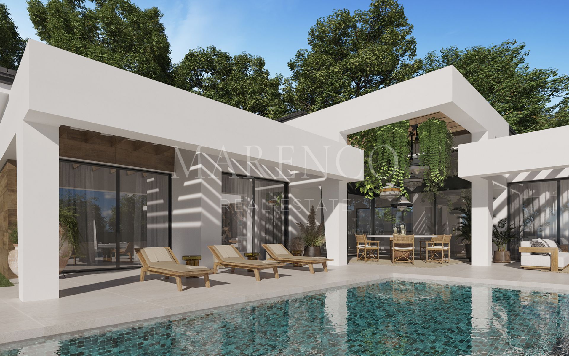 Imagining your daily life in this exclusive contemporary villa in Nueva Andalucía means picturing a lifestyle bathed in Mediterranean light. A single–level retreat designed to blend seamlessly with nature and the serenity of the Golf Valley. Here, waking up means opening the doors to a private garden, breathing in the scent of lavender from your own organic plot, and letting the sun guide each moment as you enjoy the outdoor spaces that make life on the Costa del Sol so exceptional.