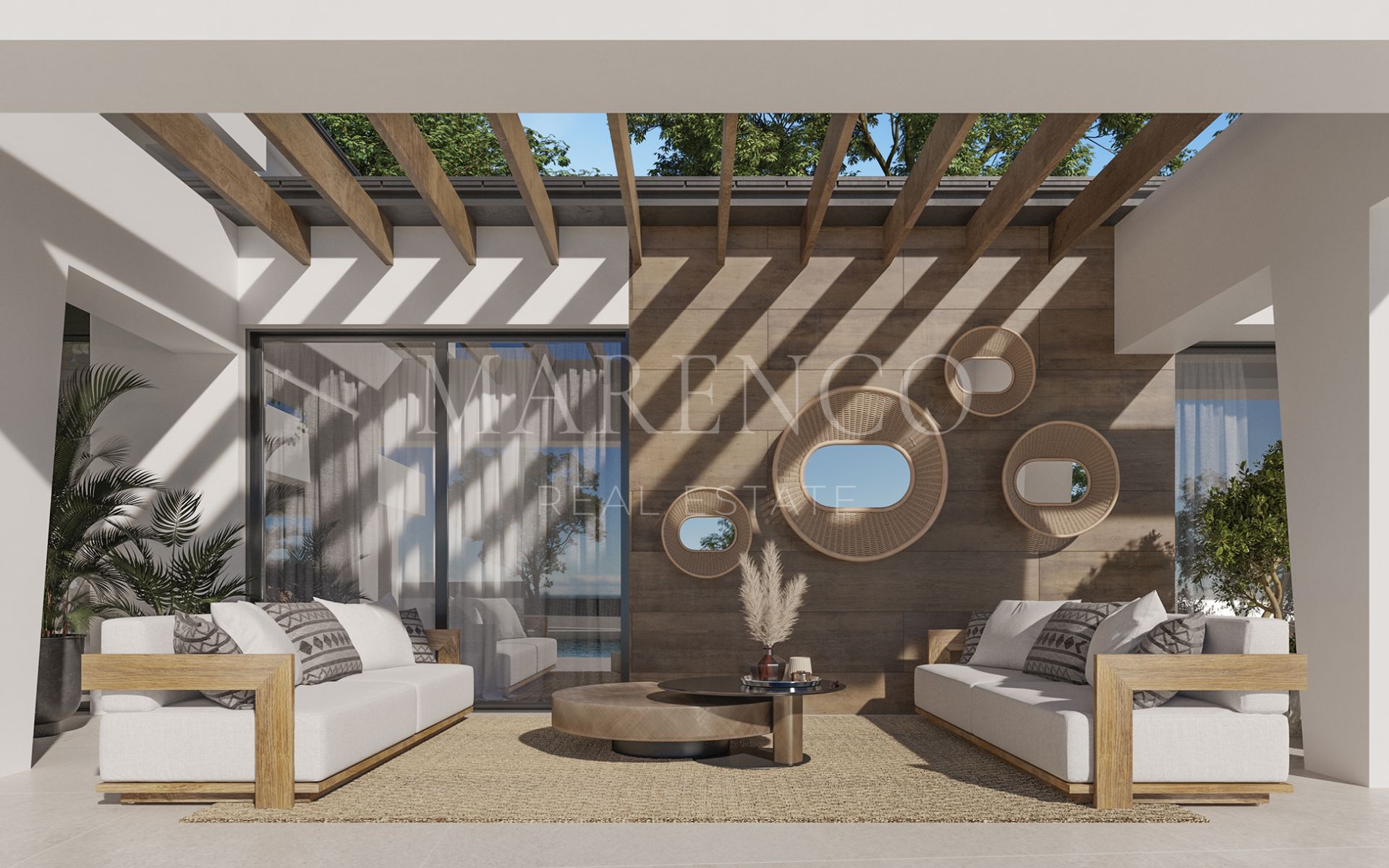 Living in this exclusive contemporary villa in Nueva Andalucía is an invitation to embrace a peaceful lifestyle, connected with nature yet close to golf courses, services and beaches. A unique opportunity for those seeking an exceptional residence in the heart of the Costa del Sol, where every detail is designed to be enjoyed without haste, without limits, and with the elegance that defines truly remarkable properties.