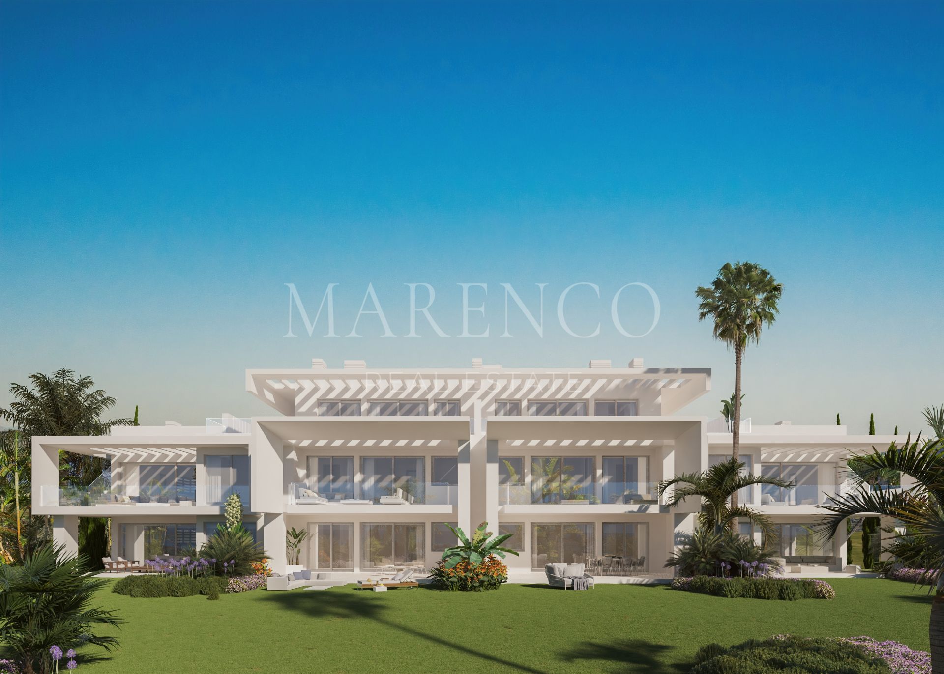 Alcazaba Lagoon ist eine traumhafte Wohnanlage, die sich über 40.000 m² exotischer Gärten erstreckt. Eine urbane Entwicklung, die sich durch die weißen Linien und sanften Konturen der nach Süden ausgerichteten Wohnungen auszeichnet.