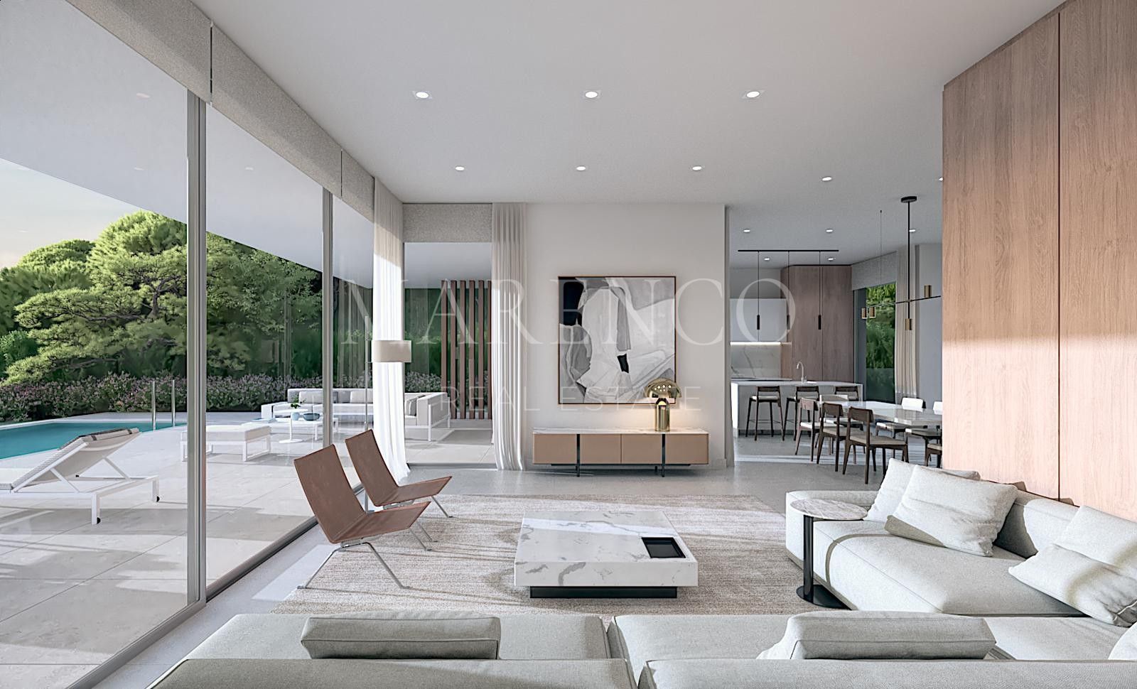 Die Liebe zum Detail und das durchdachte Design ziehen sich durch das gesamte Anwesen und schaffen ein Ambiente, das moderne Funktionalität mit zeitloser Eleganz vereint. Merkmale wie Grundstücke ab 803 m², bebaute Flächen bis zu 634 m² sowie vier bis fünf Schlafzimmer und Badezimmer unterstreichen die Vielseitigkeit und Individualität dieser Villen.