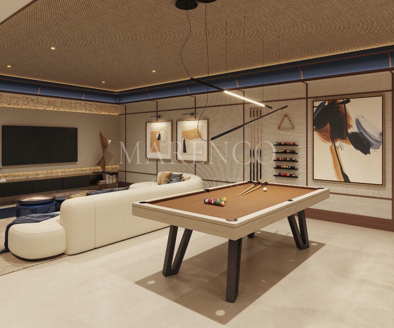 Drei ikonische Signature-Villen setzen einen besonderen Akzent und stehen als Symbole für Prestige, jede mit ihrem eigenen Charme. Diese drei Villen gehören zur Typologie C, entworfen von Pedro Peña. Neben individuellen Annehmlichkeiten wie Unterhaltungsräumen, Heimkinos und privaten Fitnessräumen haben alle Villen Zugang zu Gemeinschaftseinrichtungen wie einem luxuriösen Fitnessraum und einem hochmodernen Spa mit Innenpool, Hammam, Sauna und Eisbad.