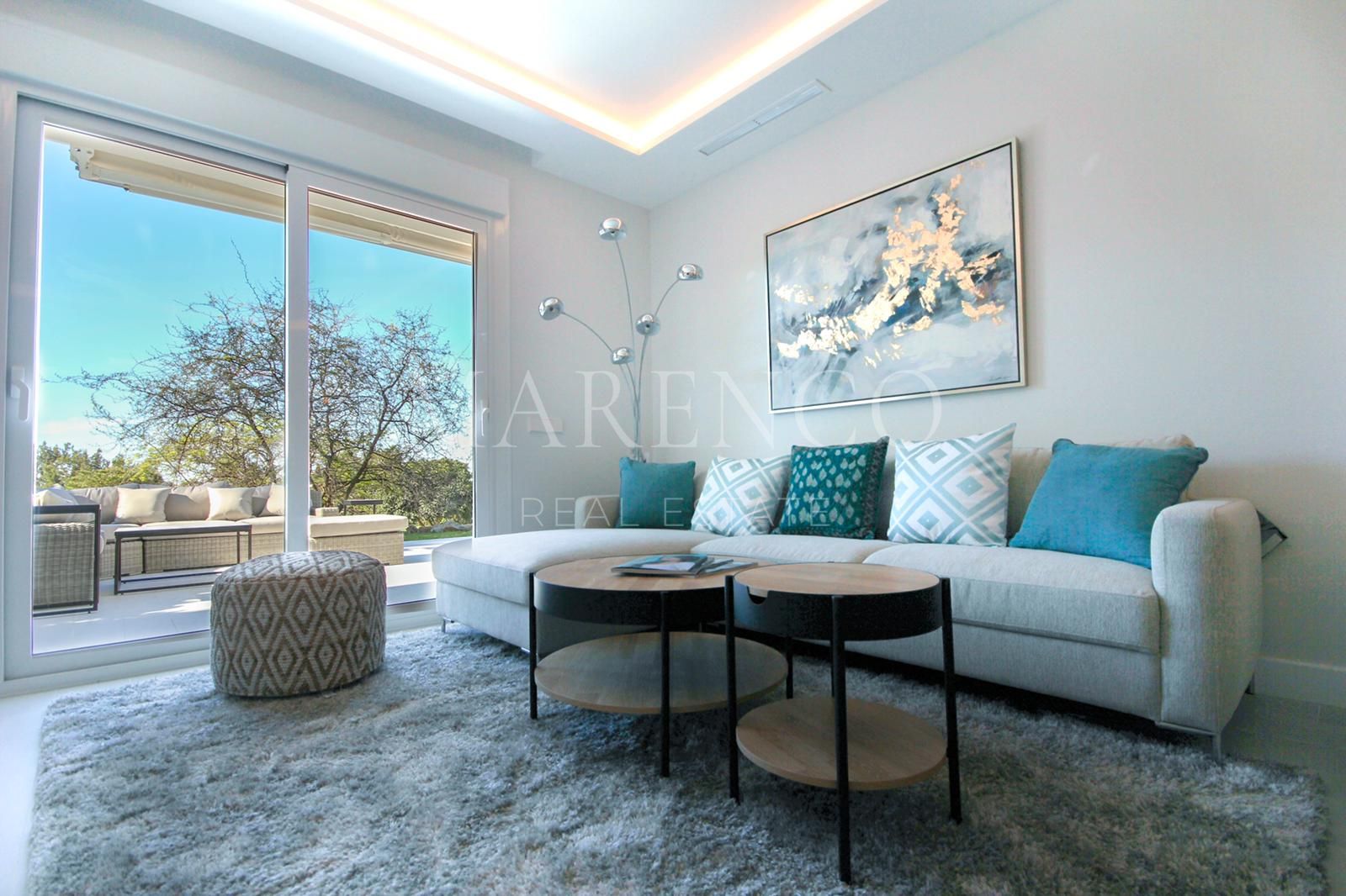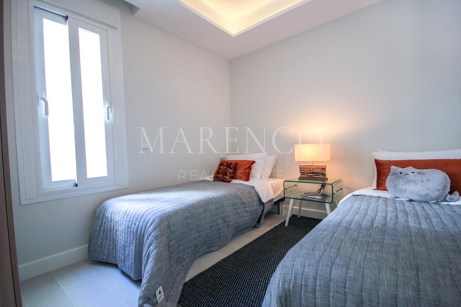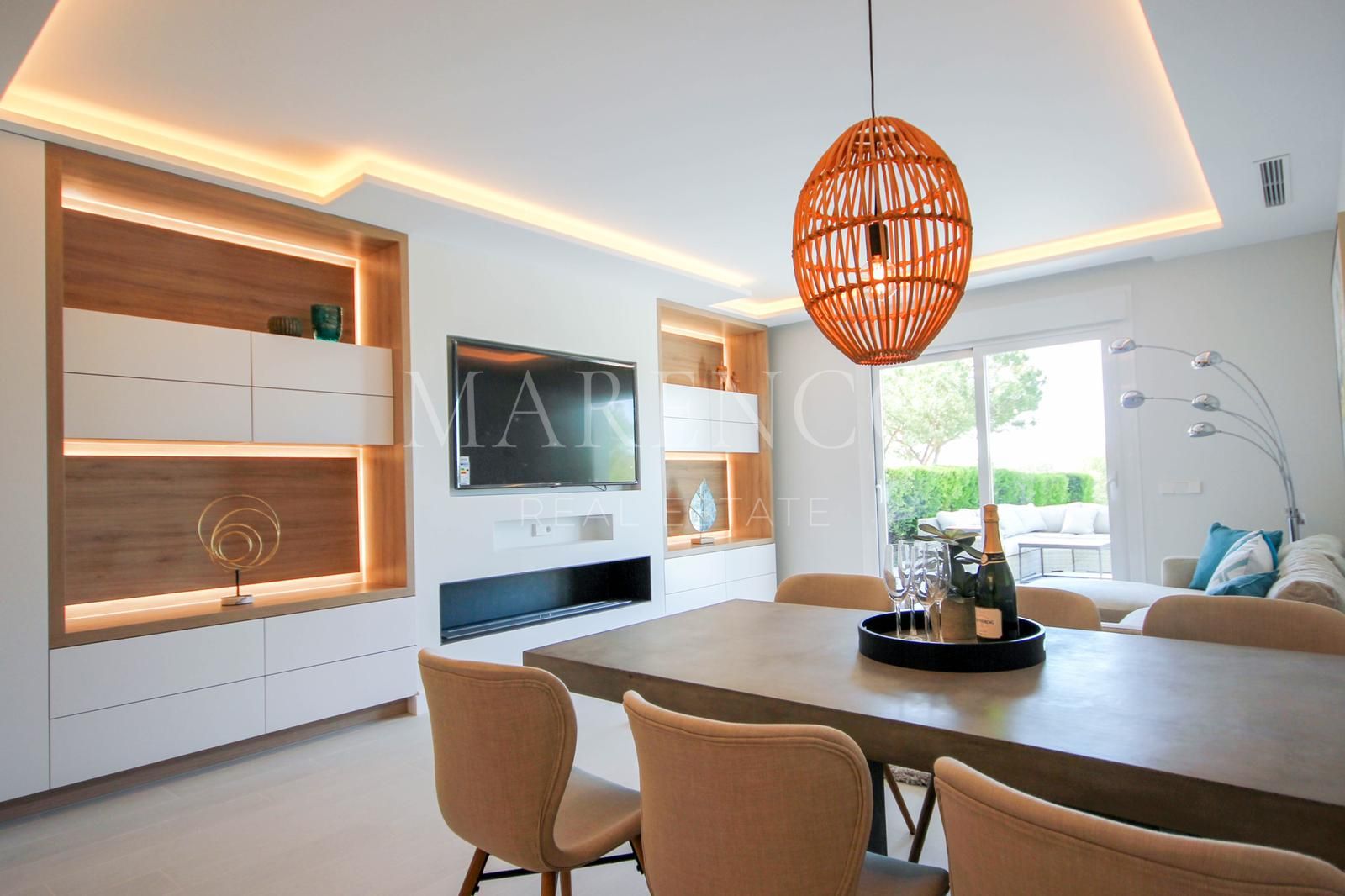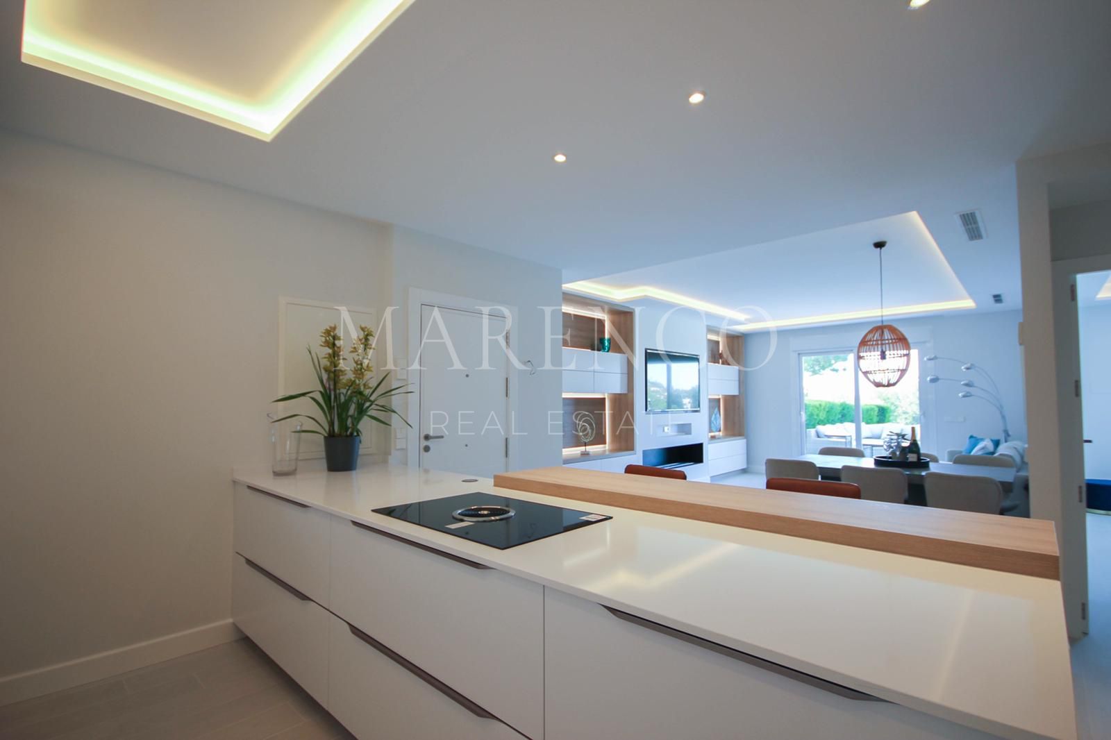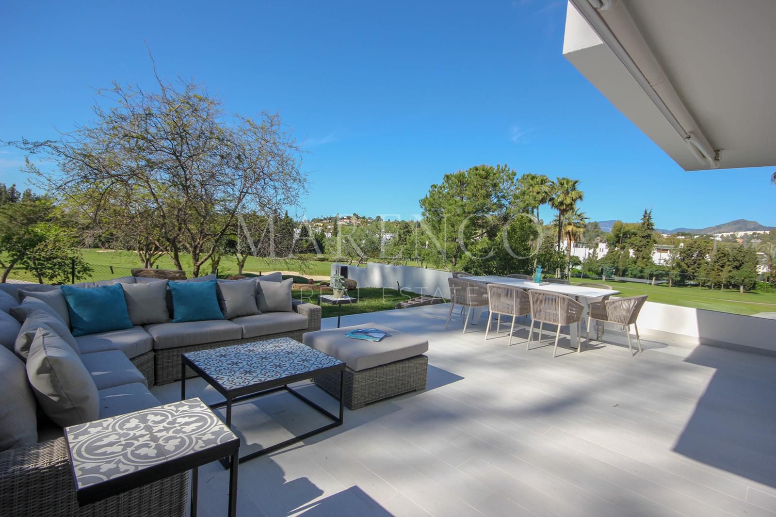 Erdgeschosswohnung zu verkaufen in Alcores del Golf, Nueva Andalucia mit 3 Schlafzimmer, 2 Badezimmer und hat Schwimmbad (gemeinschaftlich), garage (privat) und Garten (gemeinschaftlich). Maße: 216m² Gebaut, 149m² interior und 67m² Terrasse.