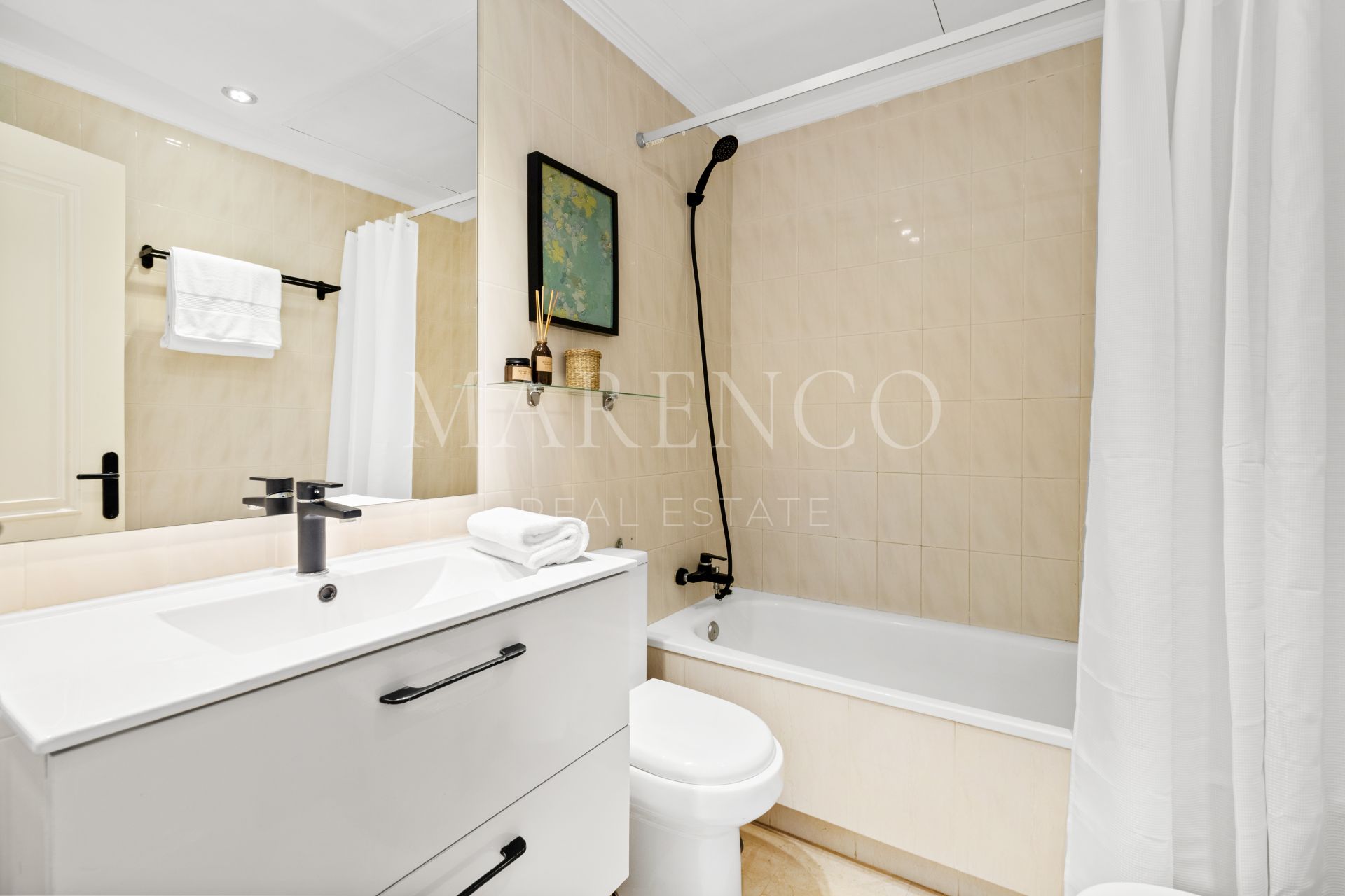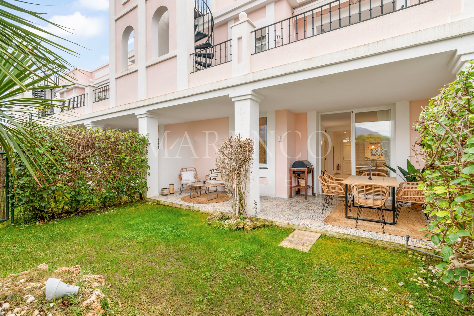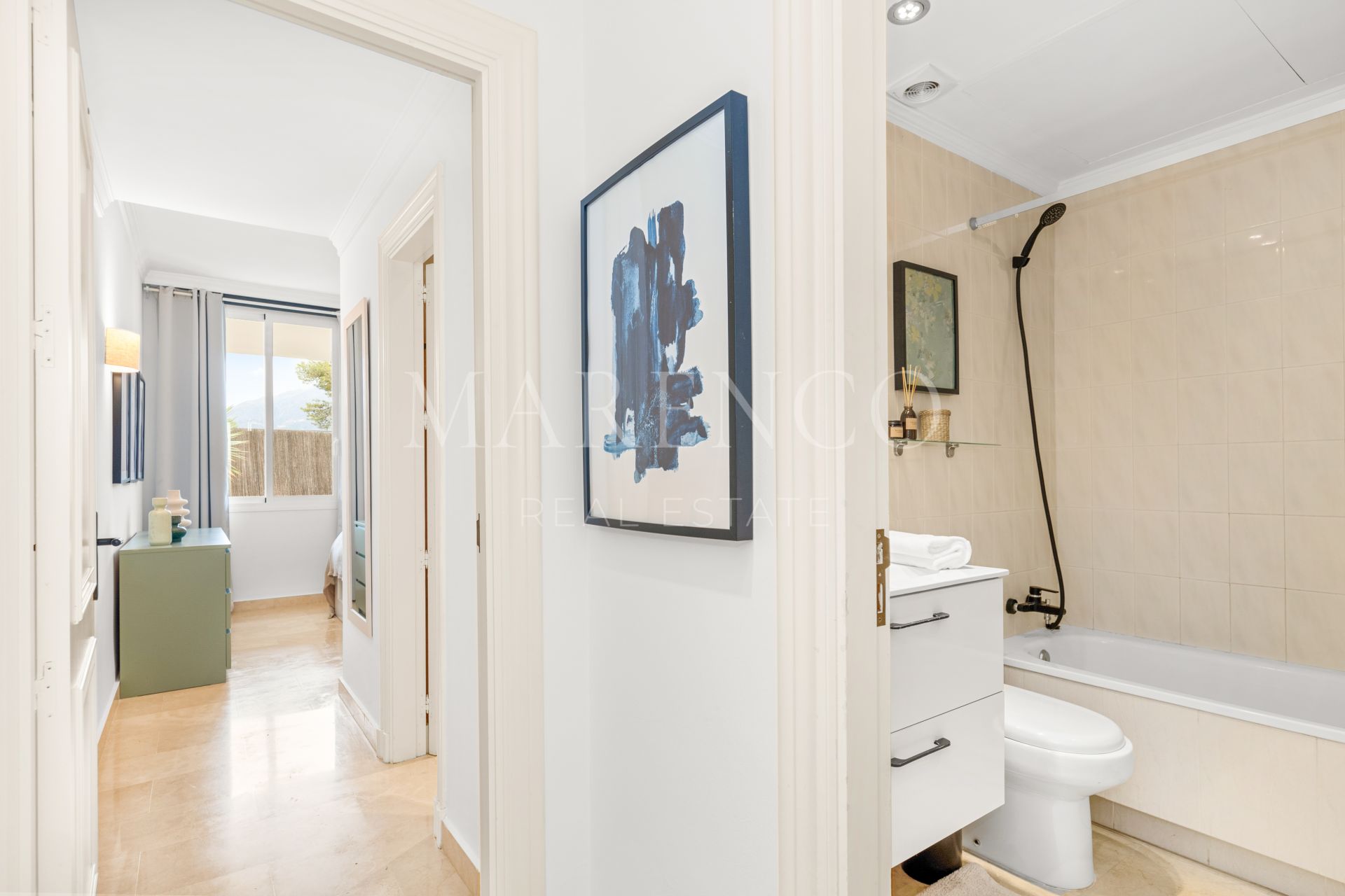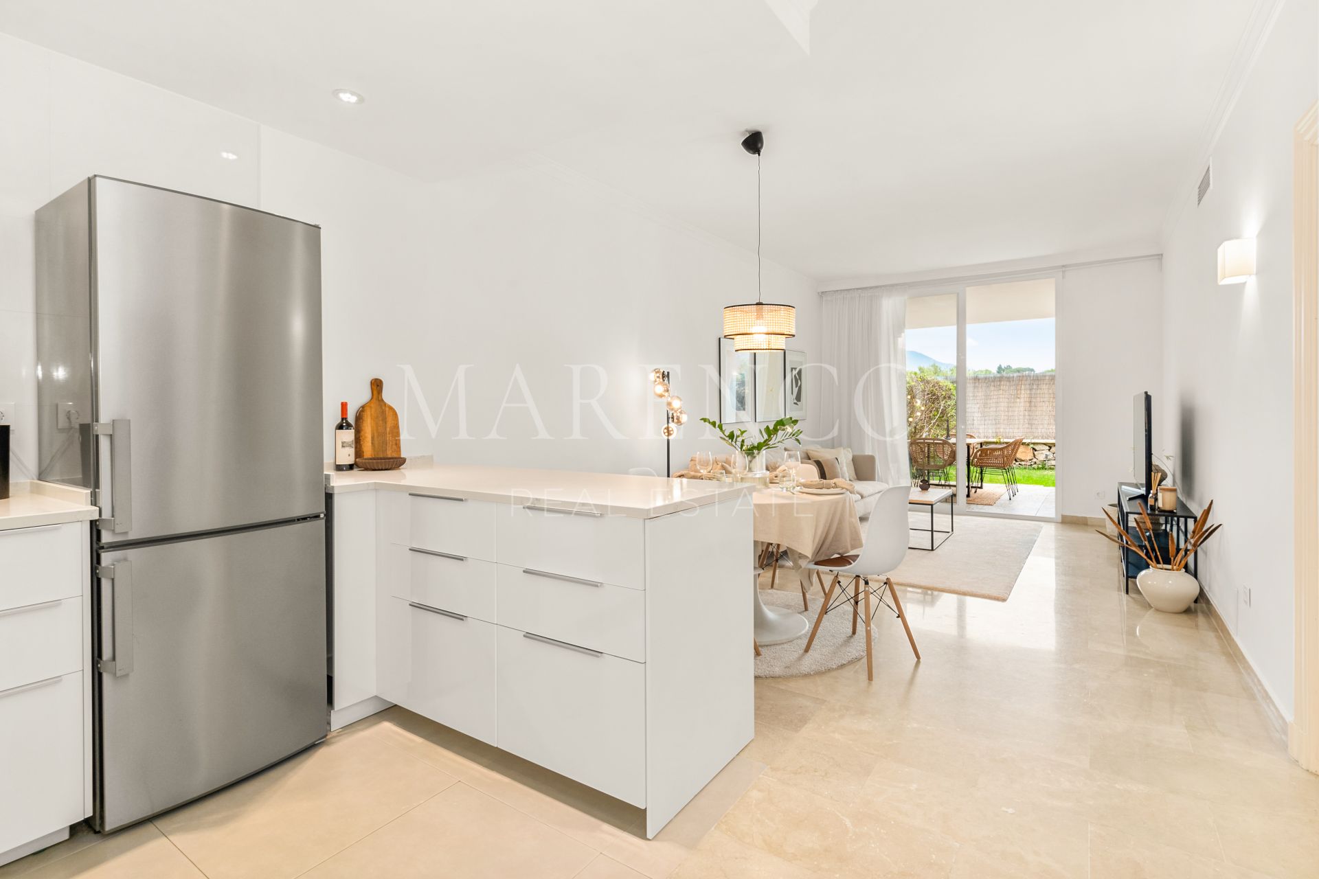 Wohnung zu verkaufen in Aloha, Nueva Andalucia mit 2 Schlafzimmer, 2 Badezimmer und hat Garten (privat). Maße: 82m² Gebaut und 14m² Terrasse.