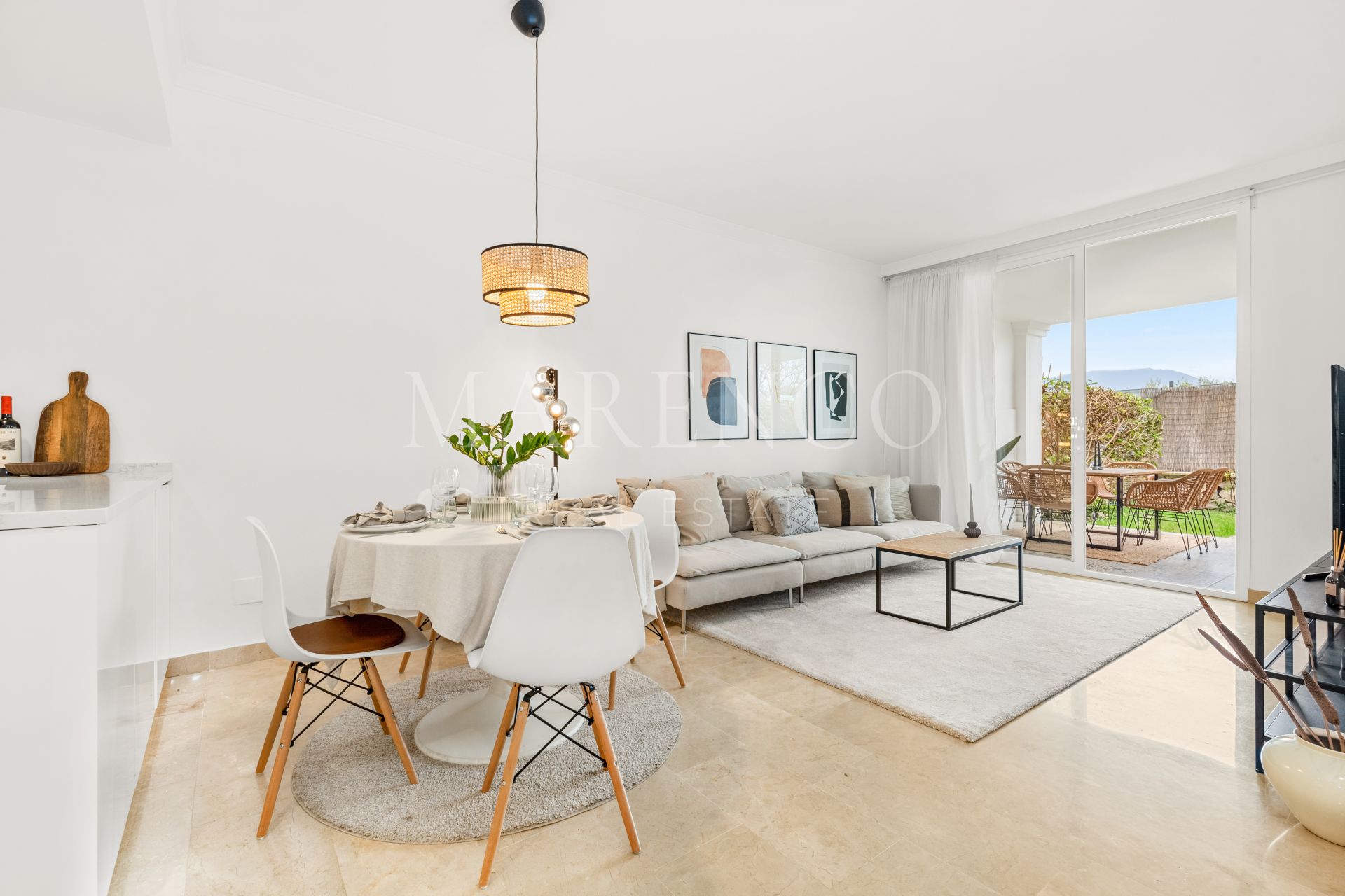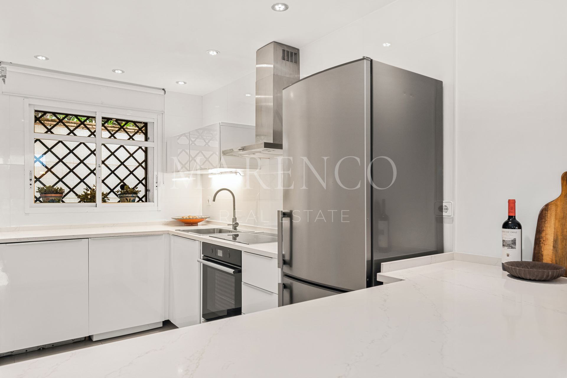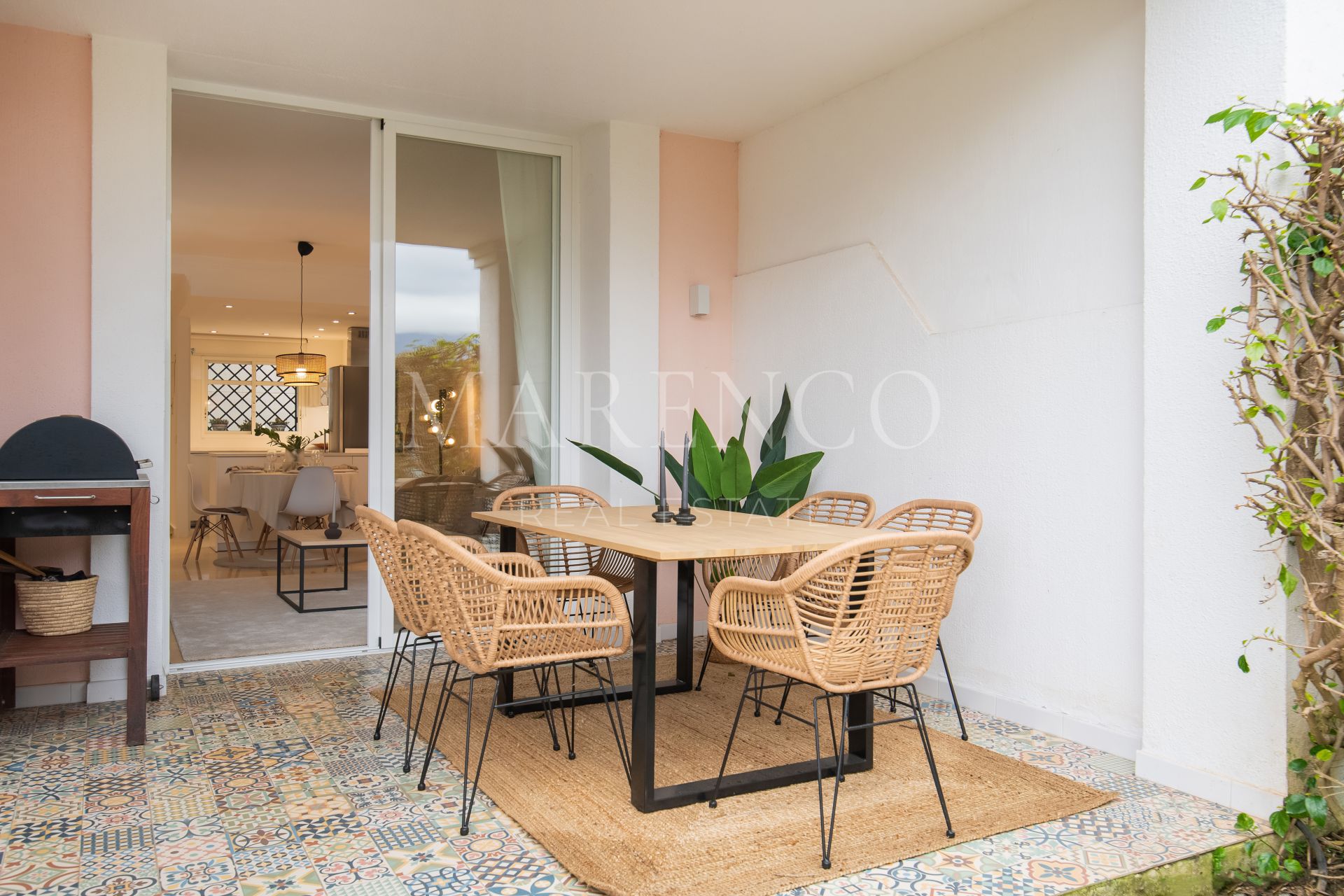 Wohnung zu verkaufen in Aloha, Nueva Andalucia mit 2 Schlafzimmer, 2 Badezimmer und hat Garten (privat). Maße: 82m² Gebaut und 14m² Terrasse.