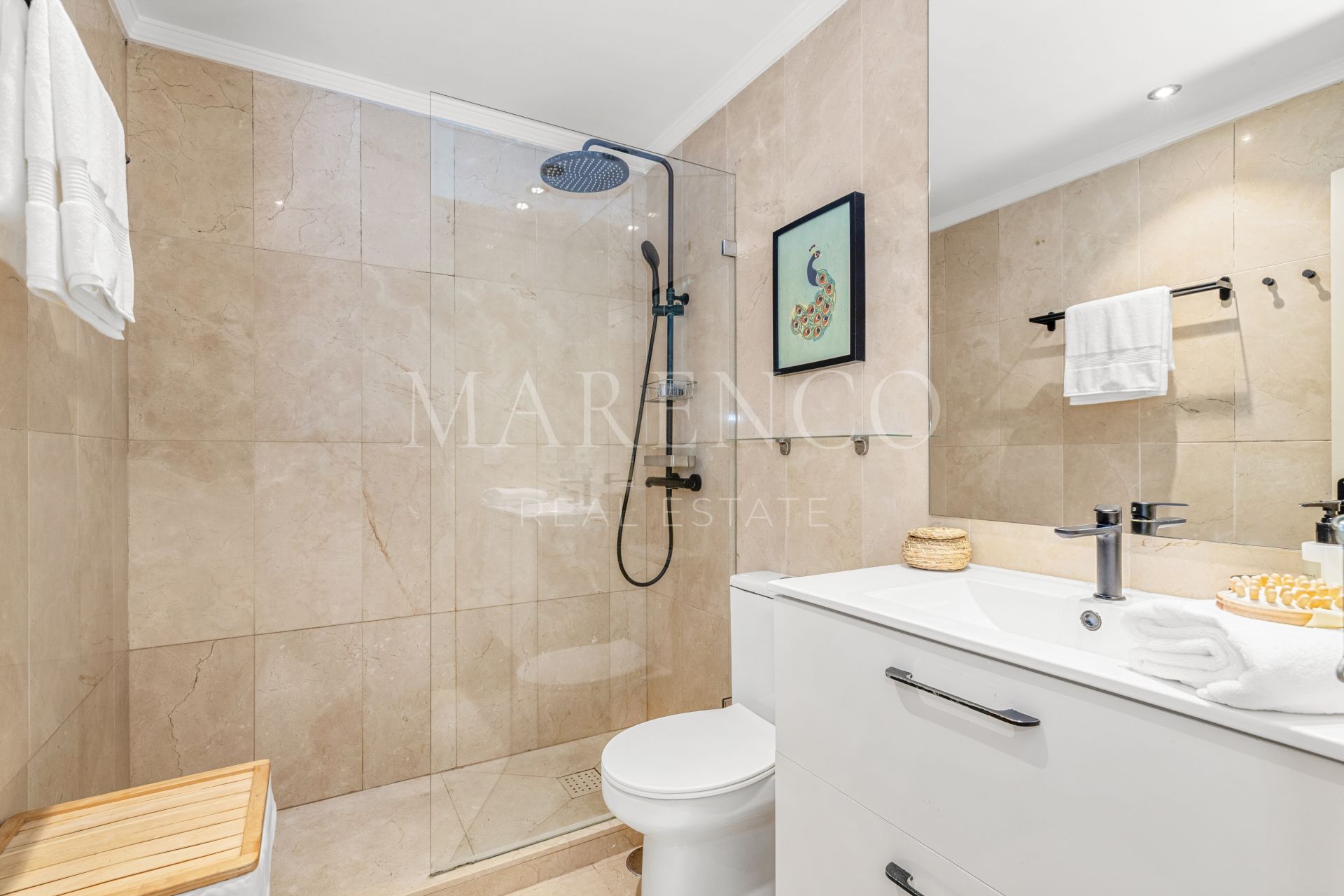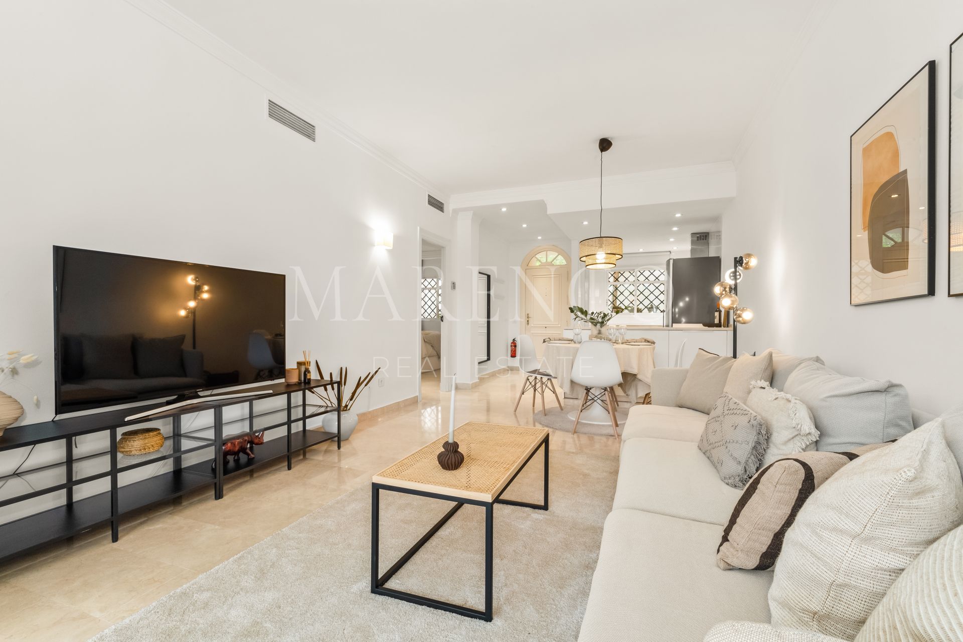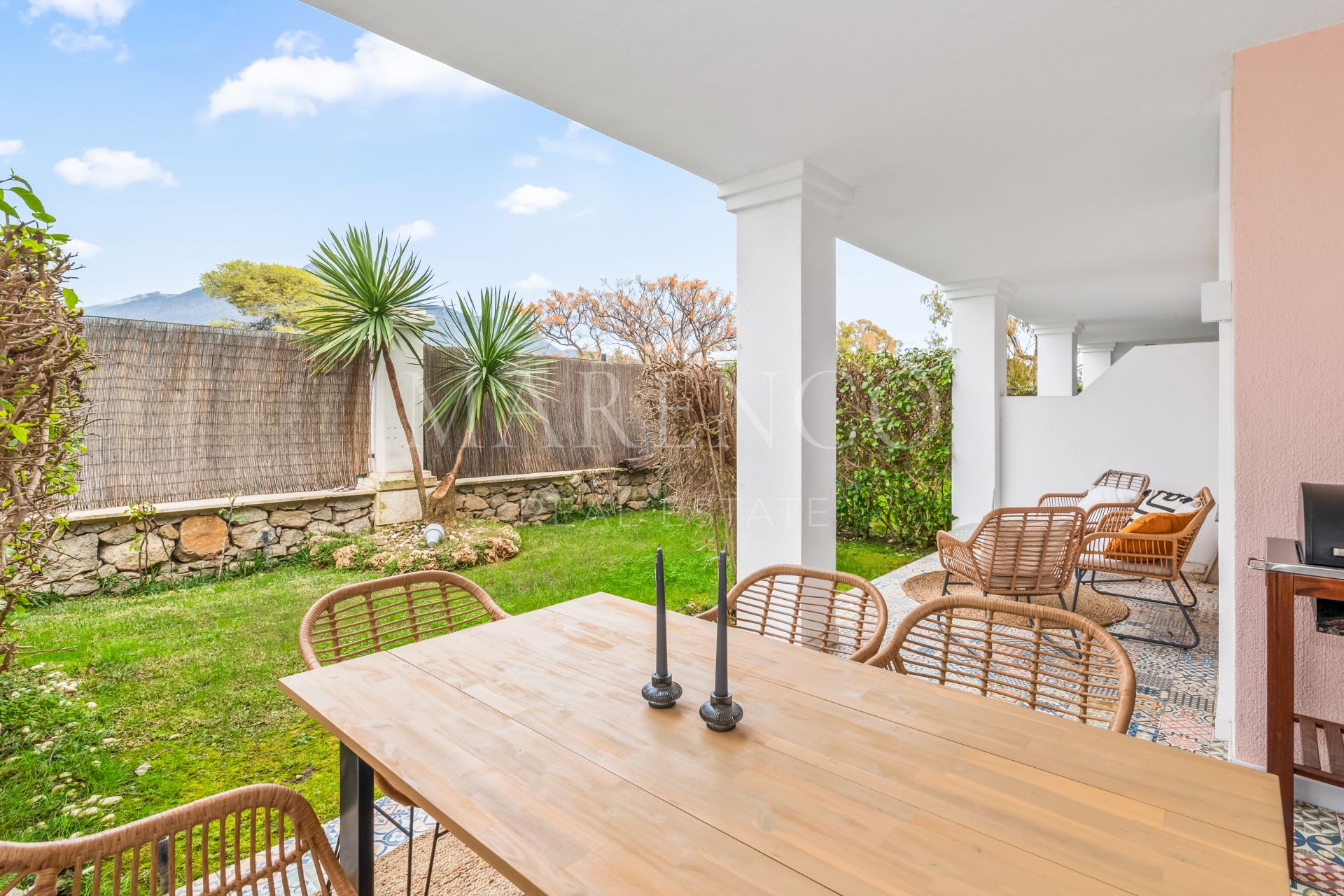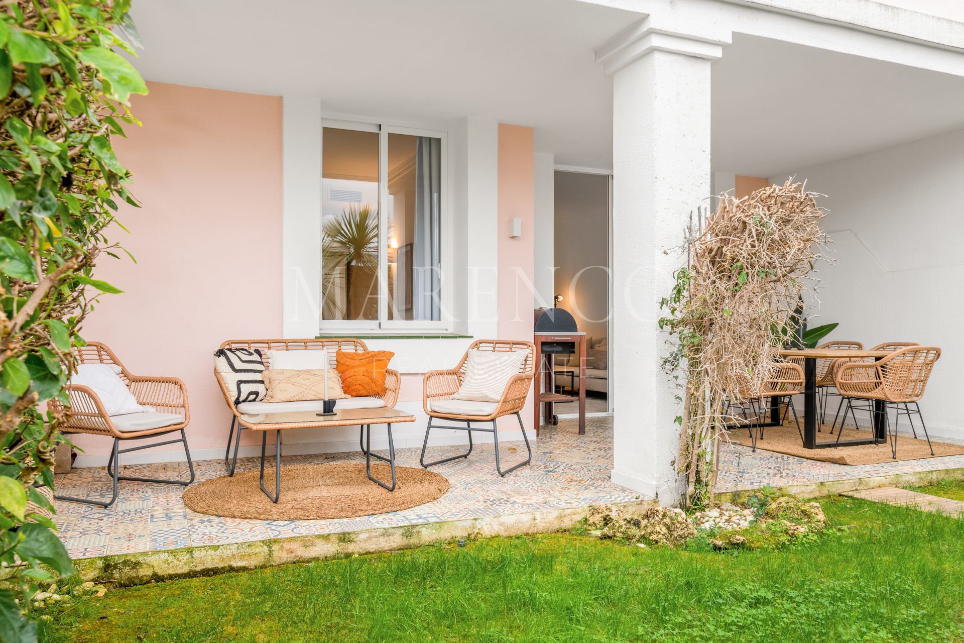 Wohnung zu verkaufen in Aloha, Nueva Andalucia mit 2 Schlafzimmer, 2 Badezimmer und hat Garten (privat). Maße: 82m² Gebaut und 14m² Terrasse.