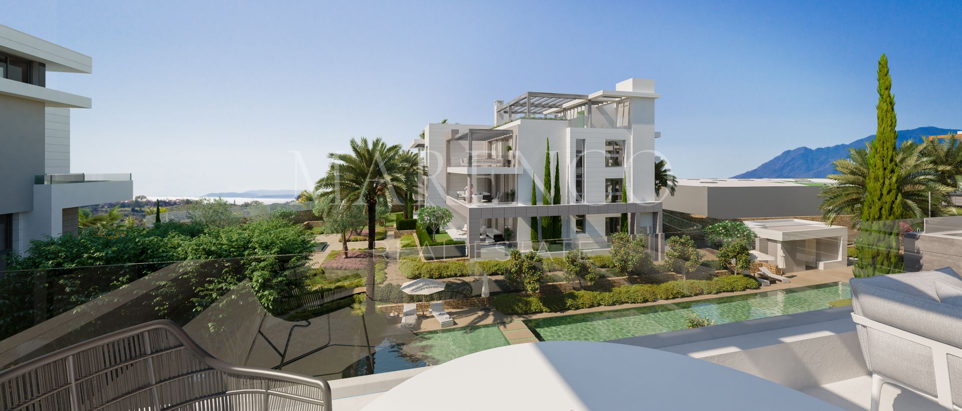 Im Herzen der renommierten New Golden Mile lädt Sie diese exklusive Wohnung in New Golden Mile dazu ein, sich einen perfekten Tag unter dem mediterranen Licht vorzustellen. Erwachen Sie mit Sonnenstrahlen, die durch große Fenster fluten, genießen Sie den Blick auf die angelegten Gärten und spüren Sie, wie Innen- und Außenbereich nahtlos ineinander übergehen. Ein ruhiger, moderner Rückzugsort für alle, die eine hochwertige Lebensqualität an der Costa del Sol suchen.