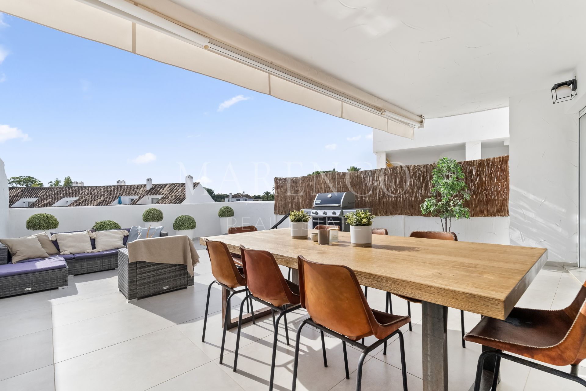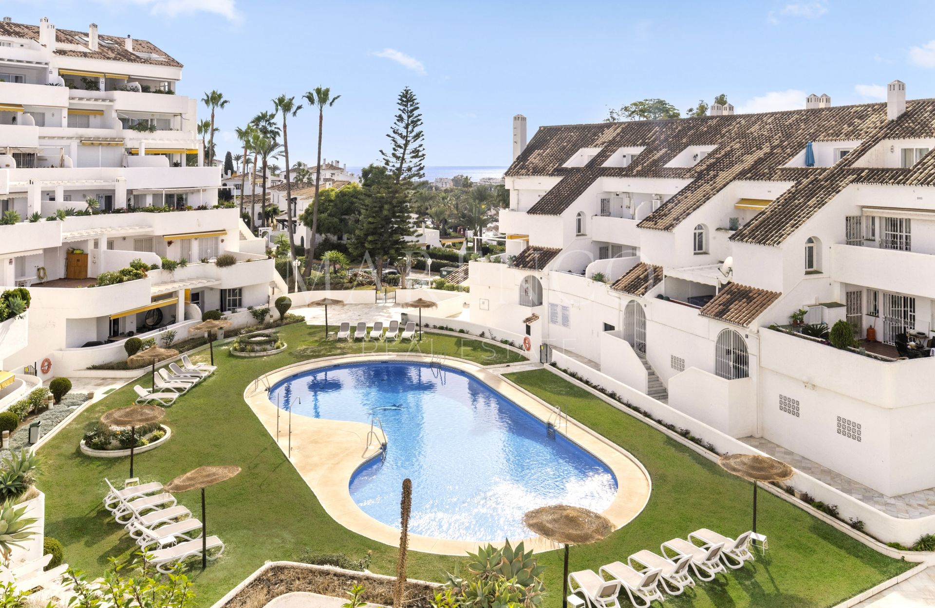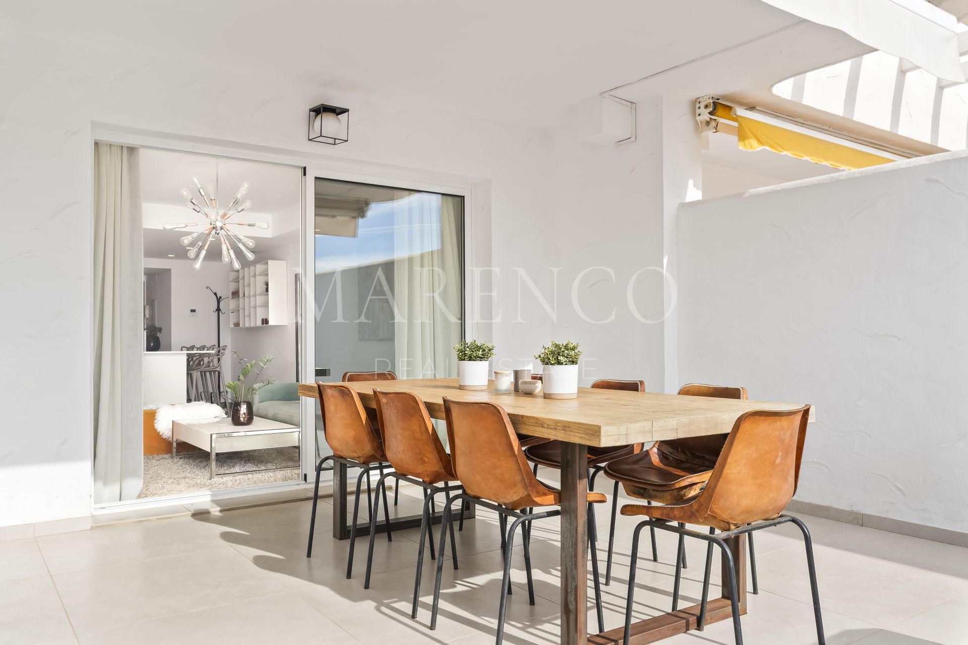 Wohnung zu verkaufen in El Dorado, Nueva Andalucia mit 3 Schlafzimmer, 2 Badezimmer und hat Schwimmbad (gemeinschaftlich) und Garten (gemeinschaftlich). Maße: 120m² Gebaut und 30m² Terrasse.