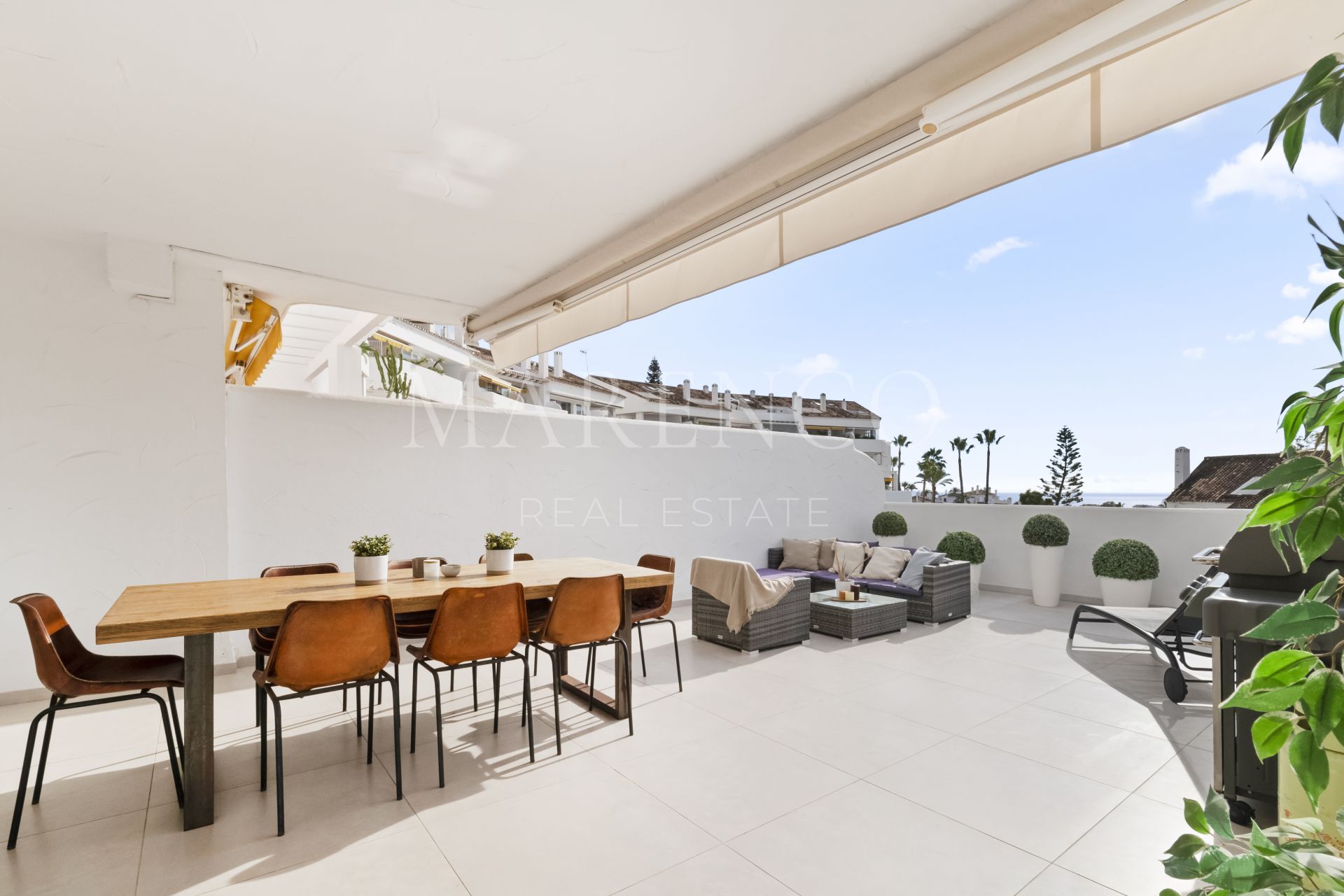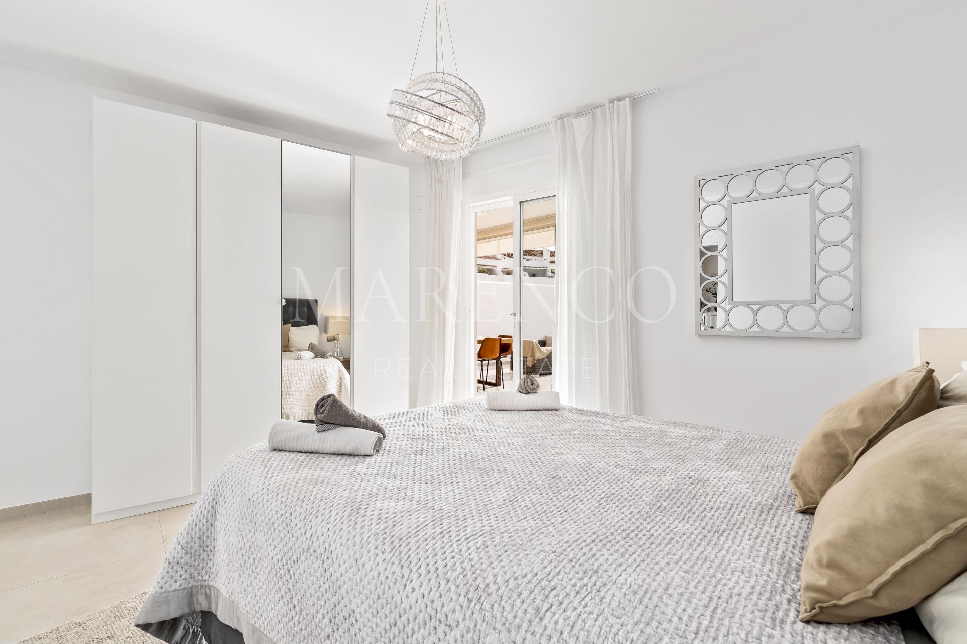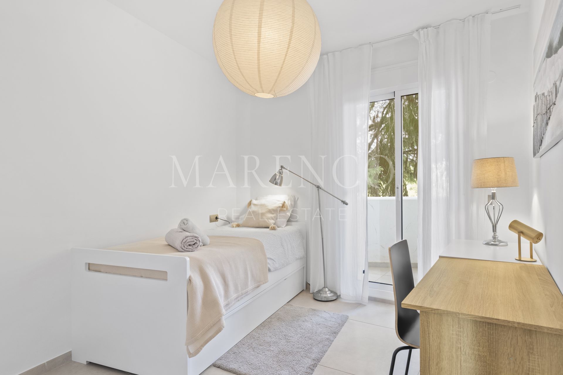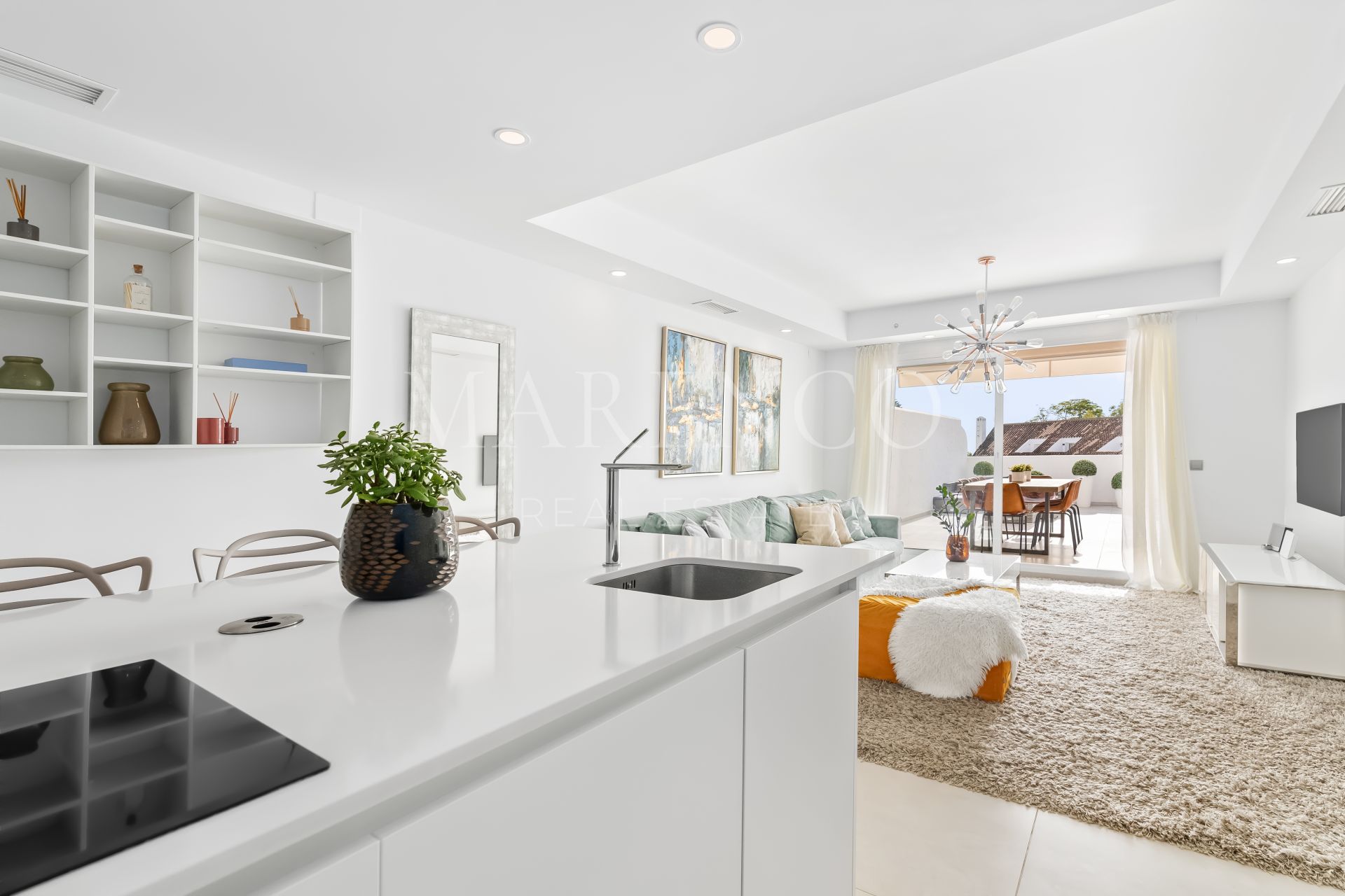 Wohnung zu verkaufen in El Dorado, Nueva Andalucia mit 3 Schlafzimmer, 2 Badezimmer und hat Schwimmbad (gemeinschaftlich) und Garten (gemeinschaftlich). Maße: 120m² Gebaut und 30m² Terrasse.