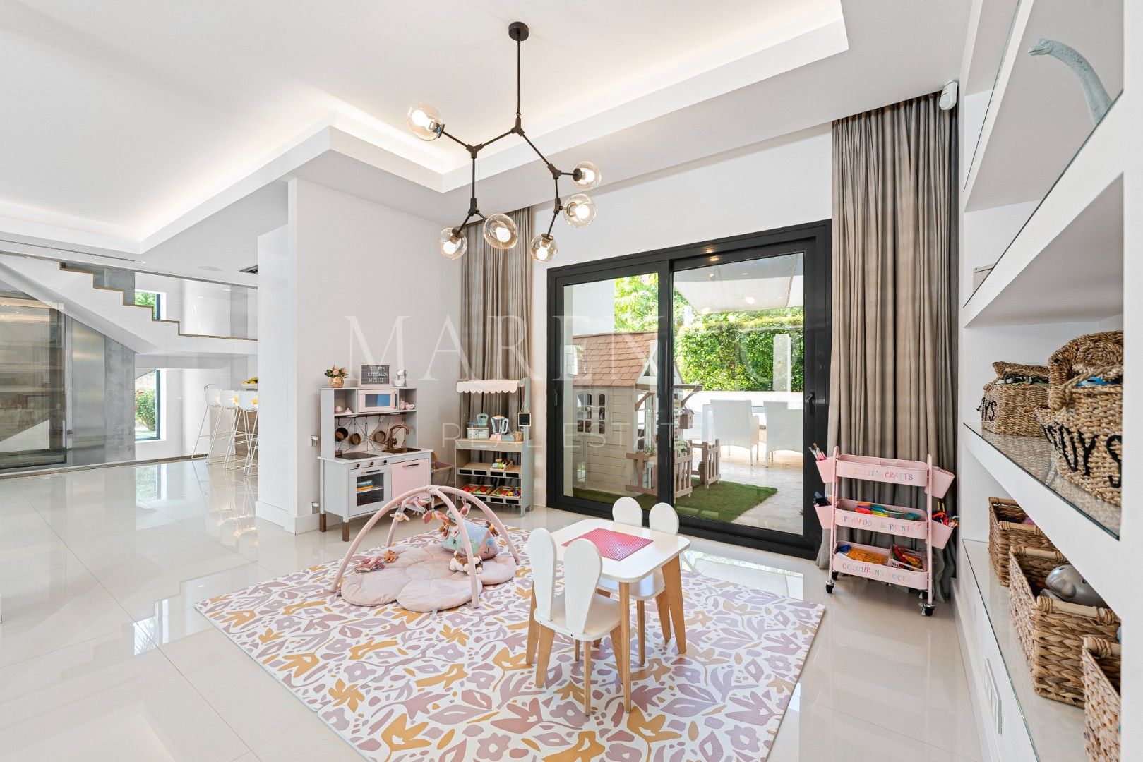 In der prestigeträchtigen und sehr begehrten Gegend von La Quinta in Benahavís gelegen, ist diese atemberaubende, moderne Villa das perfekte Zuhause für das Familienleben. Dank ihrer unschlagbaren Südausrichtung ist die Immobilie den ganzen Tag über von natürlichem Licht durchflutet und schafft so eine warme und einladende Atmosphäre.