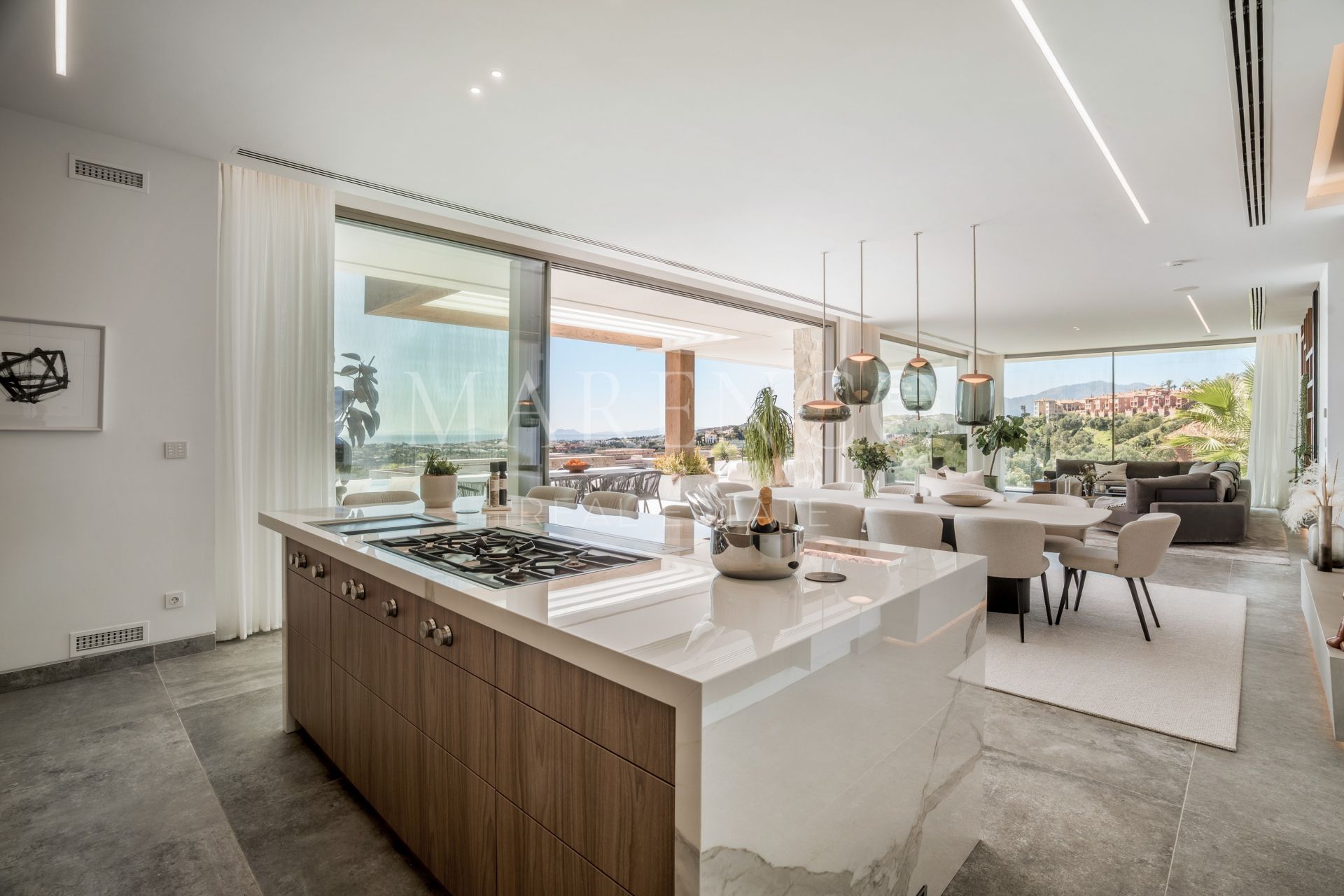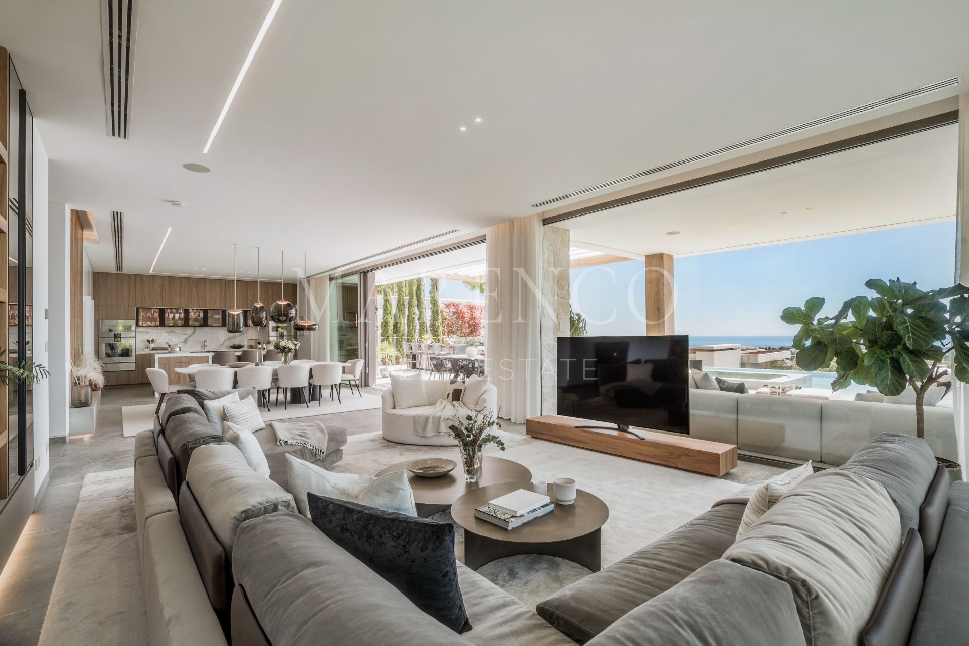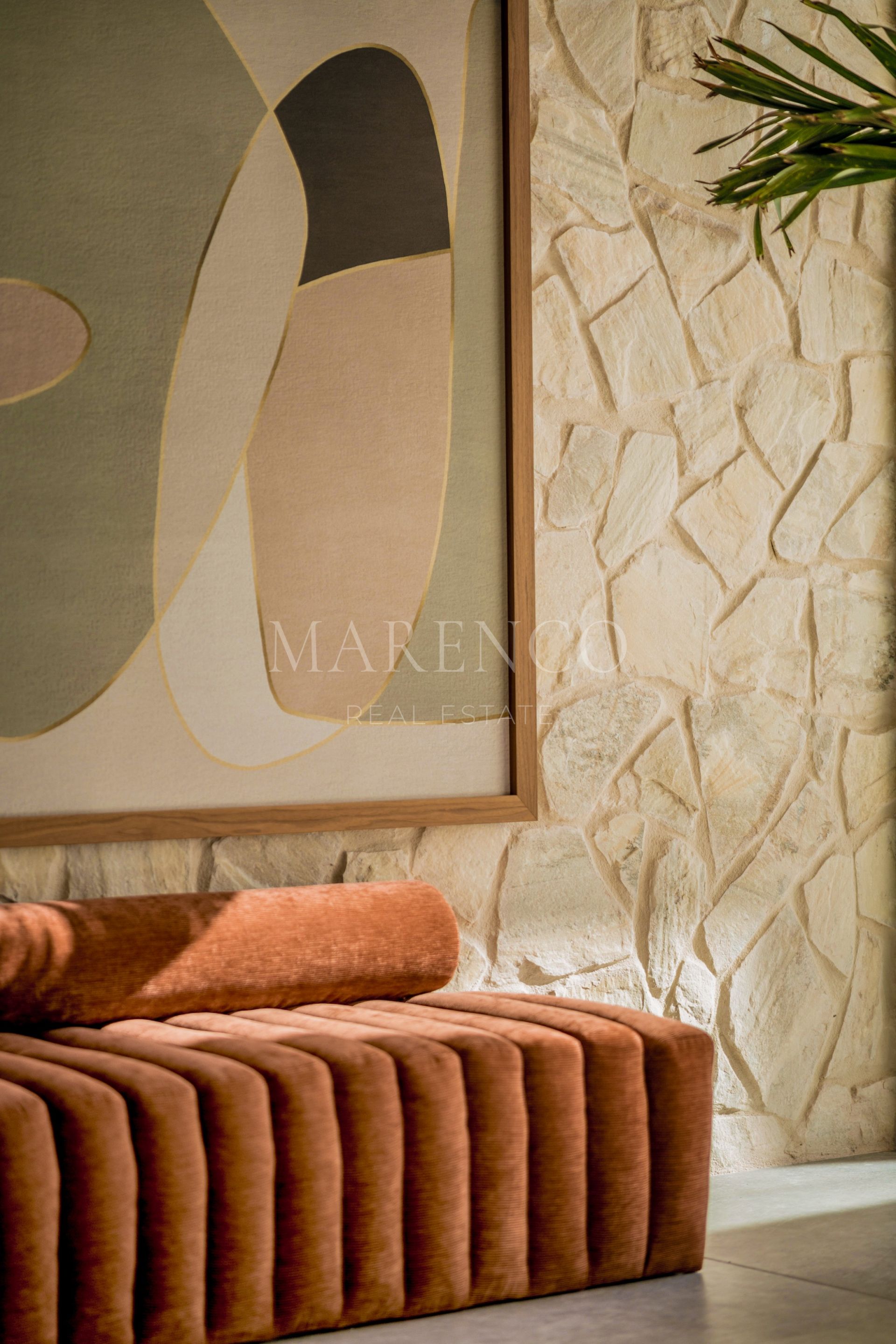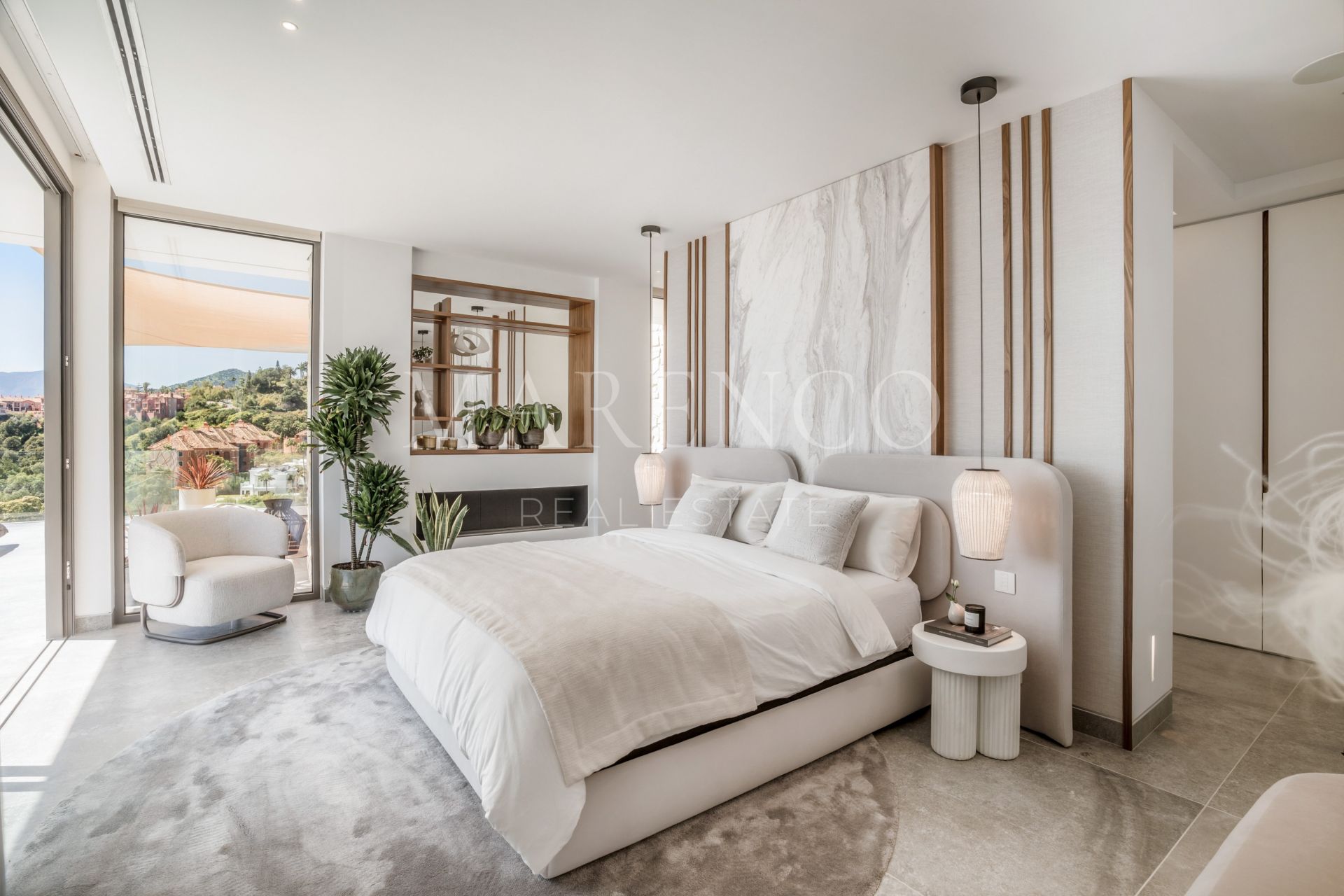 Die Master-Suite ist ein echtes Highlight. Sie wurde so positioniert, dass man einen atemberaubenden Meerblick genießt, und verfügt über ein maßgefertigtes Ankleidezimmer sowie ein luxuriöses En-Suite-Badezimmer mit hochwertigen Armaturen und einer ruhigen, spa-ähnlichen Atmosphäre – ein Rückzugsort der besonderen Art innerhalb des Hauses.