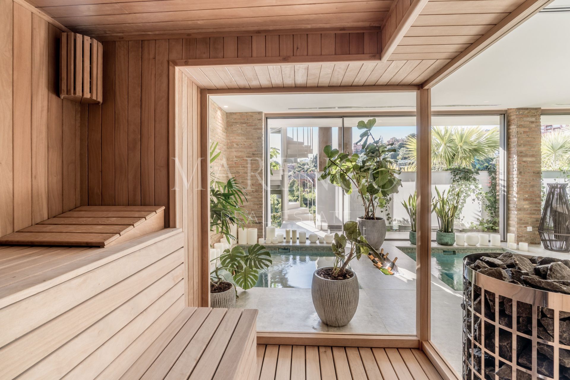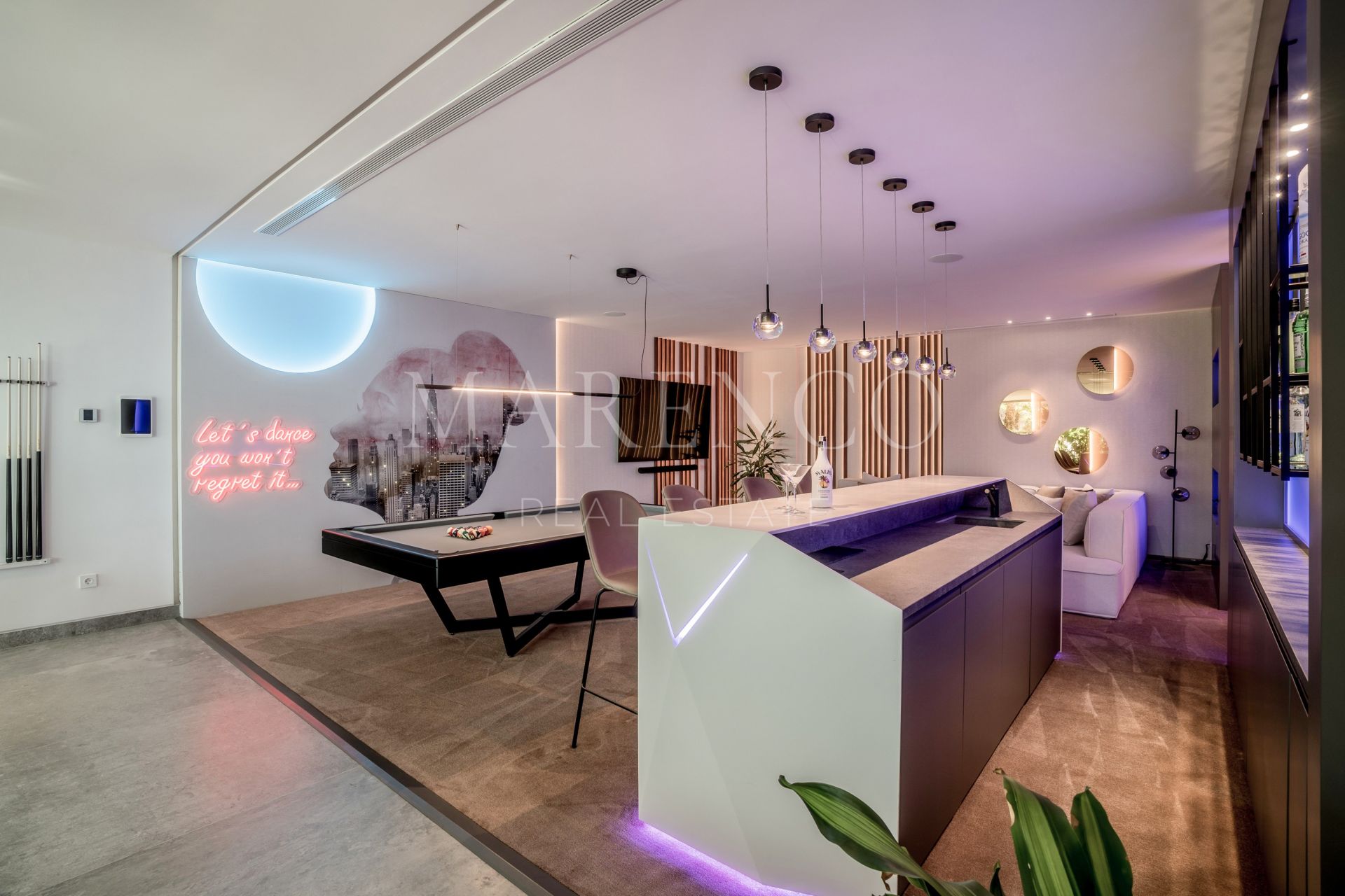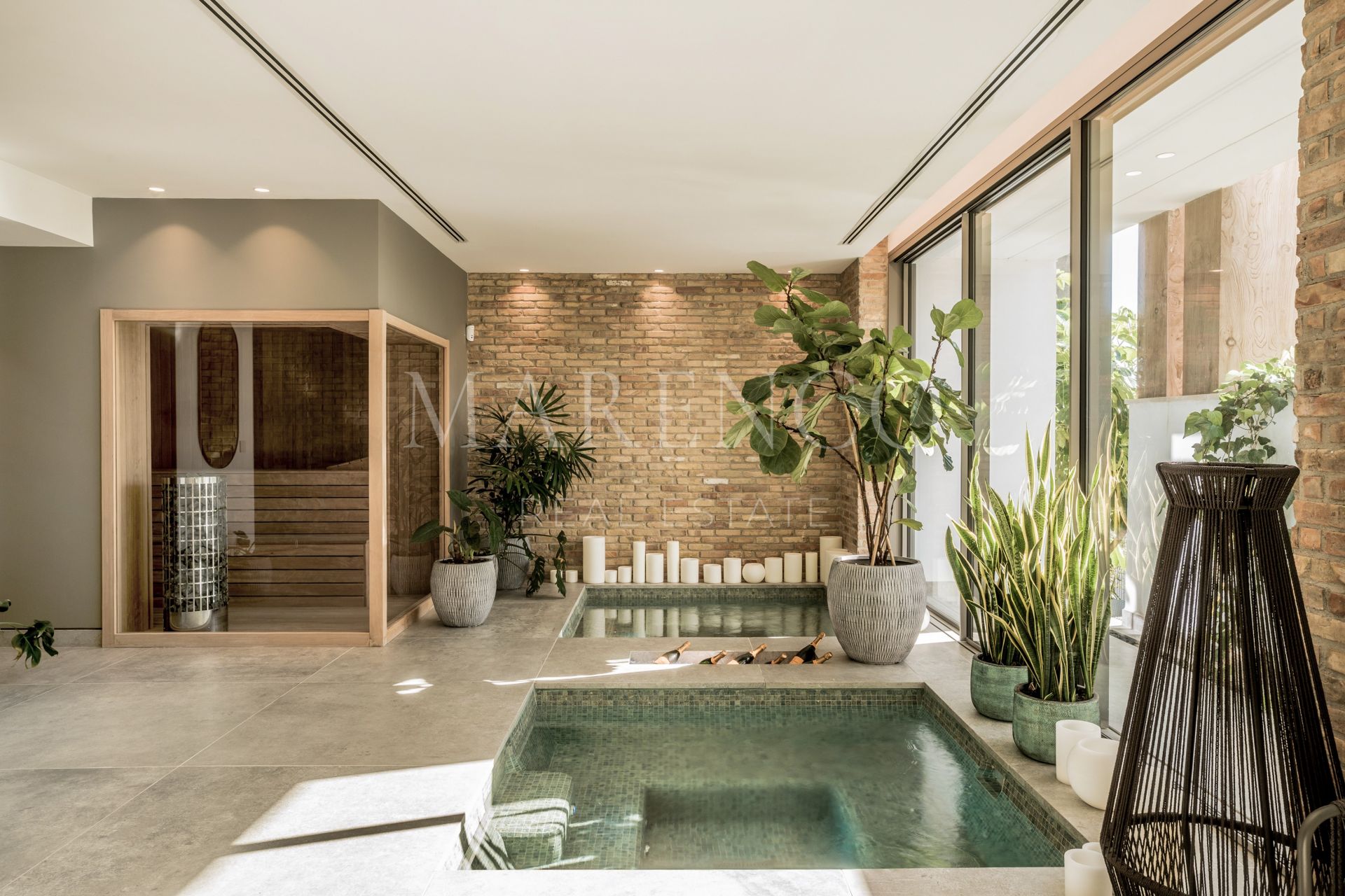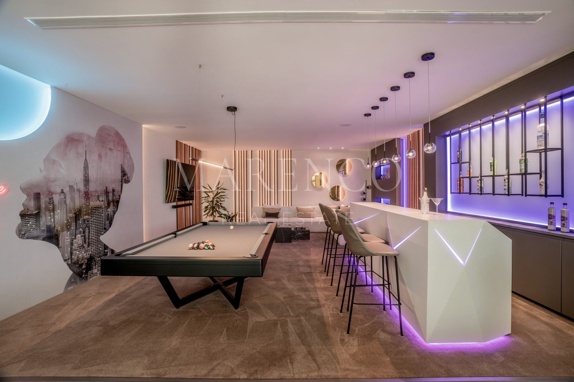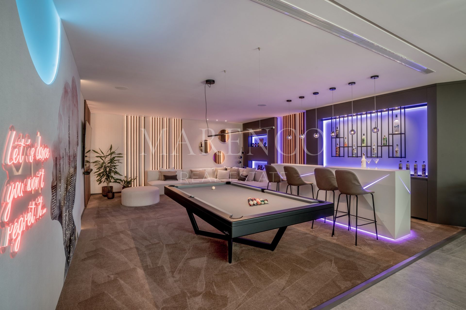 Die Villa verfügt über ein privates Spa mit beheiztem Innenpool, Sauna, Dampfbad und einem separaten Massageraum. Ein voll ausgestattetes Fitnessstudio mit Geräten der Marke Eleiko ermöglicht es Ihnen, aktiv zu bleiben, ohne das Haus zu verlassen. Der großzügige Entertainment-Raum ist ideal für Filmabende, Spiele oder entspannte Stunden mit Familie und Freunden.