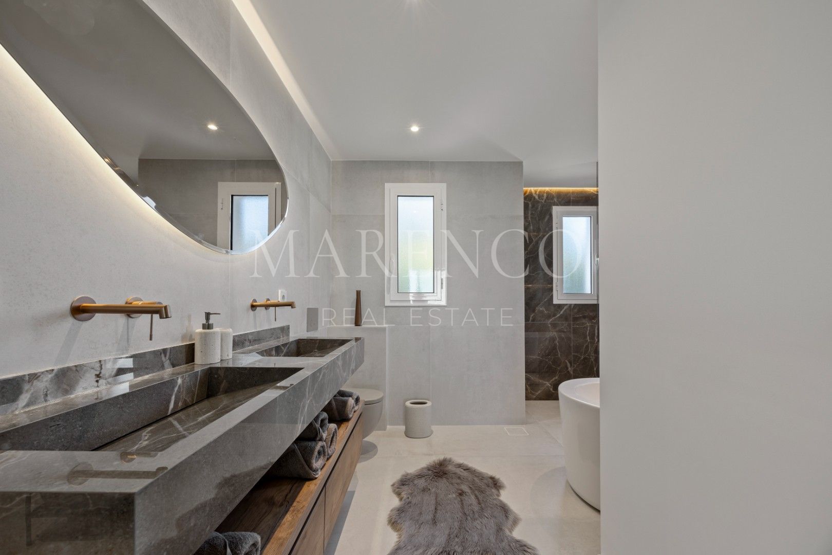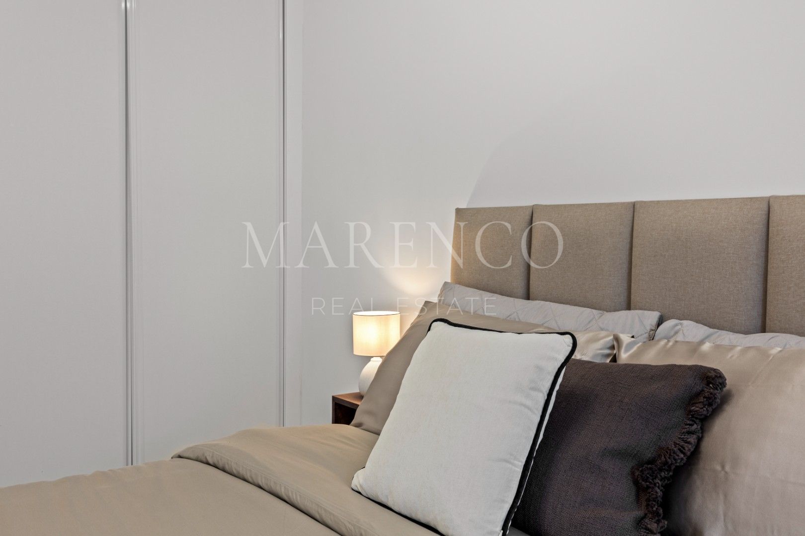 Mit einer Wohnfläche von 186 m² und einer großzügigen Terrasse von 37 m² verfügt die Wohnung über 3 Schlafzimmer und 3 Badezimmer in einem hellen, offenen Grundriss. Der Wohn- und Essbereich geht fließend in die Terrasse über und schafft eine harmonische Verbindung zwischen Innen- und Außenbereich. Die Designküche mit Marmorinsel bildet das stilvolle Herzstück des Hauses. Die Hauptsuite bietet direkten Zugang zur Terrasse, einen begehbaren Kleiderschrank und ein Badezimmer im Spa-Stil. Zwei weitere Schlafzimmer bieten komfortablen Raum für Familie oder Gäste.