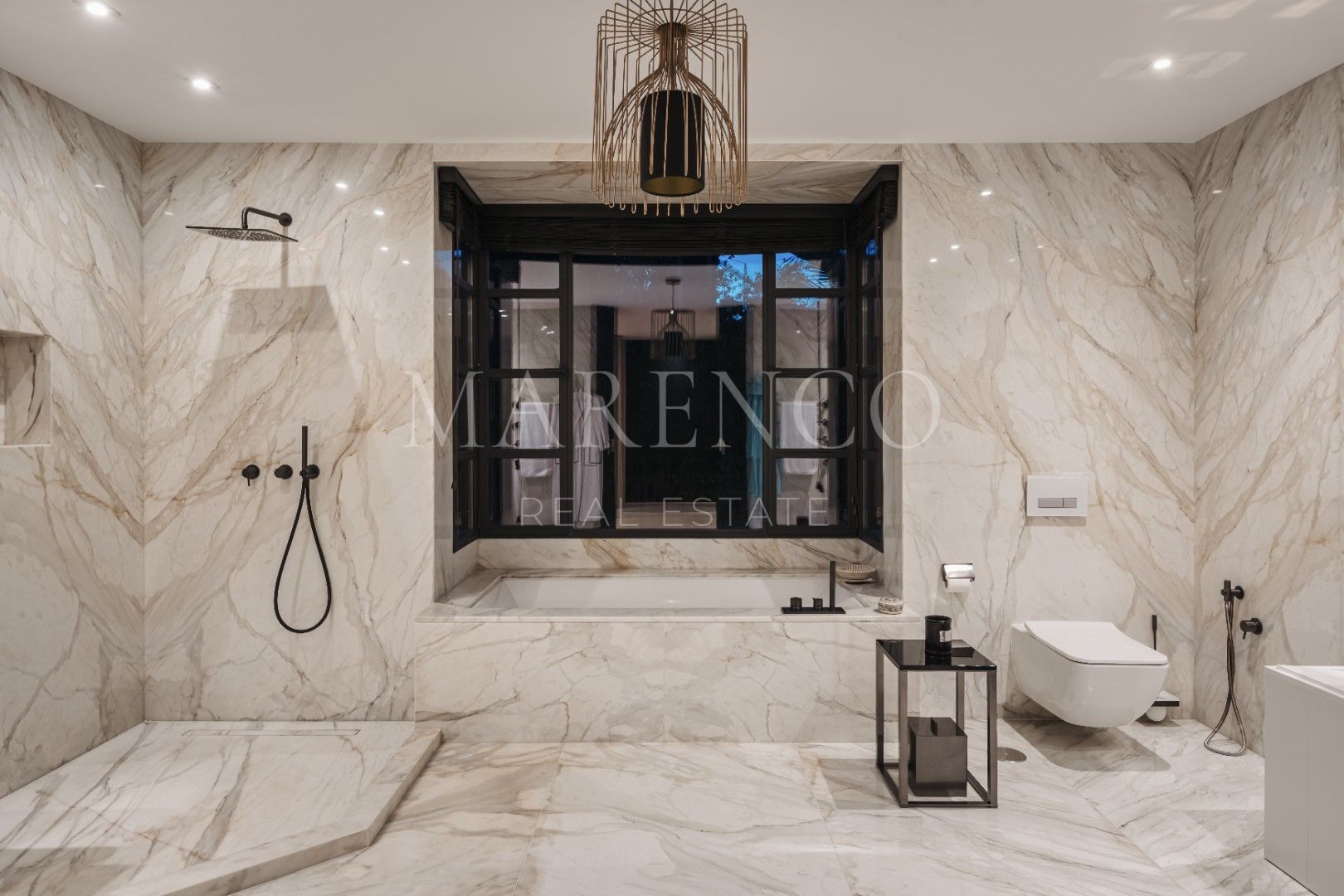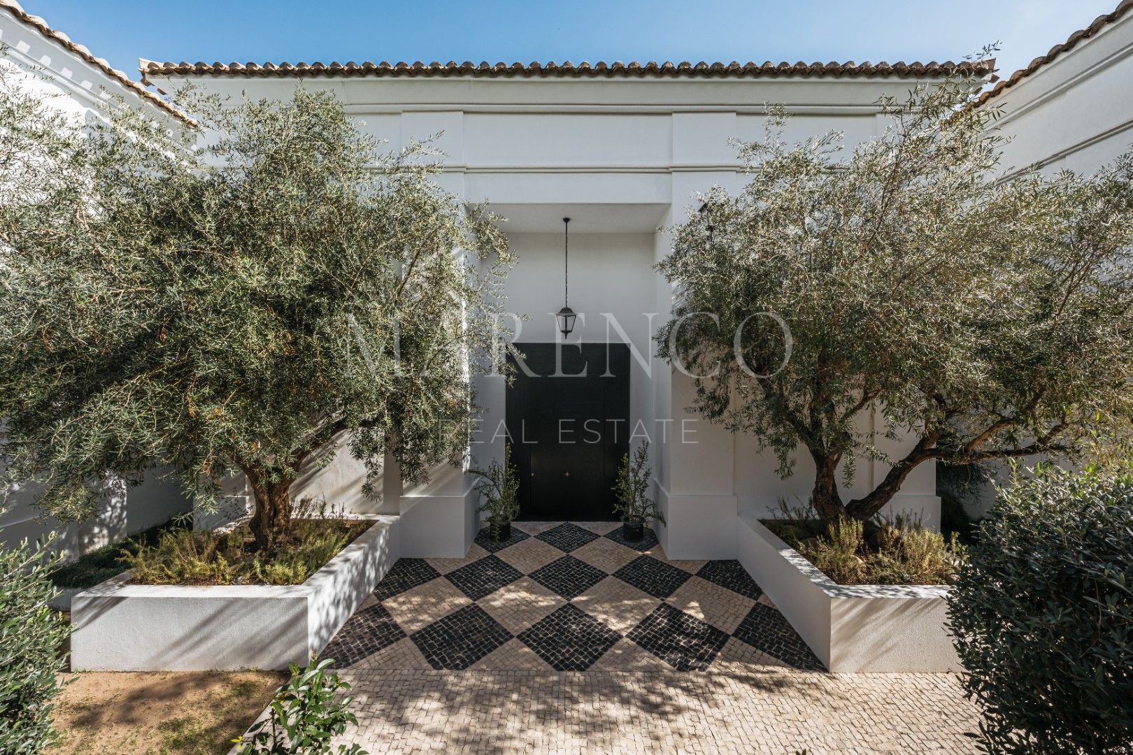 Es ist ausgestattet mit einem Alarmsystem, Klimaanlage, Parkett- und Marmorböden mit Fußbodenheizung im gesamten Haus, einem automatischen Bewässerungssystem, Doppelverglasung, eingebauten Schränken, einem maßgeschneiderten Ankleidebereich und mehr.