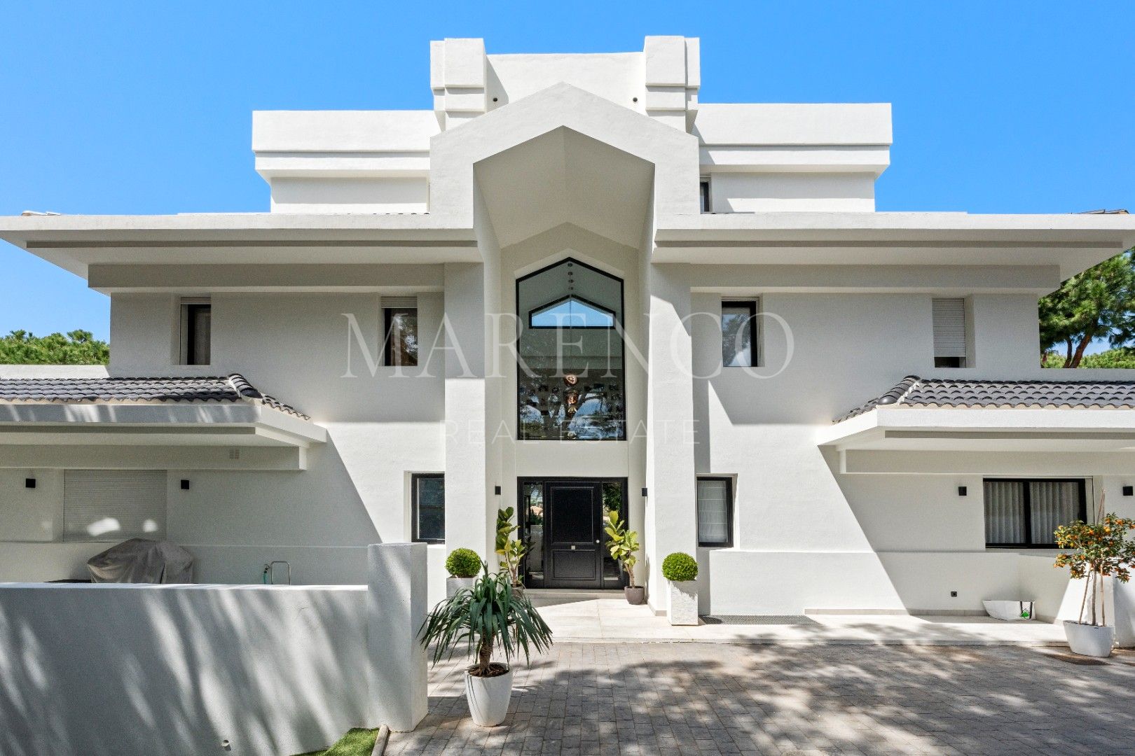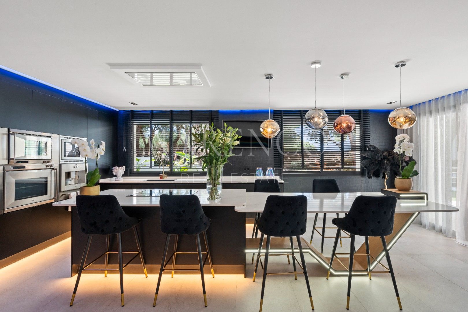 Diese spektakuläre Villa mit 6 Schlafzimmern steht in einer ruhigen Wohngegend von Marbella zum Verkauf. Mit einer bebauten Fläche von 987 m² und einem großzügigen Grundstück von 1.871 m² verkörpert diese hochwertige Immobilie das Wesen von Luxus und Geräumigkeit. Das Design maximiert das natürliche Licht und bietet eine offene Raumaufteilung.