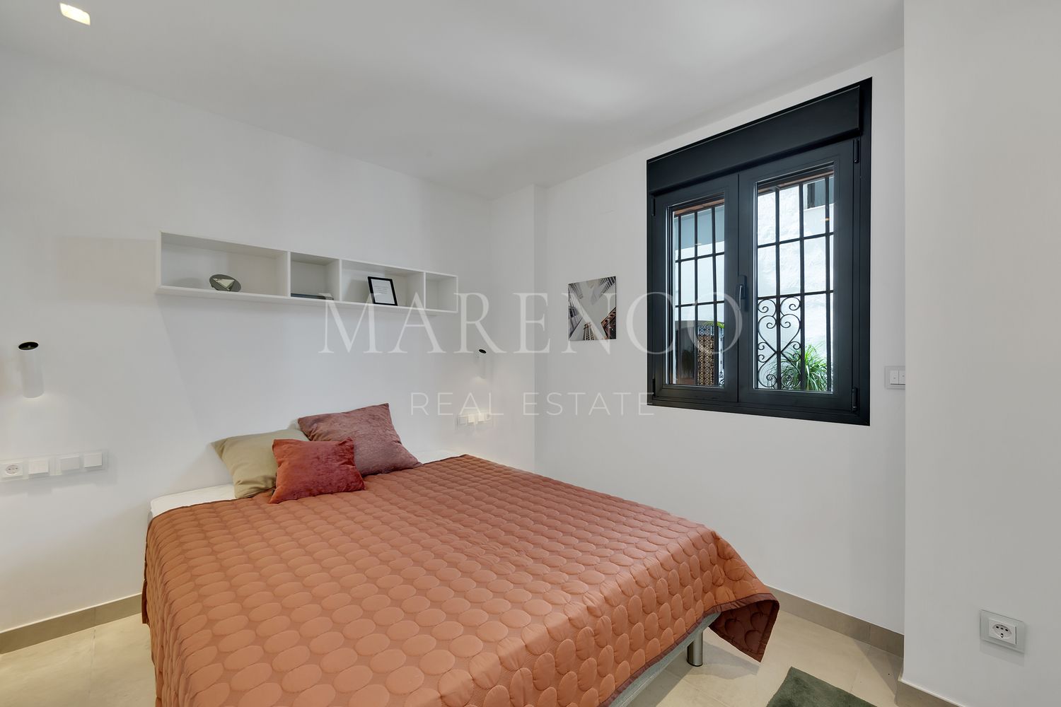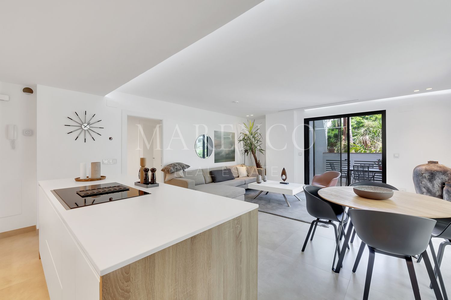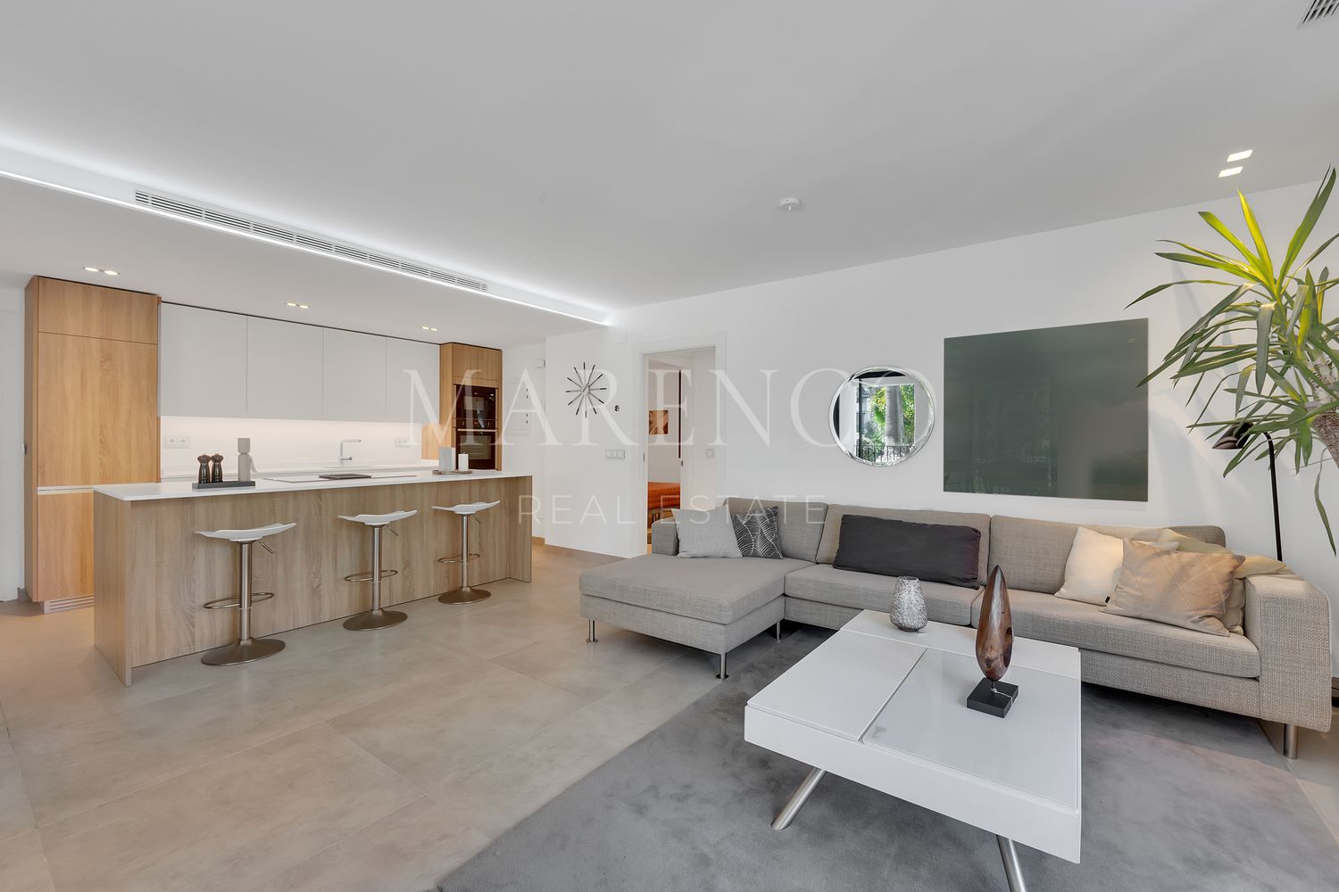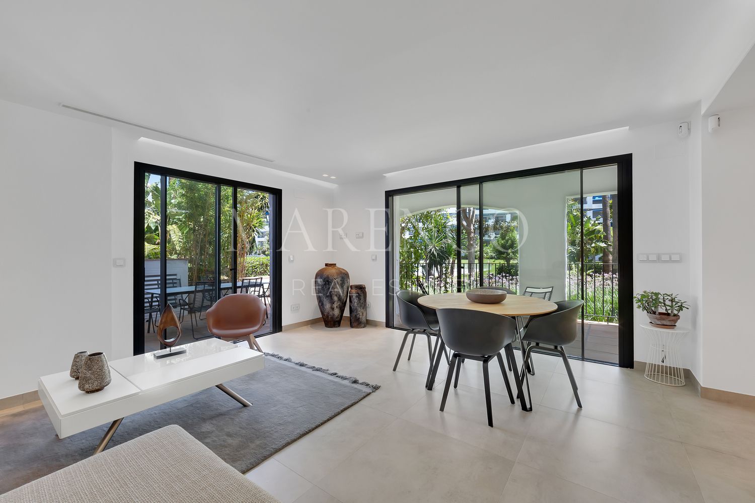 Erdgeschosswohnung zu verkaufen in Marbella - Puerto Banus, Marbella mit 3 Schlafzimmer, 2 Badezimmer und hat Schwimmbad (gemeinschaftlich) und Garten (gemeinschaftlich). Maße: 101m² Gebaut und 29m² Terrasse.