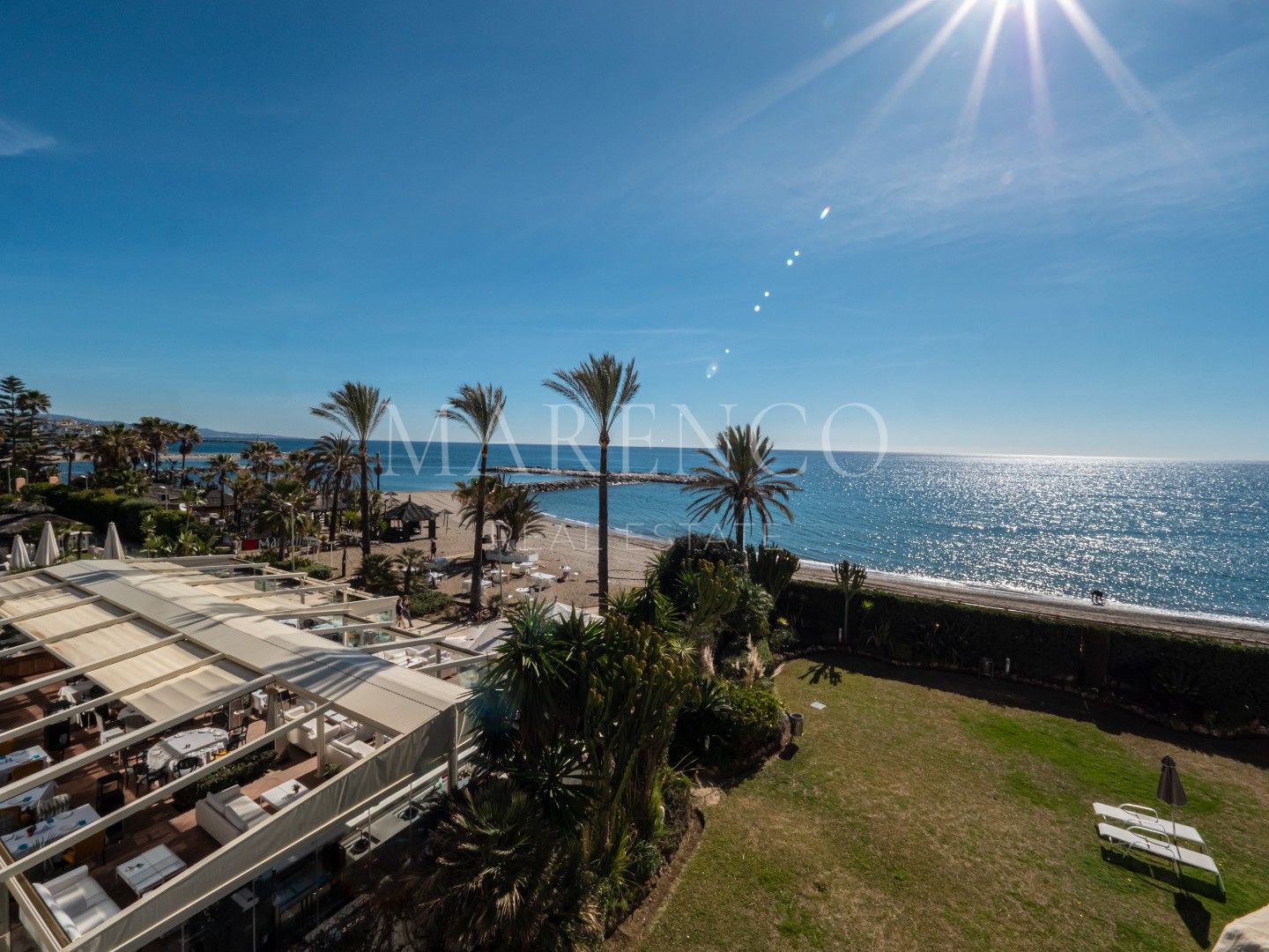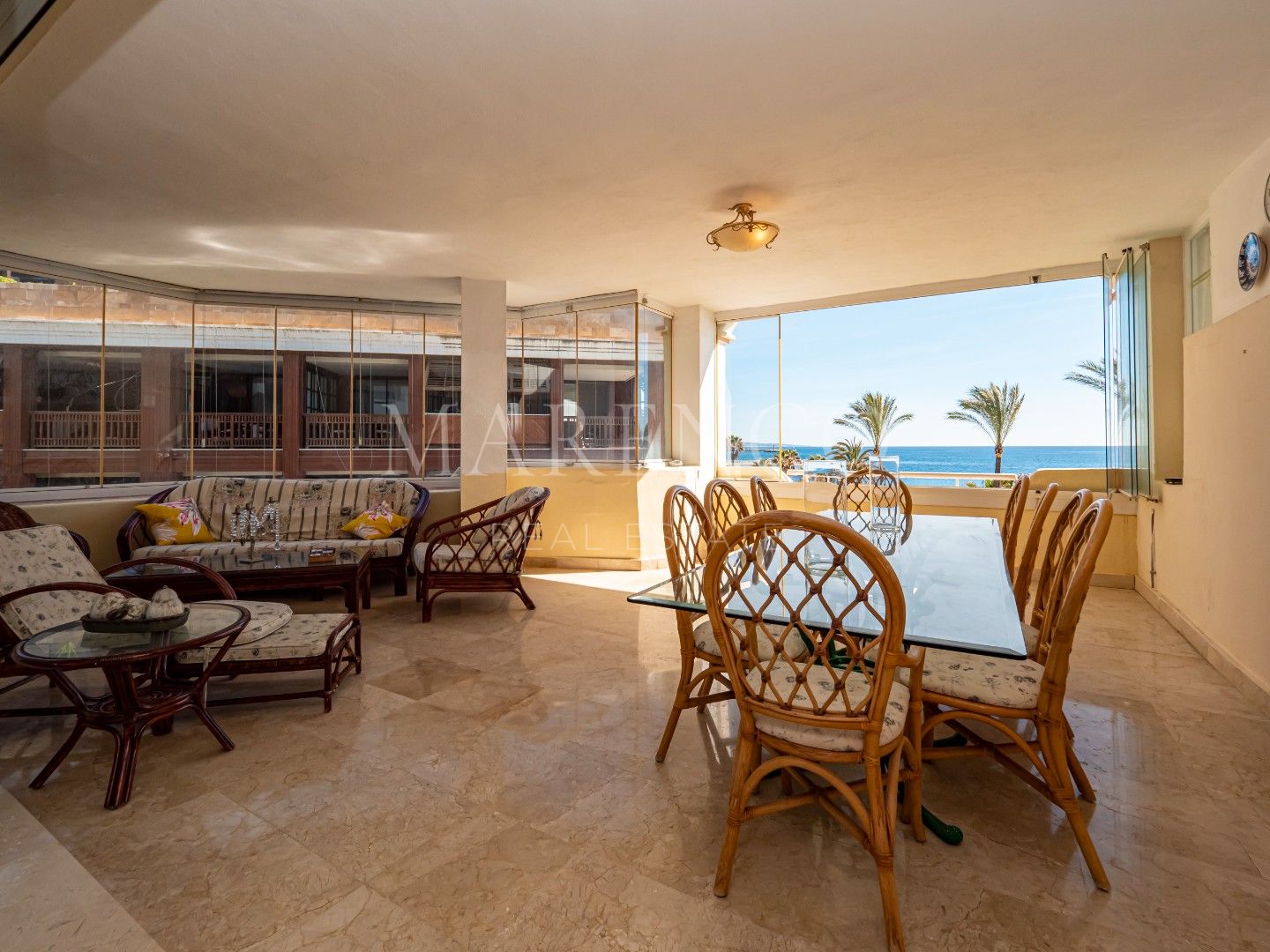 Eine seltene Gelegenheit, eine Wohnung in erster Meereslinie zu erwerben – nur wenige Schritte vom Herzen Puerto Banús entfernt. Die Wohnung befindet sich im zweiten Stock und ist nach Süden bis Osten ausgerichtet. Sie bietet einen unverbauten Blick auf das Mittelmeer und direkten Zugang zur Strandpromenade.