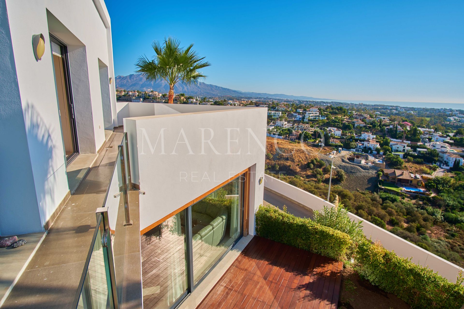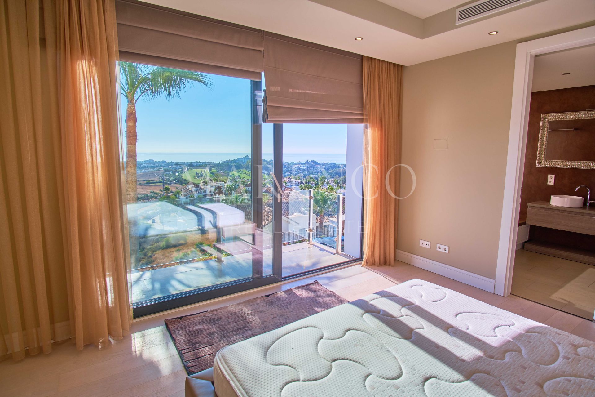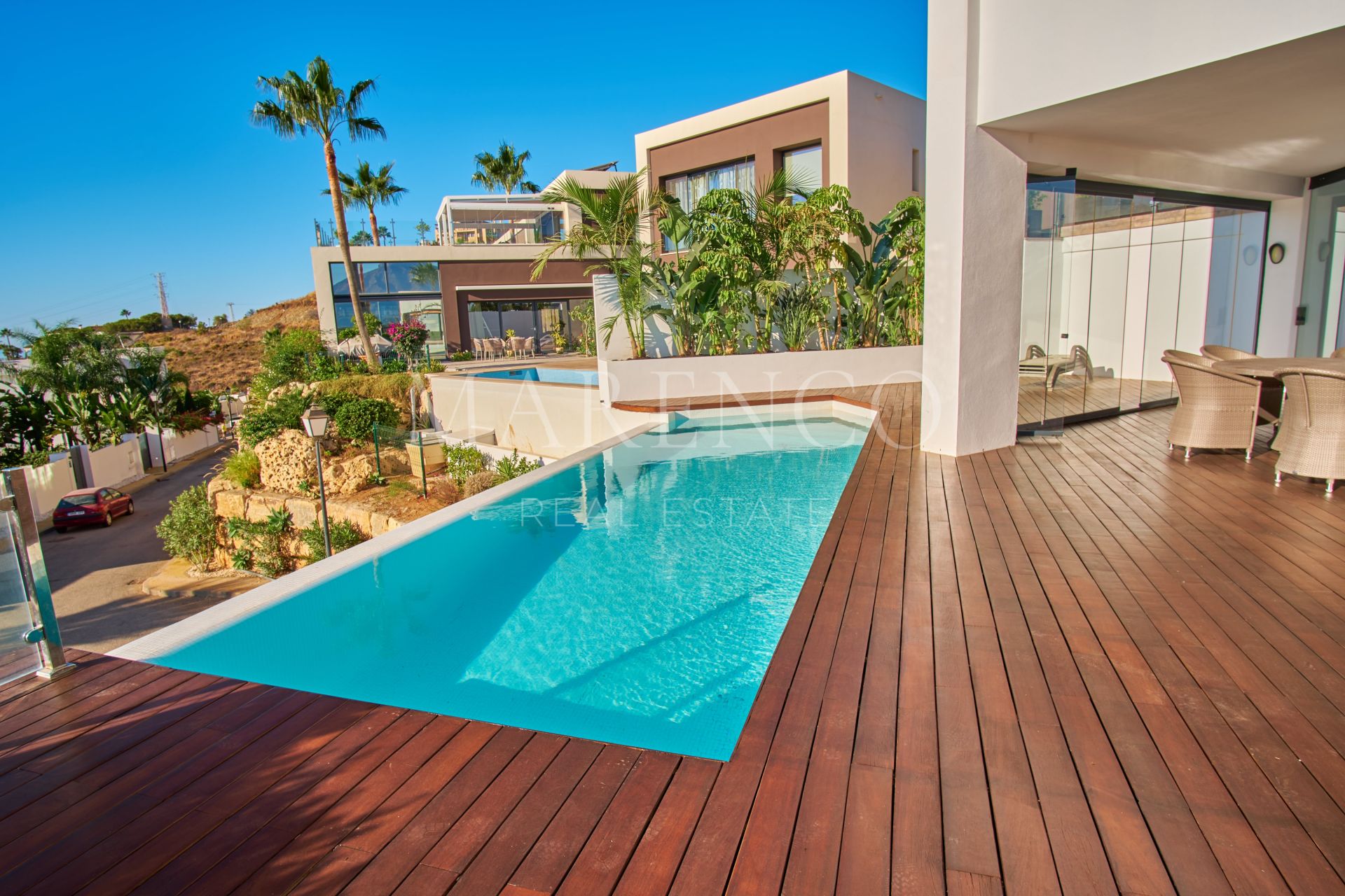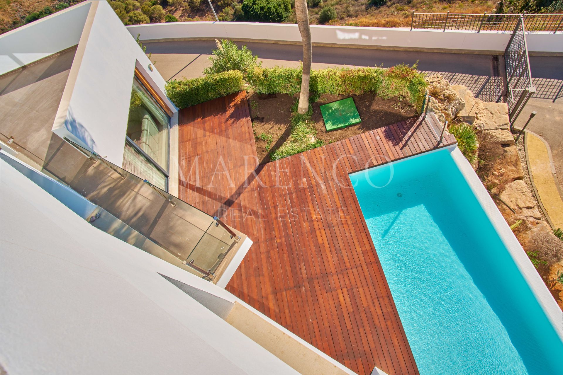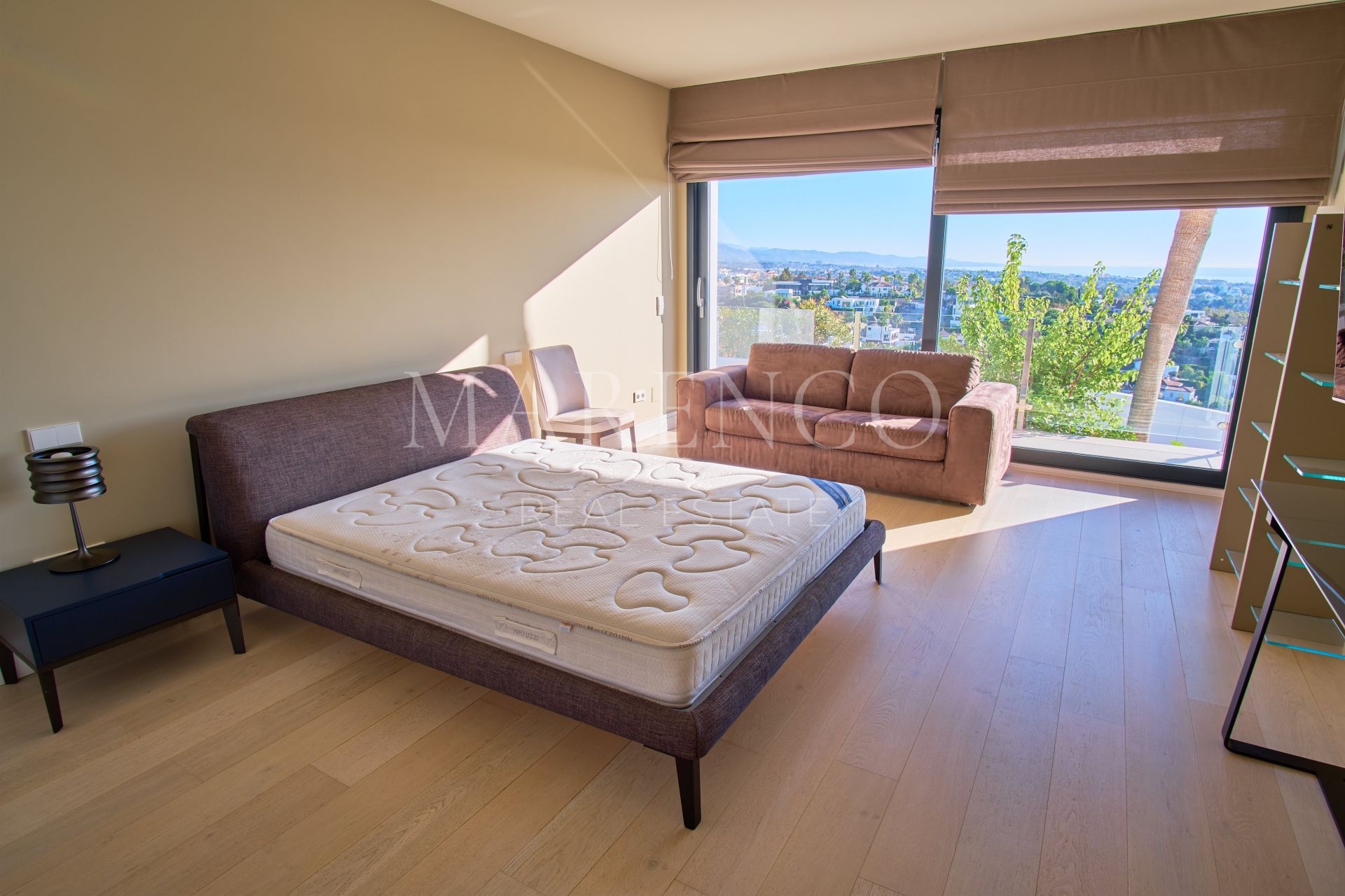Villa zu verkaufen in Mirador del Paraiso, Benahavis mit 6 Schlafzimmer, 4 Badezimmer, eingebaut 2015 und hat Schwimmbad (privat), garage (privat) und Garten (privat). Maße: 487m² Gebaut, 837m² handlung und 277m² Terrasse.
