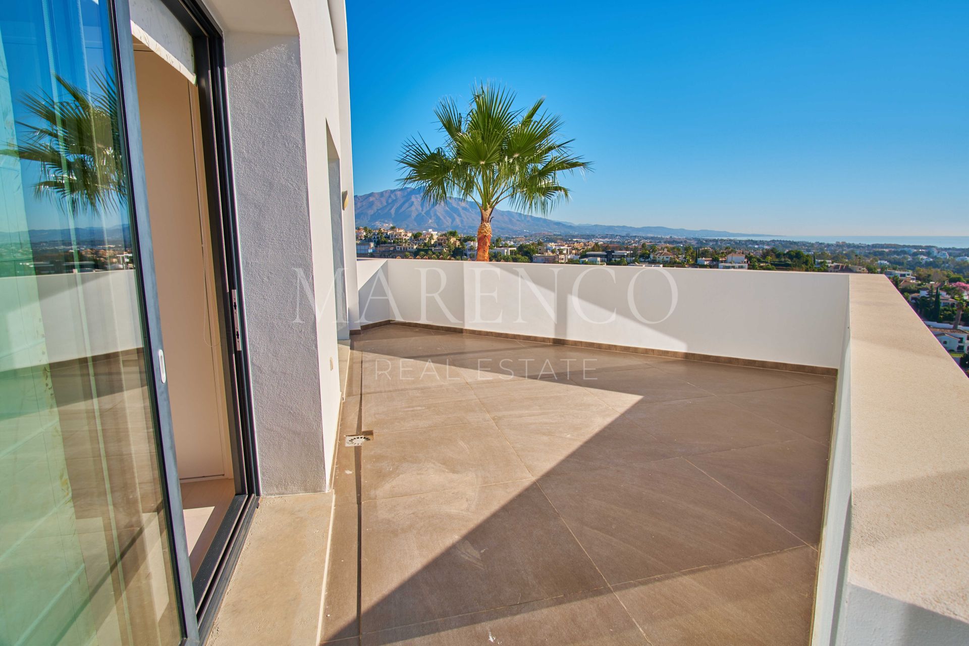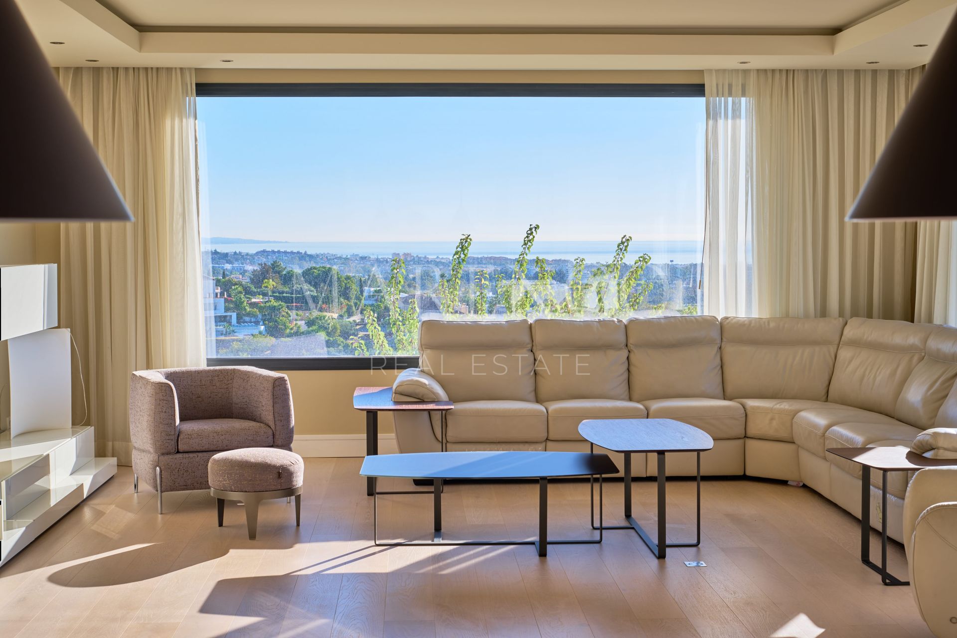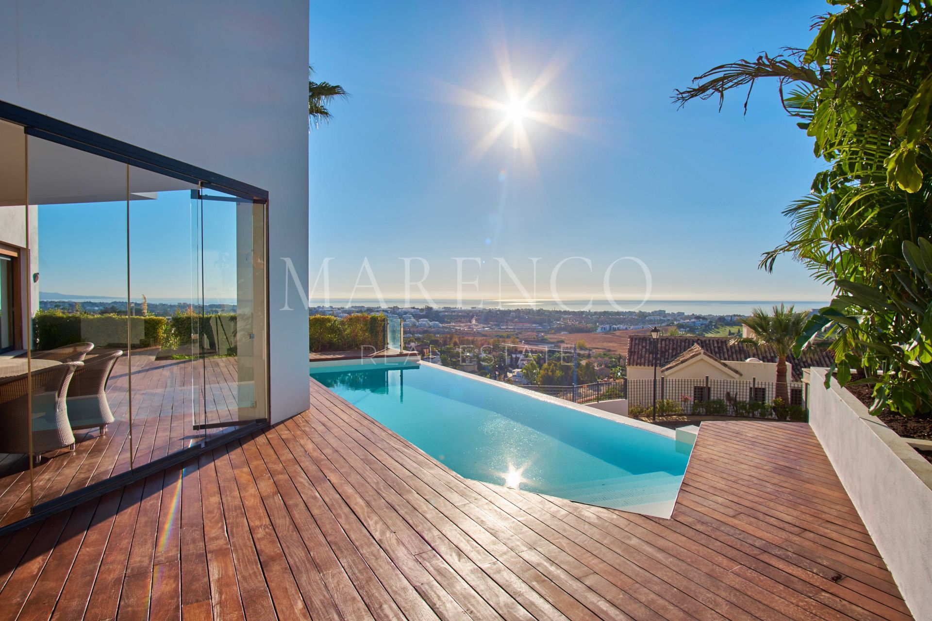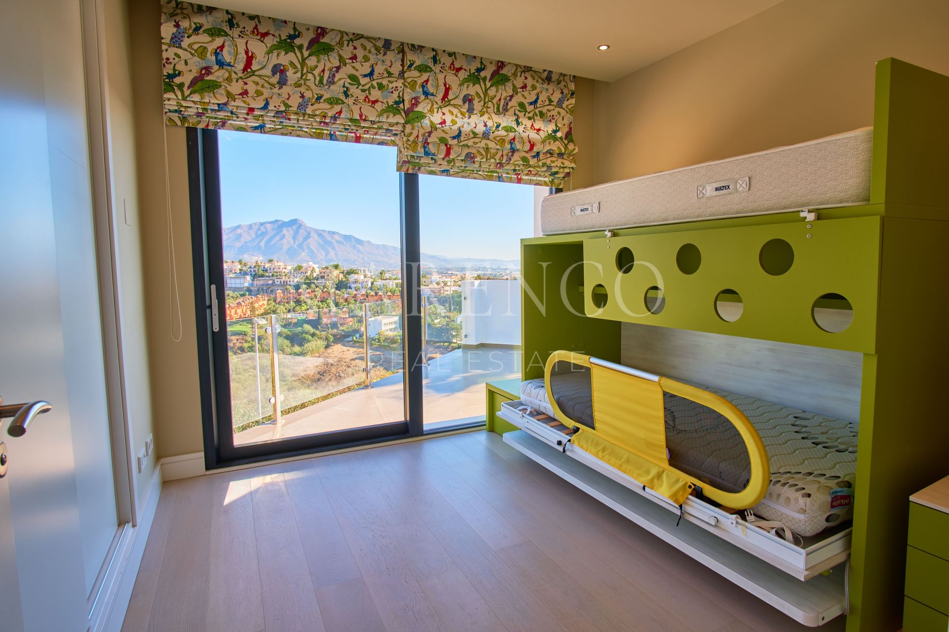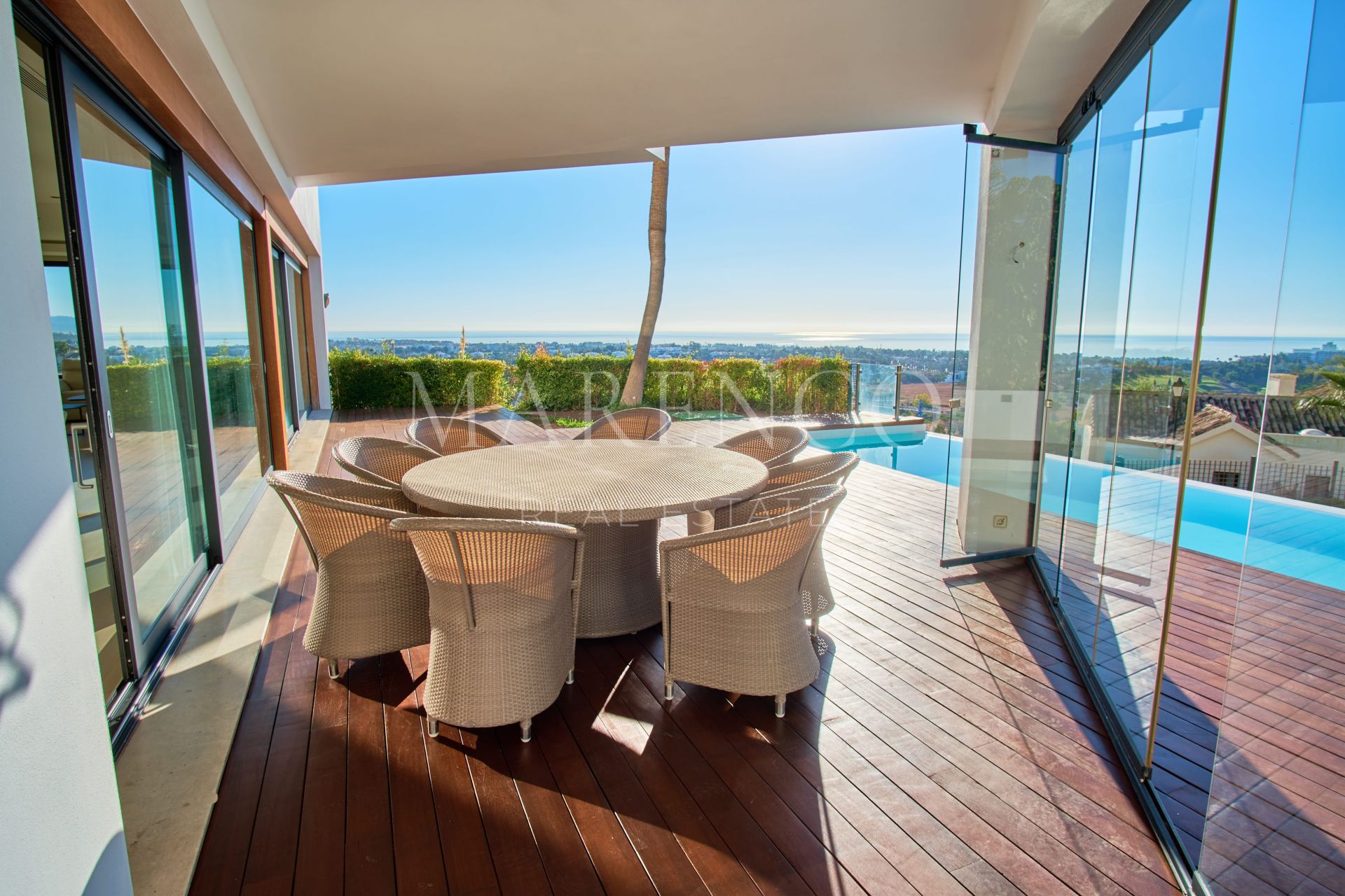 Villa zu verkaufen in Mirador del Paraiso, Benahavis mit 6 Schlafzimmer, 4 Badezimmer, eingebaut 2015 und hat Schwimmbad (privat), garage (privat) und Garten (privat). Maße: 487m² Gebaut, 837m² handlung und 277m² Terrasse.