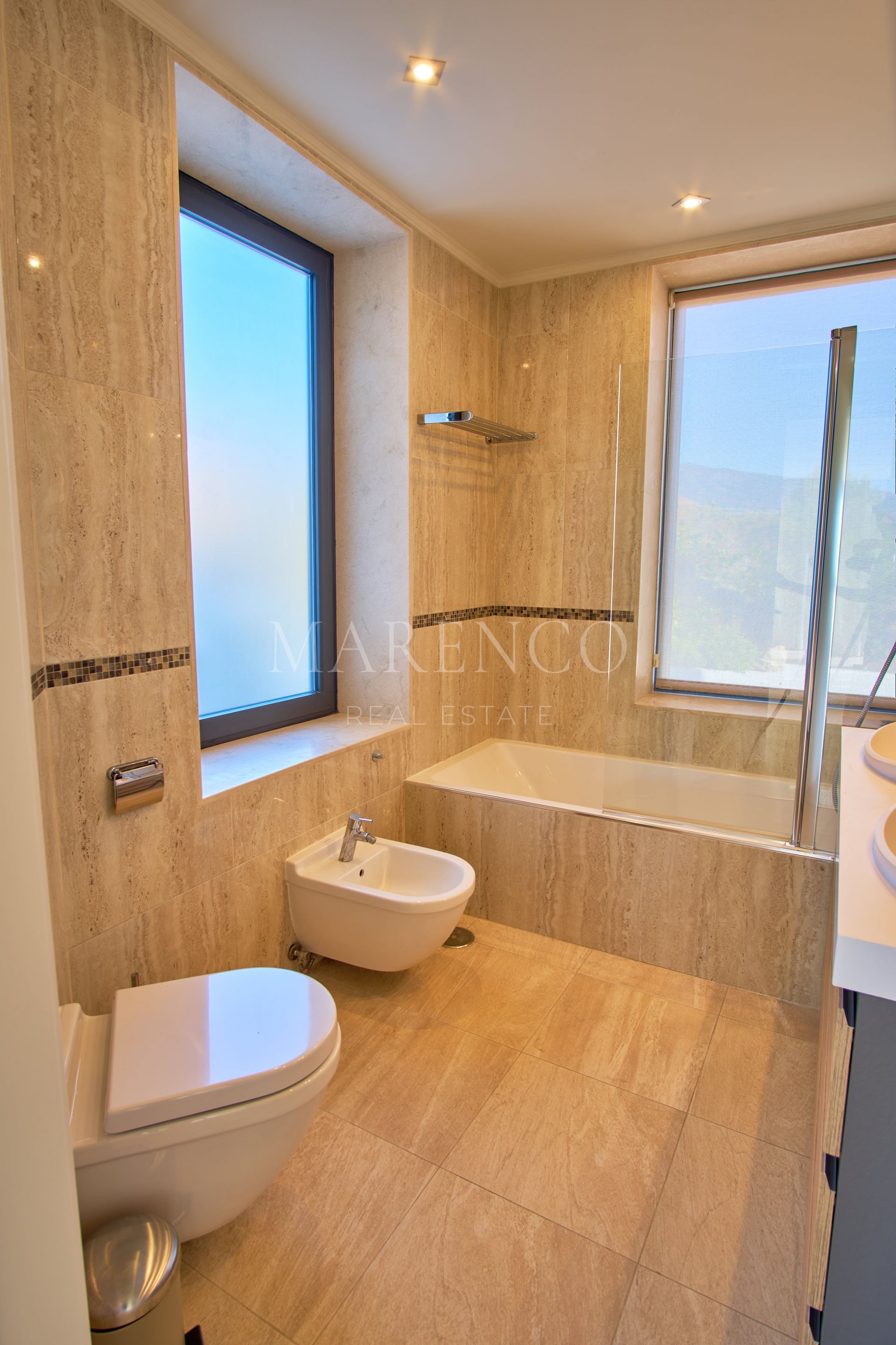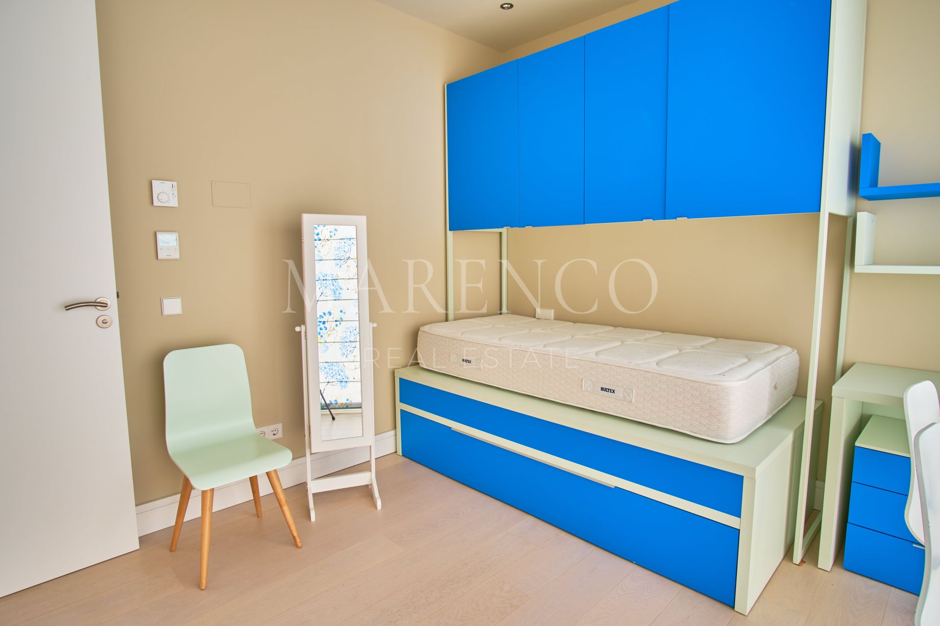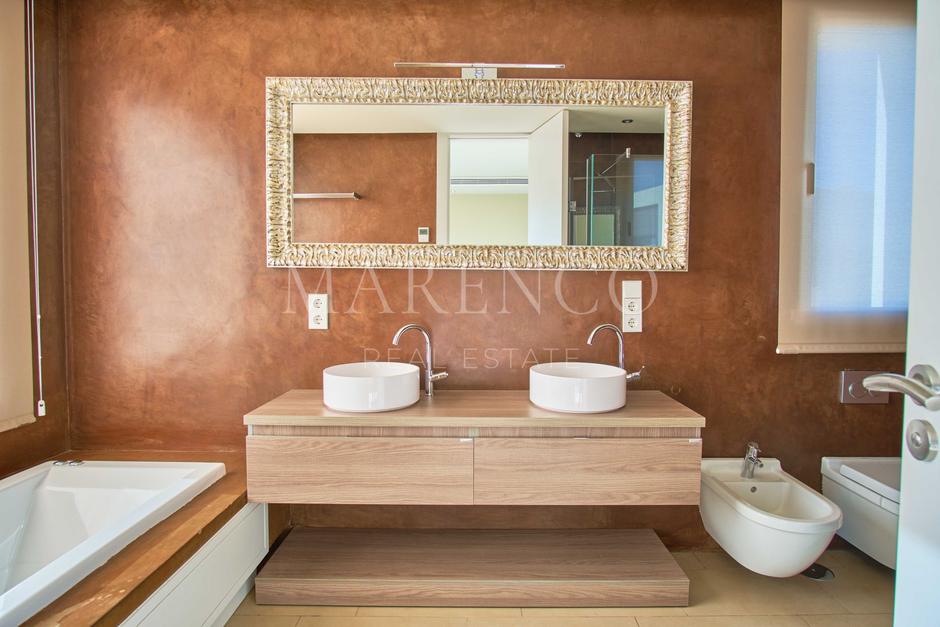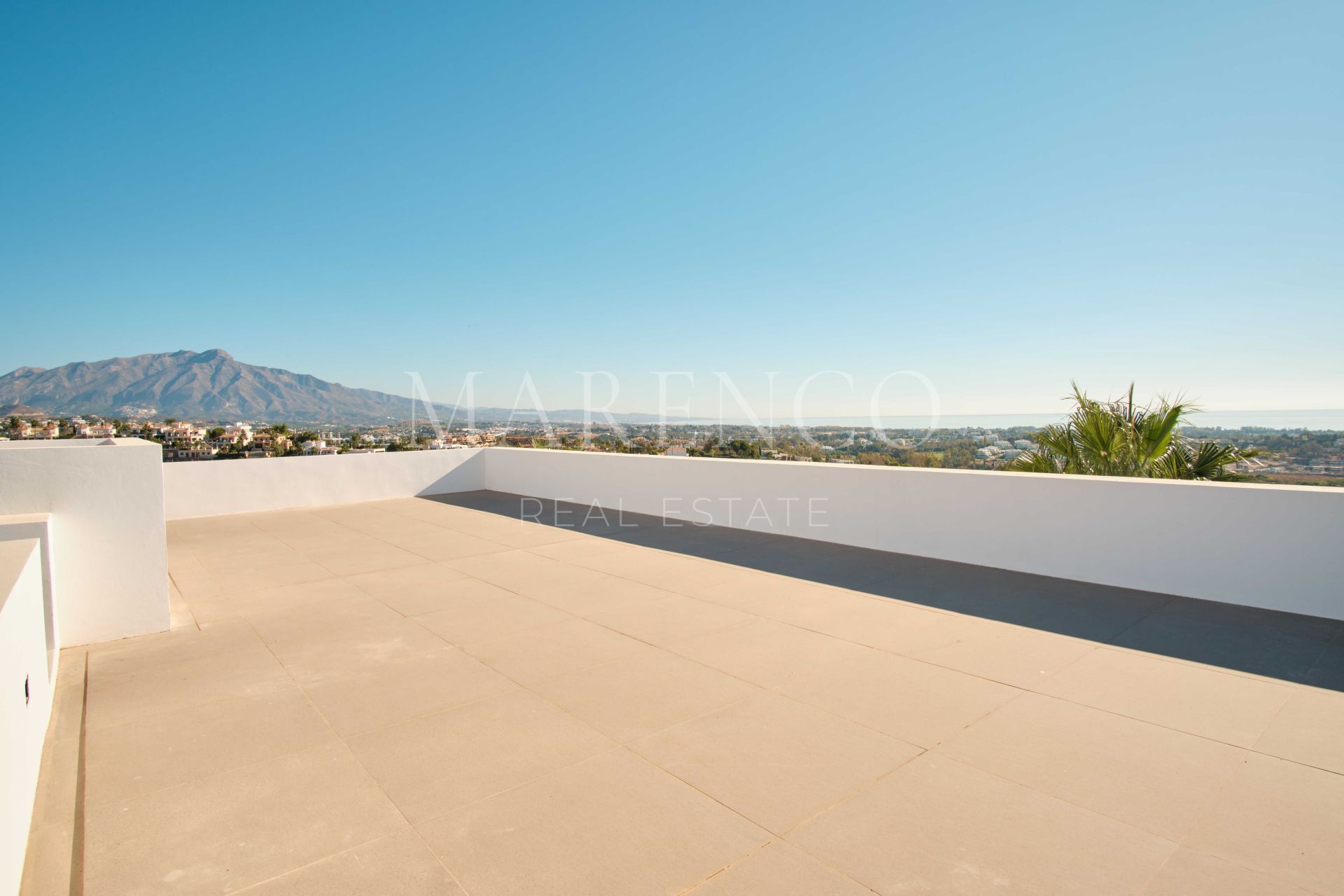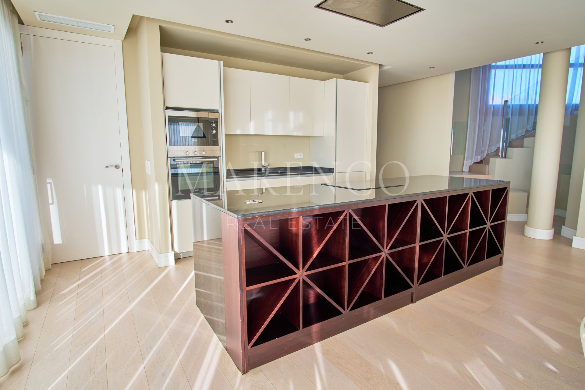 Diese Liegenschaft, orientation Süden, haben folgende Ausstattung: private terrasse, annehmlichkeiten nahebei, türsteher, klimaanlage, nahe ortszentrum, meerblick, küche ausgestattet, waschküche, bergsicht, golfsicht, fußbodenheizung im gesamten haus, nähe golfplatz, keller, glastüren, holzboden, waschküche, solarium, geschlossene wohnanlage, grill, kürzlich renoviert, 24std sicherheitsdienst, gästetoilette und panoramablick.
