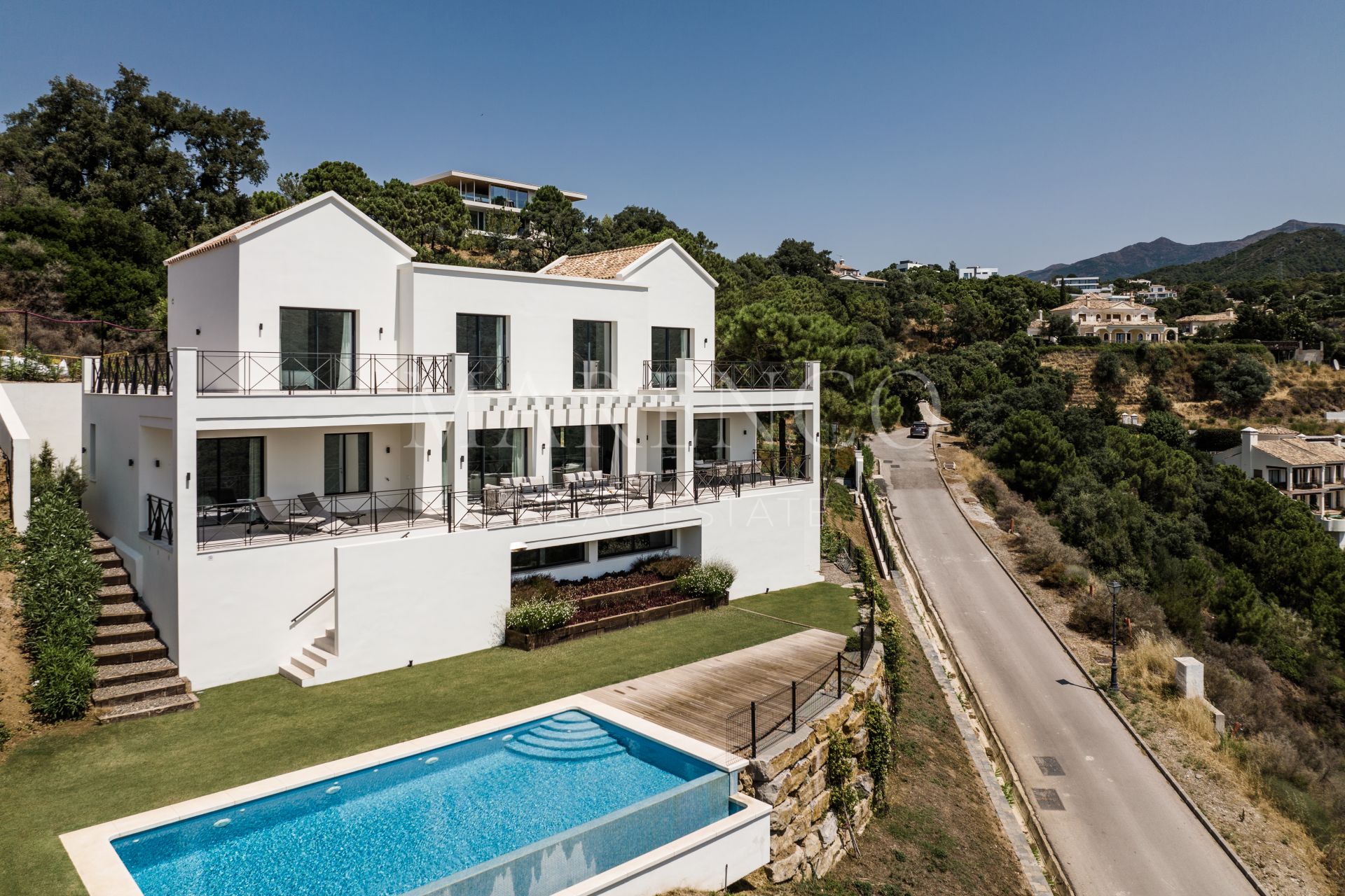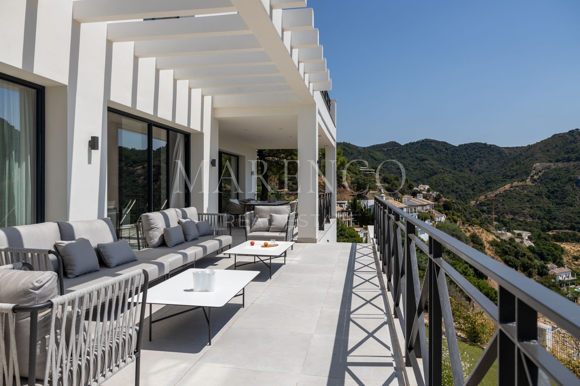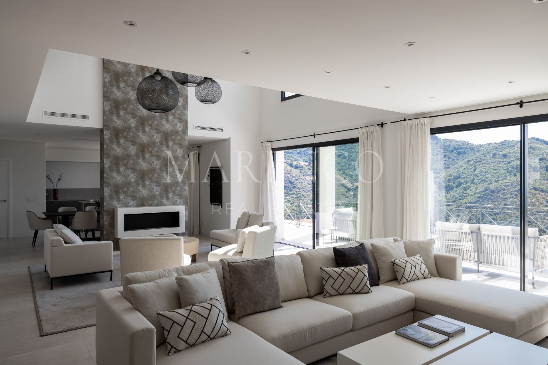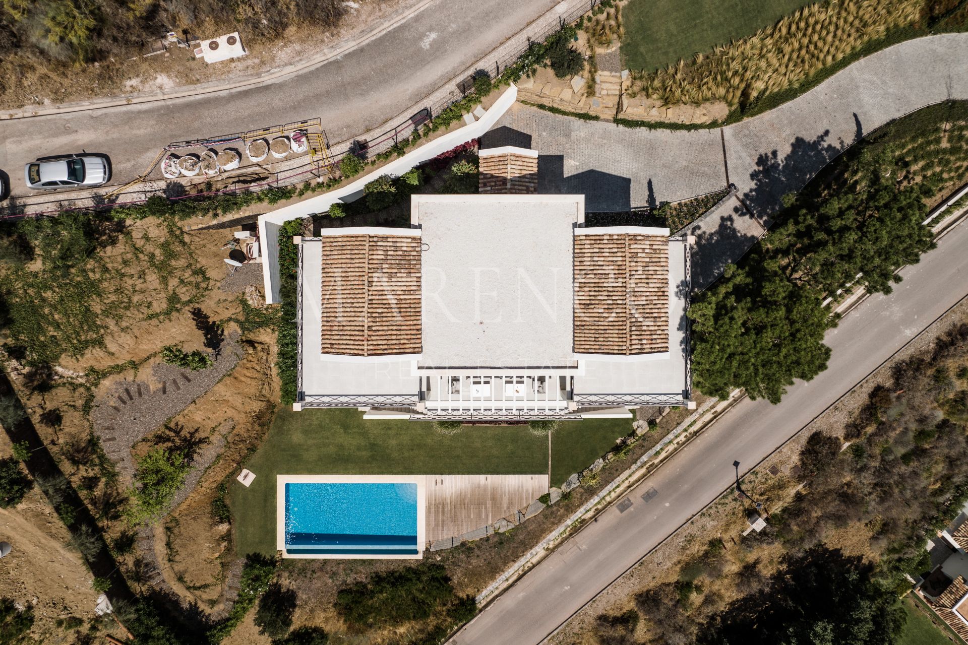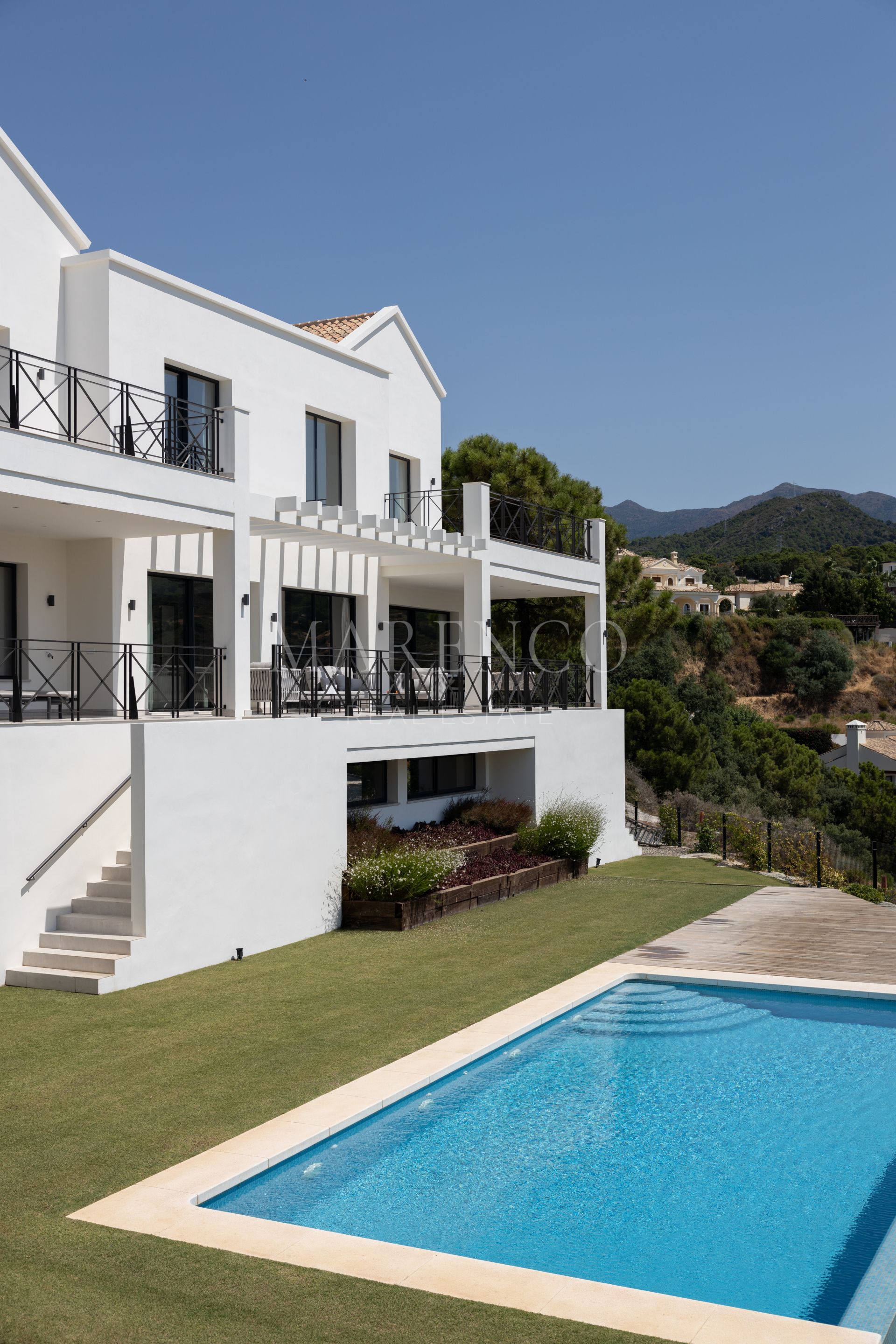 Villa zu verkaufen in Monte Mayor, Benahavis mit 4 Schlafzimmer, 4 Badezimmer, 1 Toilette, eingebaut 2021 und hat Schwimmbad (privat), garage (privat) und Garten (privat). Maße: 556m² Gebaut, 2650m² handlung und 113m² Terrasse.