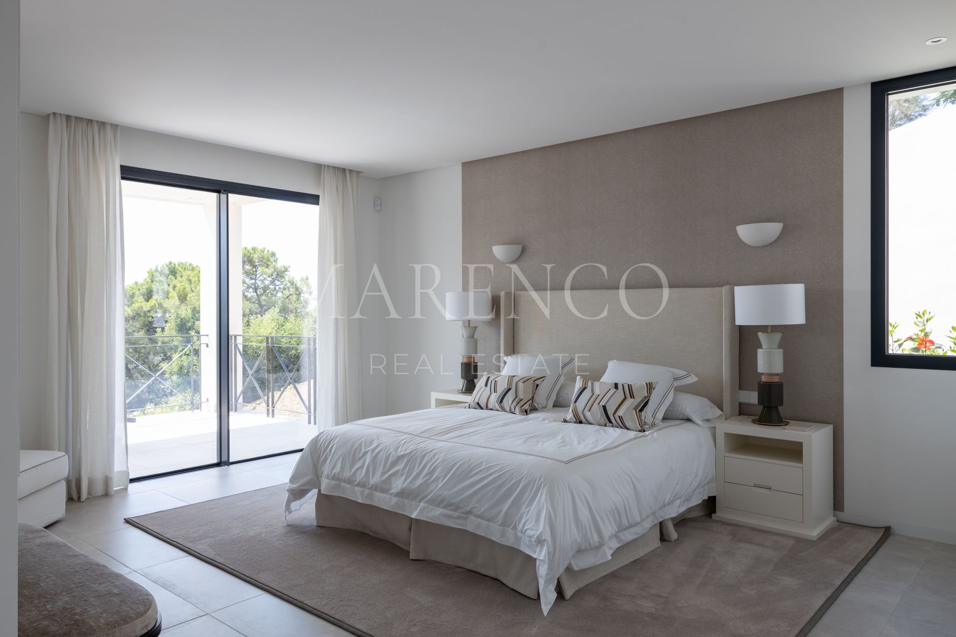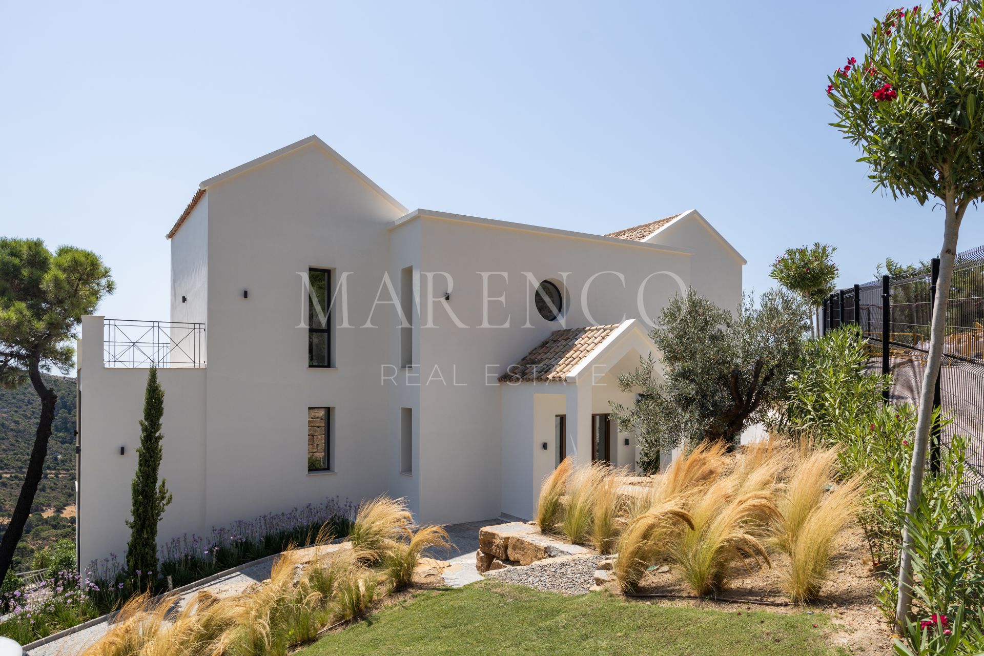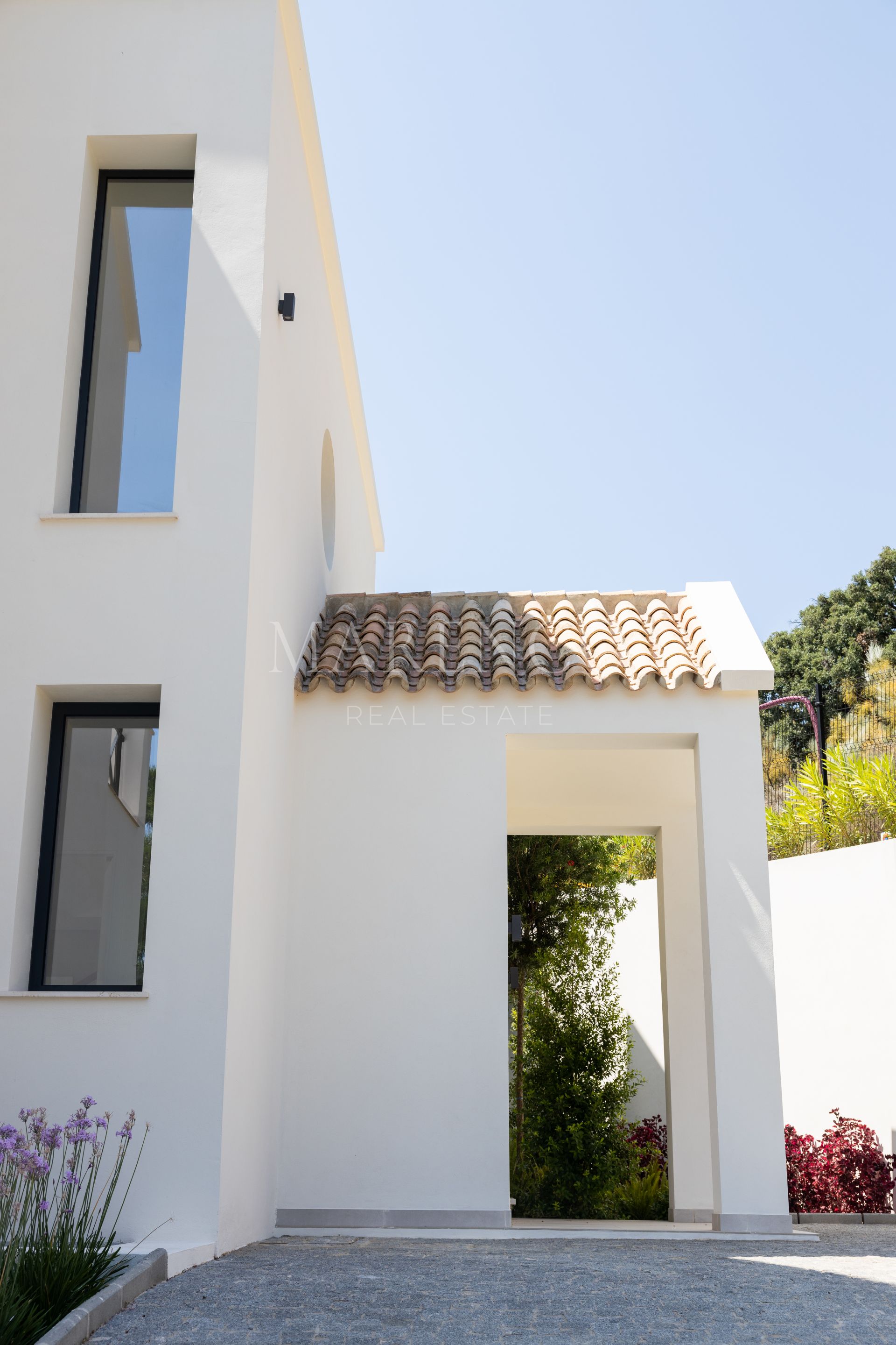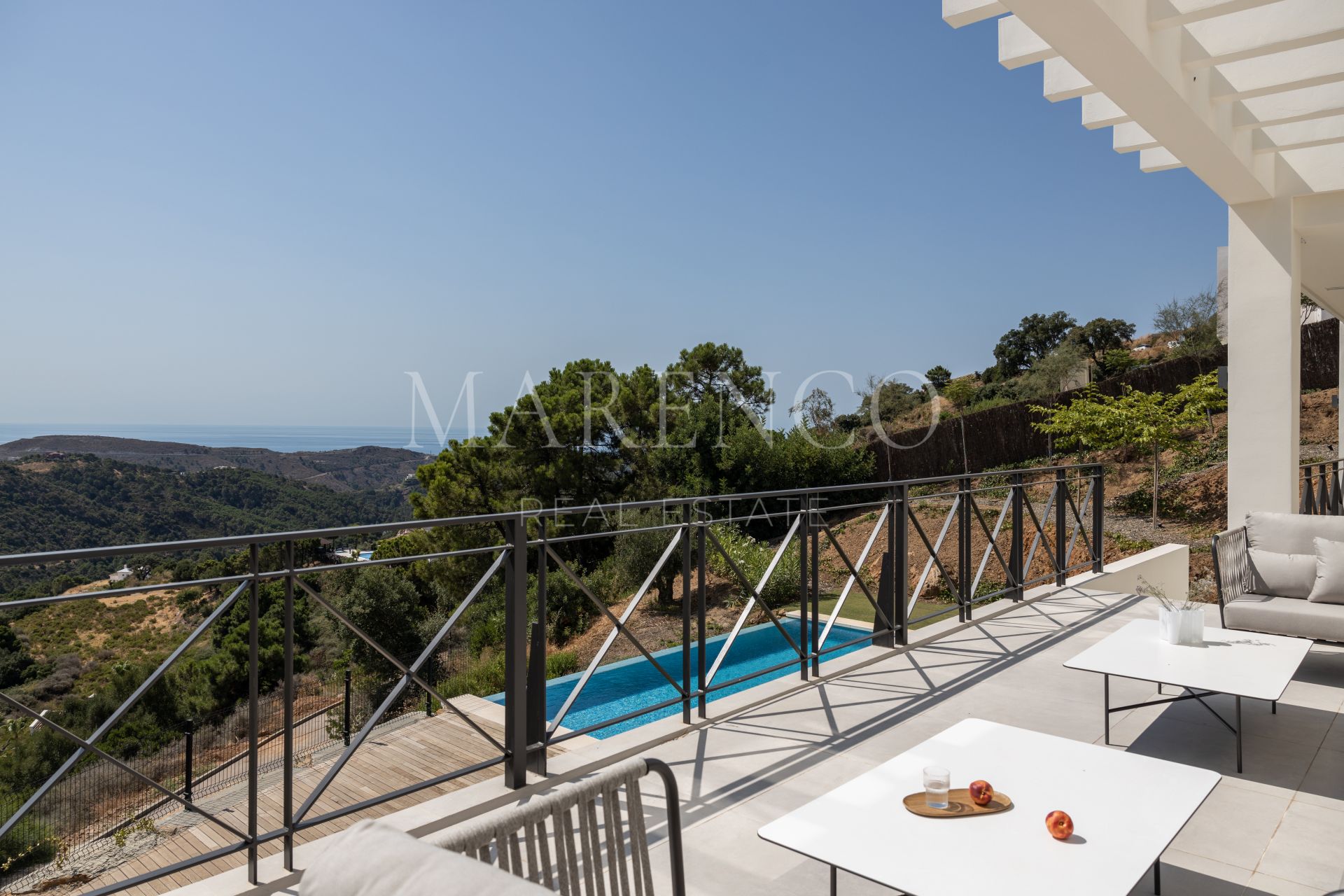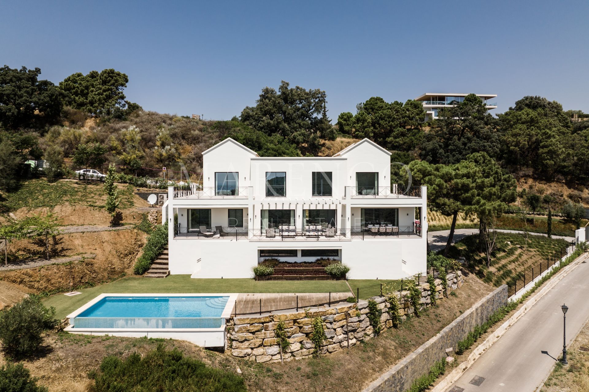 Villa zu verkaufen in Monte Mayor, Benahavis mit 4 Schlafzimmer, 4 Badezimmer, 1 Toilette, eingebaut 2021 und hat Schwimmbad (privat), garage (privat) und Garten (privat). Maße: 556m² Gebaut, 2650m² handlung und 113m² Terrasse.
