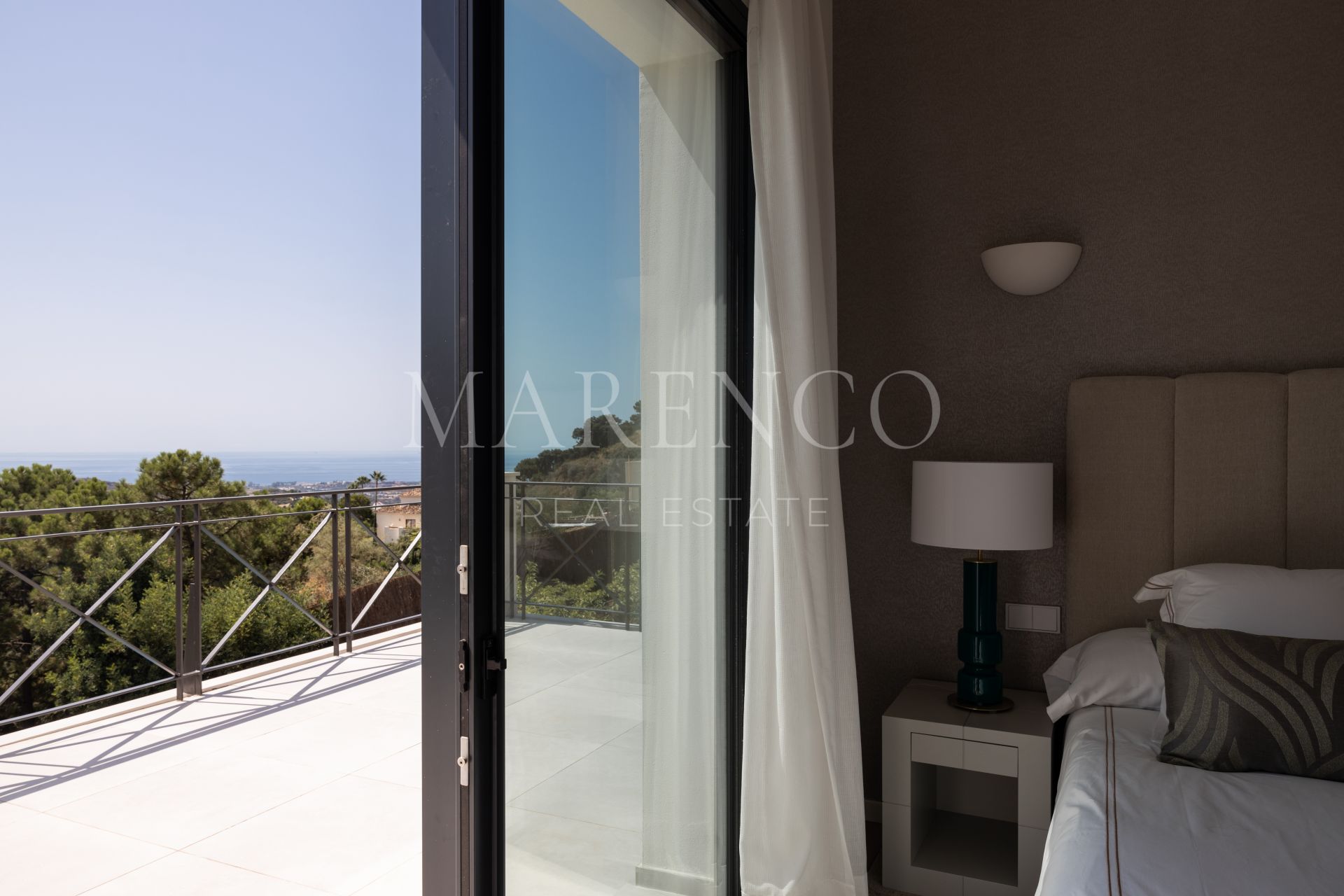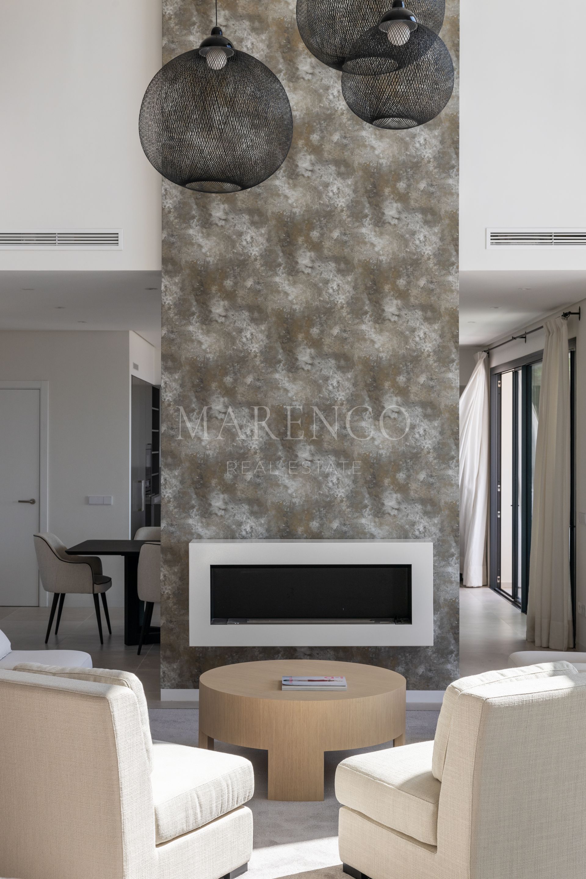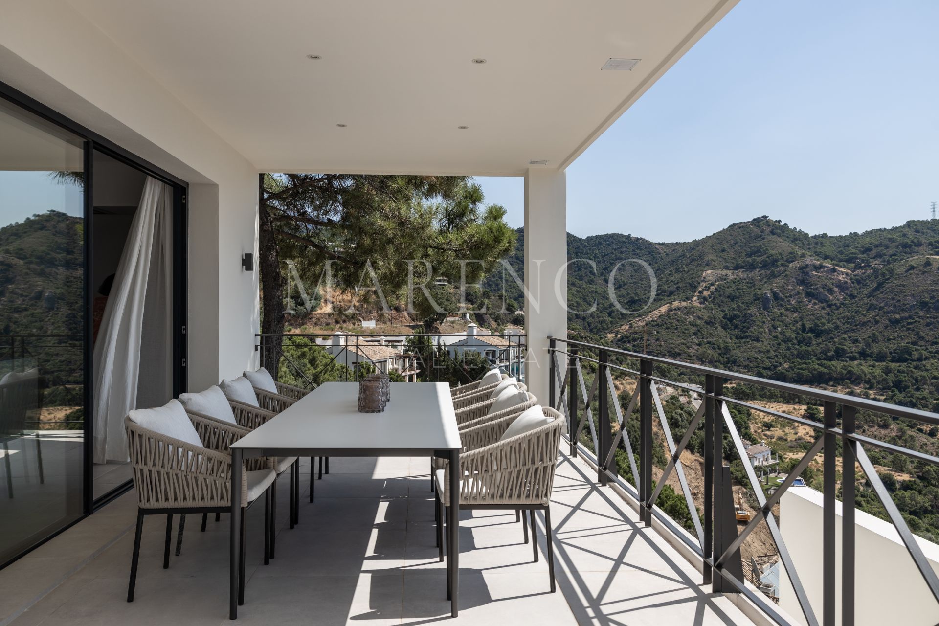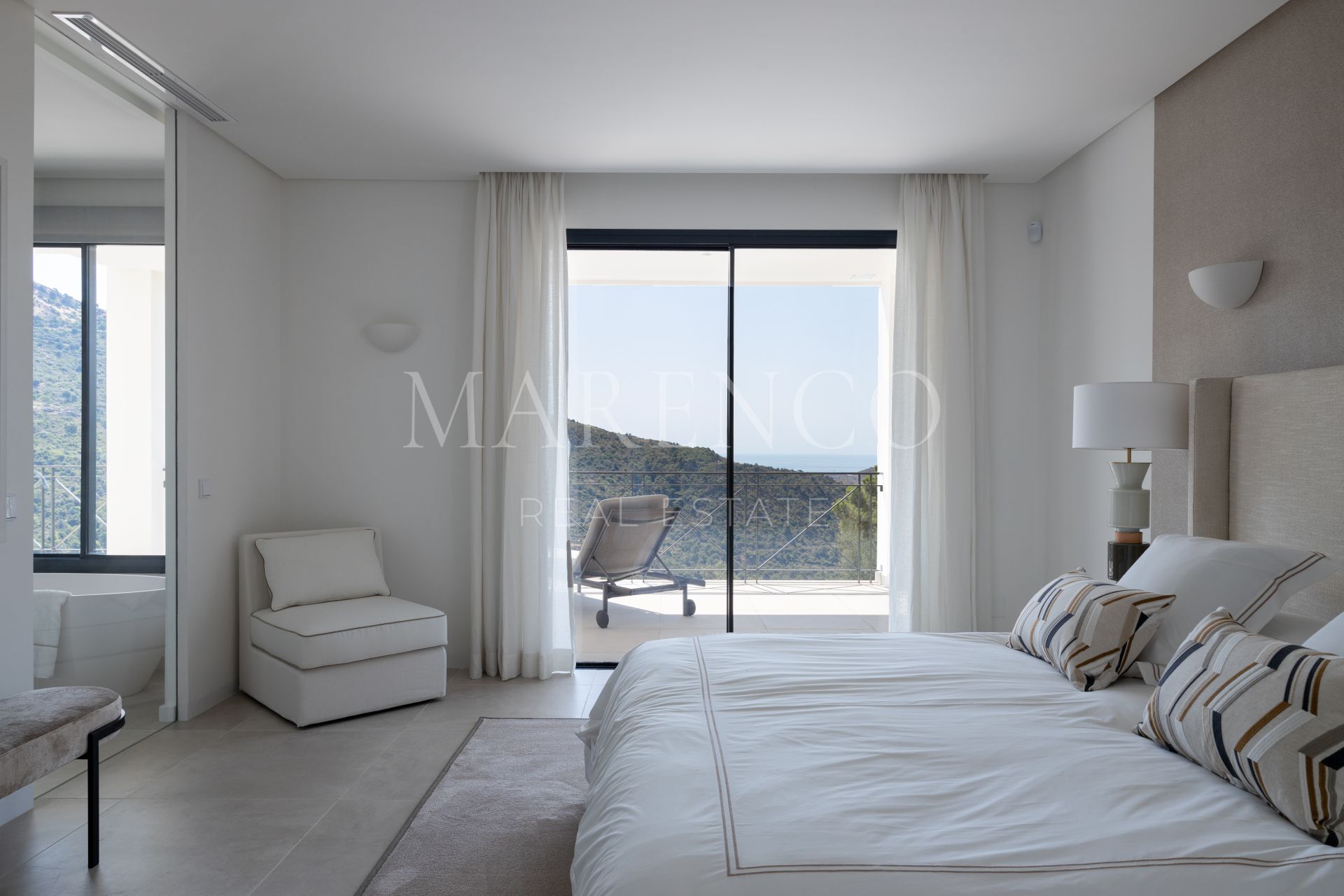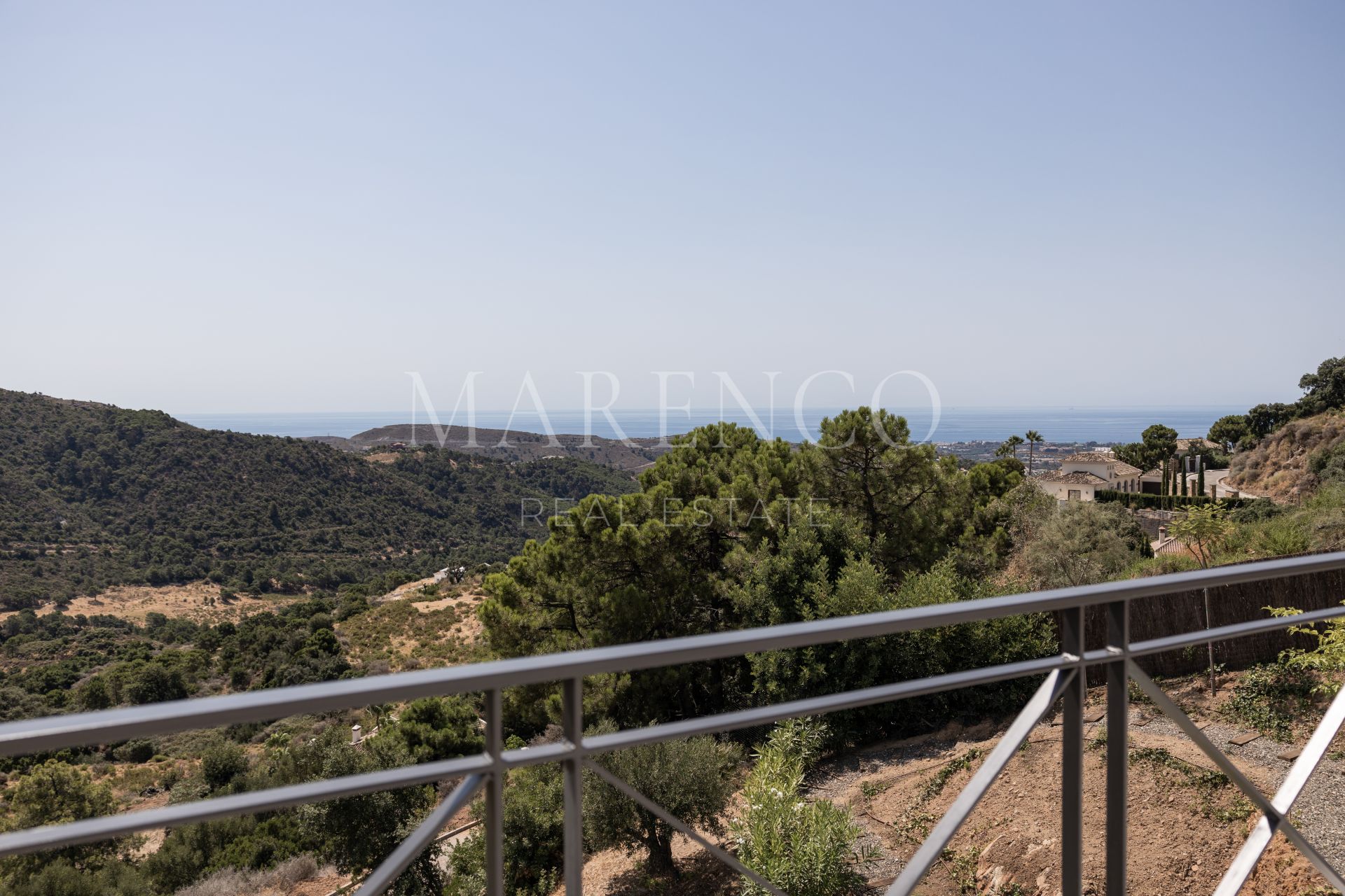 Diese Liegenschaft, orientation Süd-Ost, haben folgende Ausstattung: private terrasse, wohnzimmer, fussboden-kühlsystem, wassertank, nahe ortszentrum, meerblick, ausblick auf landschaft, bergsicht, büroraum, fußbodenheizung im gesamten haus, automatische bewässerungsanlage, hausautomation, waschküche, Überdachte terrasse, elektrische rollläden, einbauschränke, geschlossene wohnanlage, blick auf garten, blick aufs schwimmbad, panoramablick , bergnah, annehmlichkeiten nahebei, klimaanlage, küche ausgestattet, waschküche, offener kamin, nähe golfplatz, offene terrasse, keller, glastüren, abstellraum, offene küche, alarm, balkon, möbel nach wahl, sicherheitseingang, neubau, hervorragender zustand, wohnzimmer, 24std sicherheitsdienst und gästetoilette.
