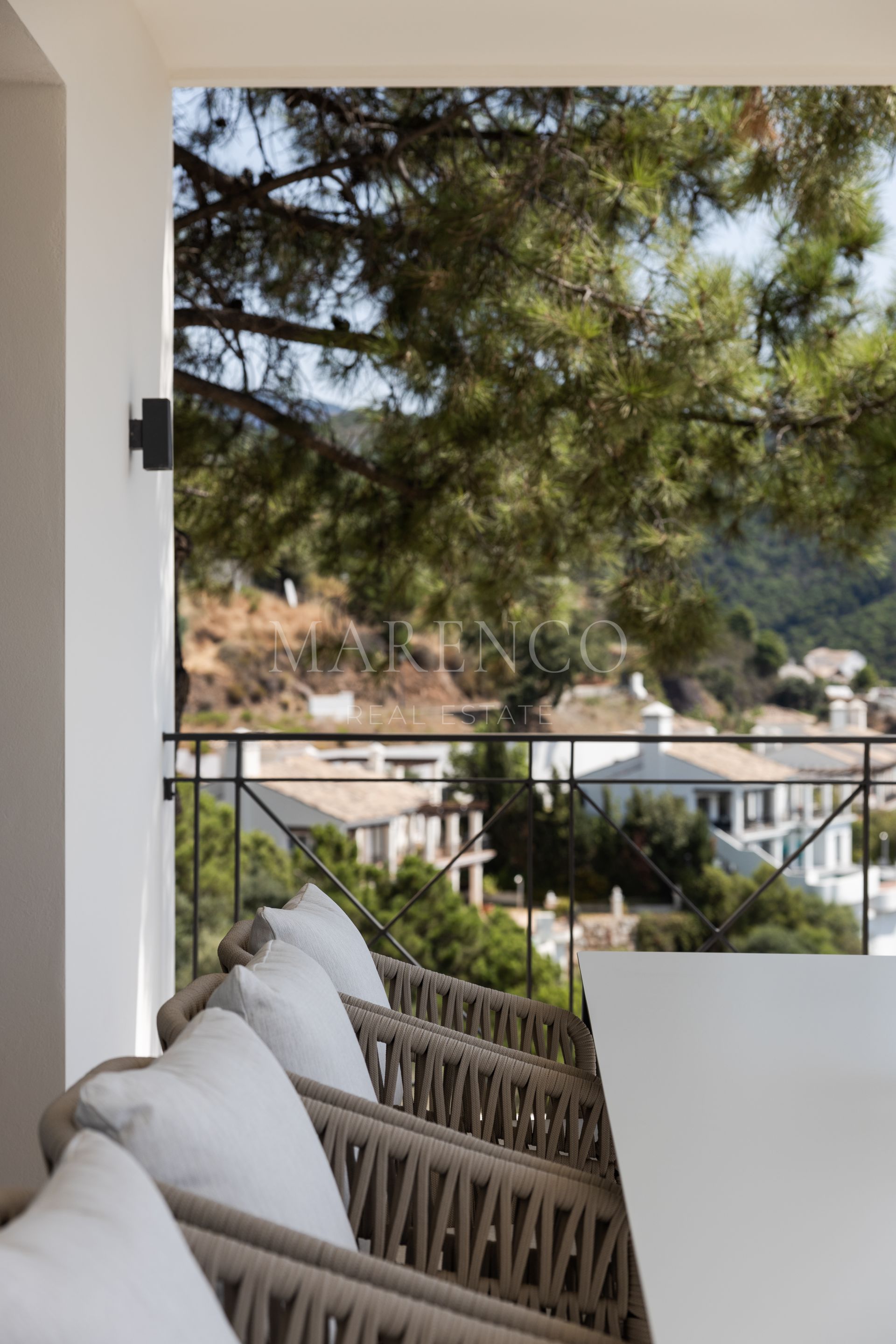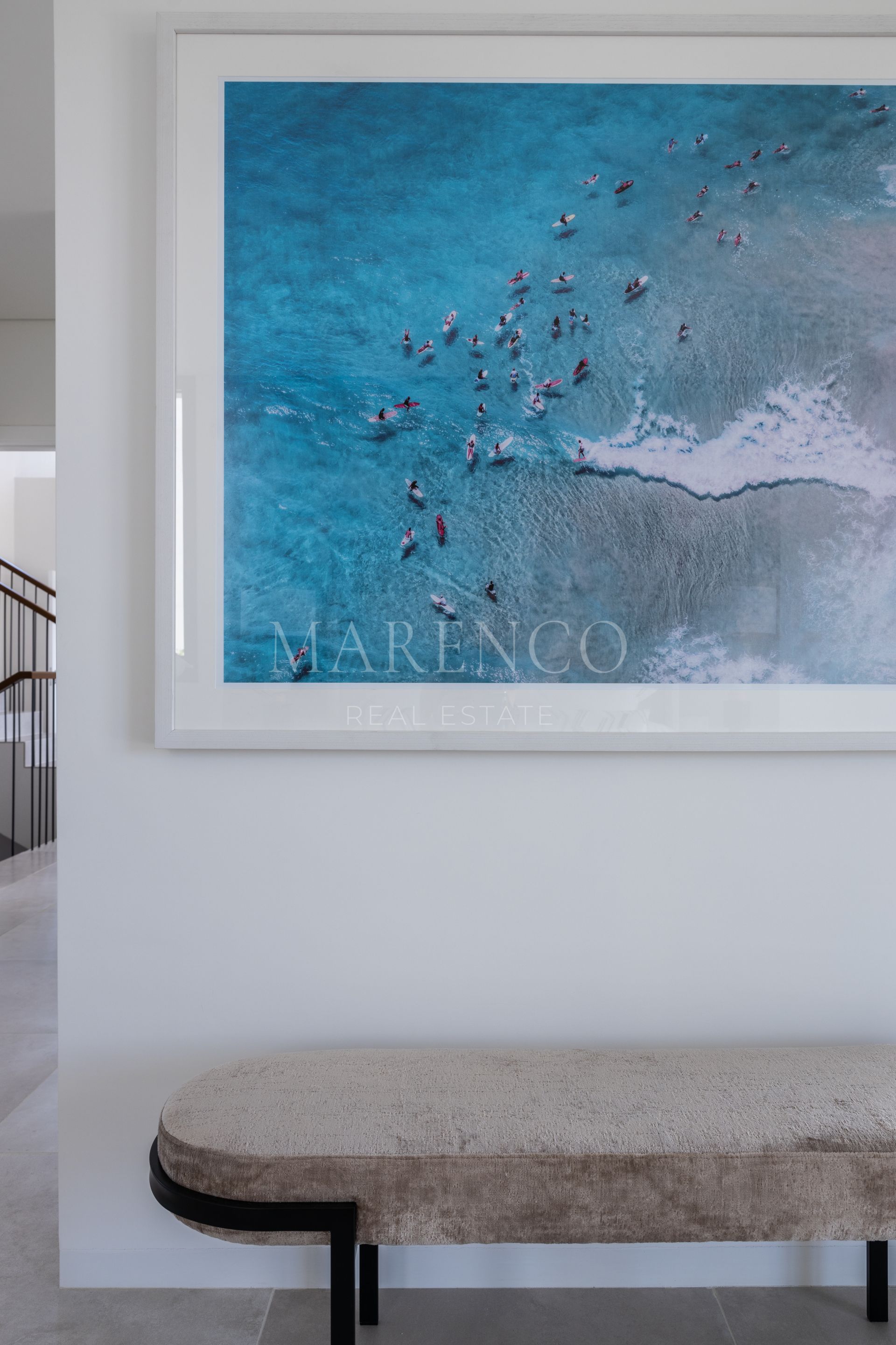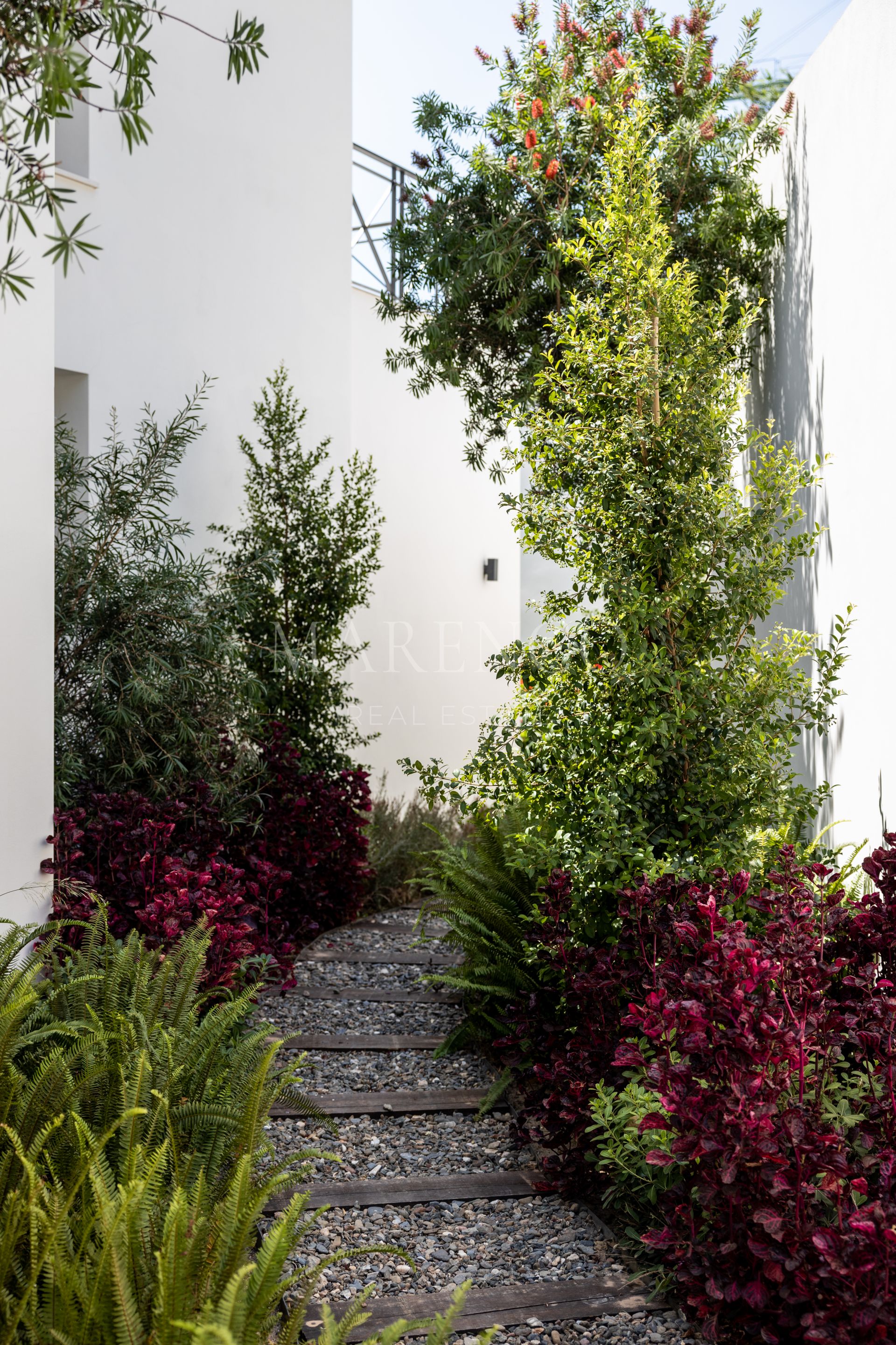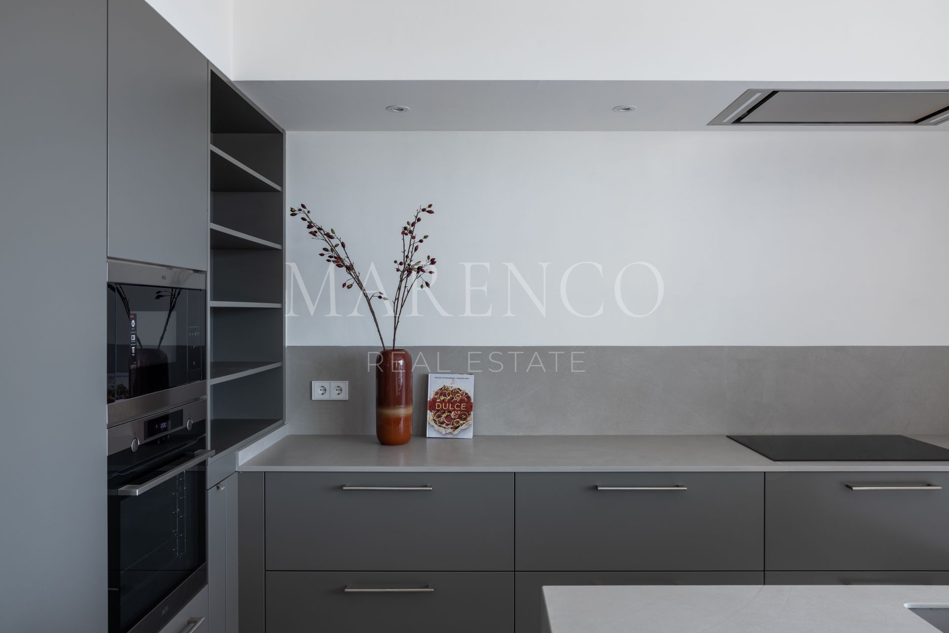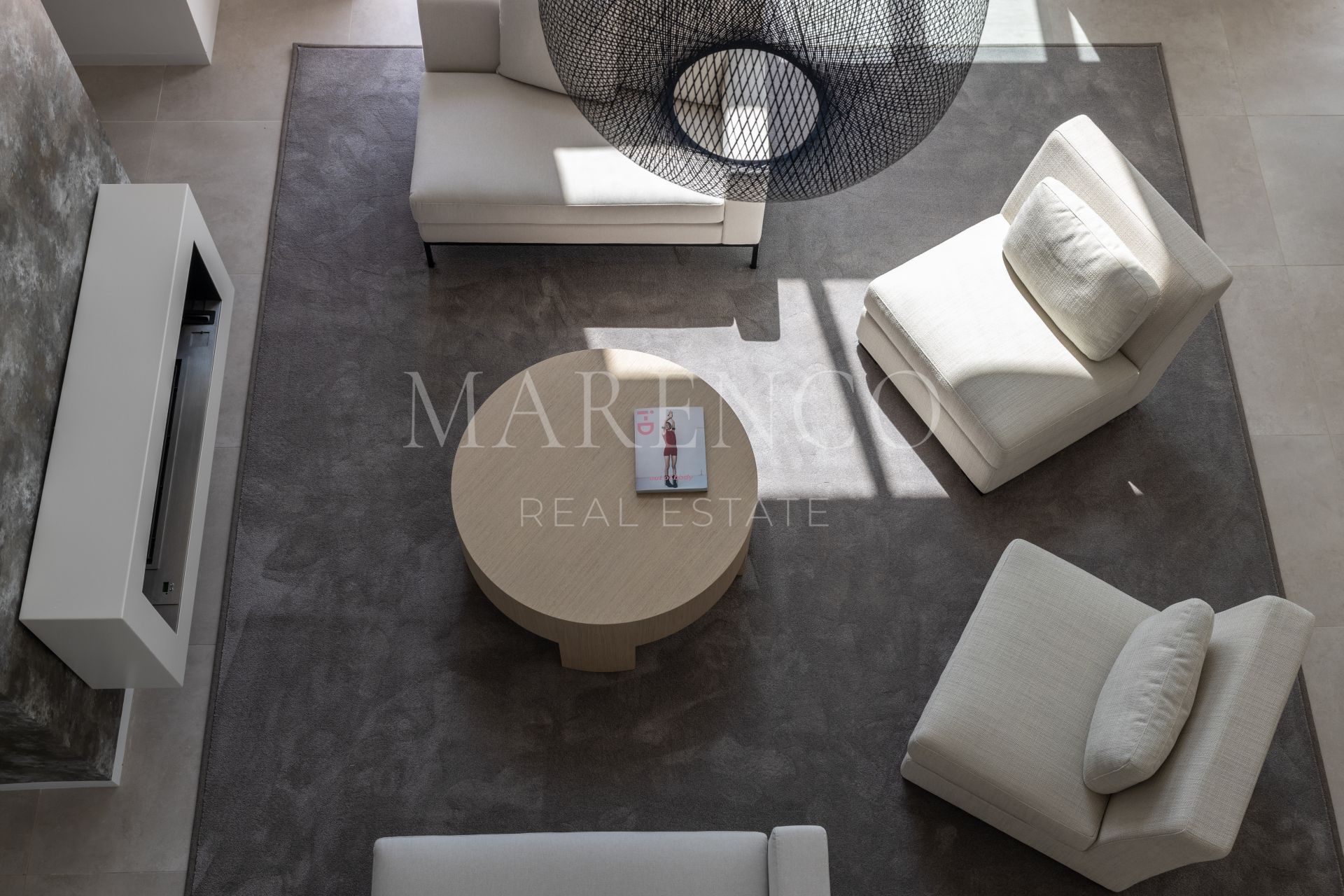 Diese Liegenschaft, orientation Süd-Ost, haben folgende Ausstattung: private terrasse, wohnzimmer, fussboden-kühlsystem, wassertank, nahe ortszentrum, meerblick, ausblick auf landschaft, bergsicht, büroraum, fußbodenheizung im gesamten haus, automatische bewässerungsanlage, hausautomation, waschküche, Überdachte terrasse, elektrische rollläden, einbauschränke, geschlossene wohnanlage, blick auf garten, blick aufs schwimmbad, panoramablick , bergnah, annehmlichkeiten nahebei, klimaanlage, küche ausgestattet, waschküche, offener kamin, nähe golfplatz, offene terrasse, keller, glastüren, abstellraum, offene küche, alarm, balkon, möbel nach wahl, sicherheitseingang, neubau, hervorragender zustand, wohnzimmer, 24std sicherheitsdienst und gästetoilette.