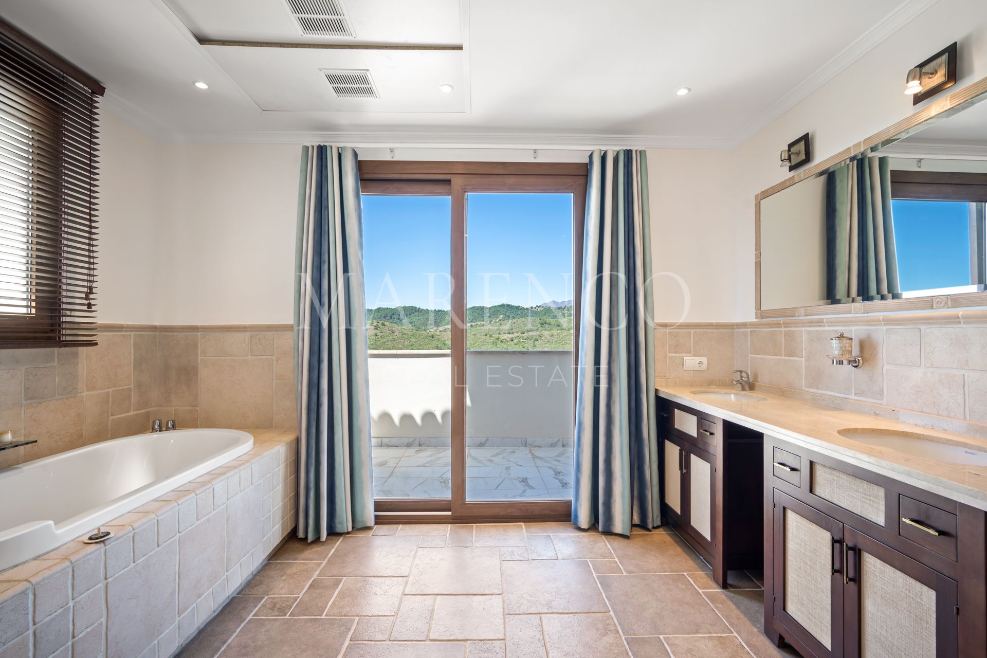 Villa zu verkaufen in Monte Mayor, Benahavis mit 6 Schlafzimmer, 7 Badezimmer, eingebaut 2008 und hat Schwimmbad (privat), garage (abstellplatz) und Garten (privat). Maße: 766m² Gebaut, 3950m² handlung und 41m² Terrasse.