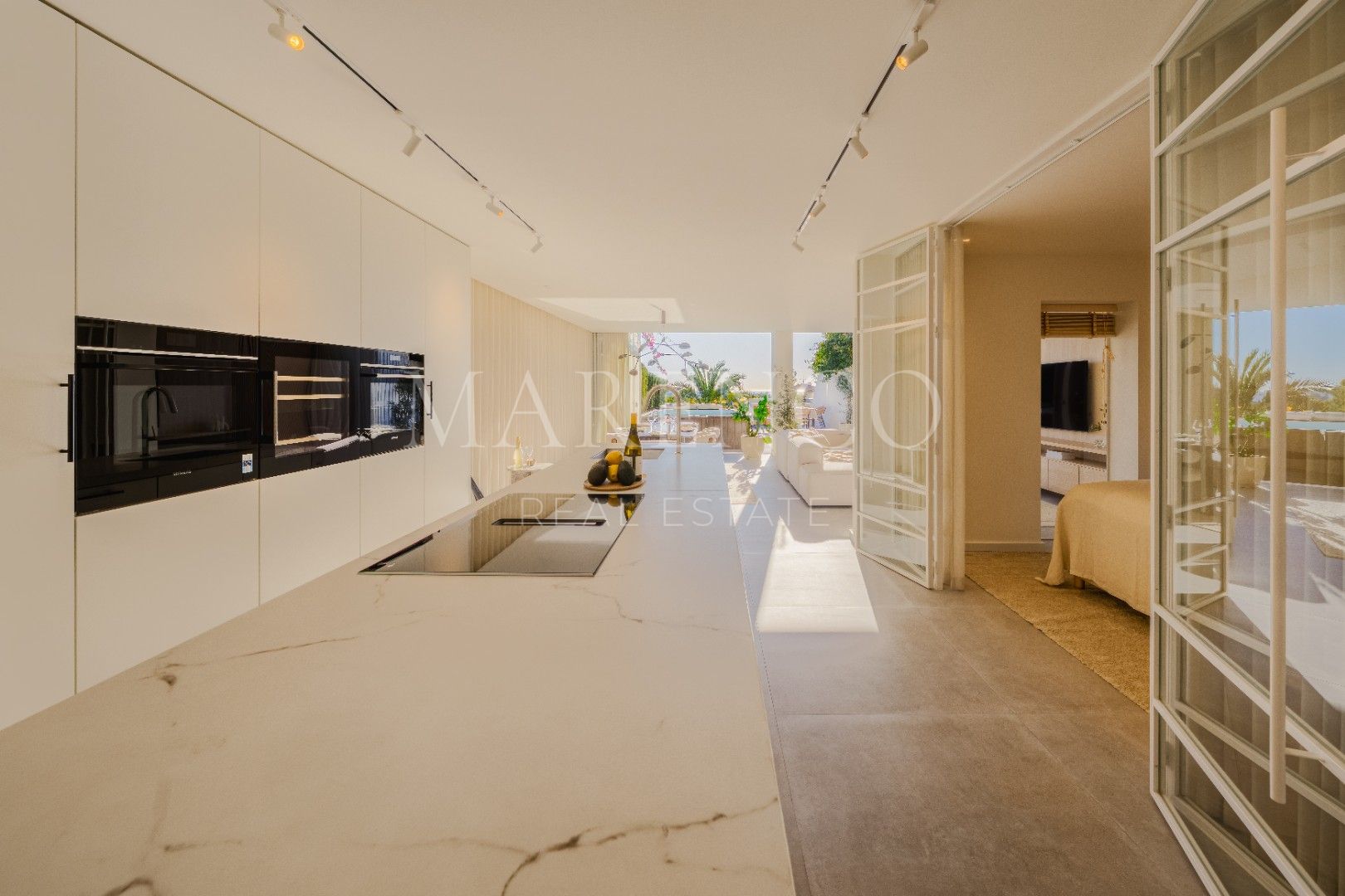 Eine wunderschöne Wohnung mit 3 Schlafzimmern, privatem Pool und Terrasse mit Meer- und Bergblick. Kürzlich mit einem eleganten skandinavischen Touch renoviert, bietet diese Erdgeschossresidenz maßgefertigte Tischlerarbeiten und individuell gestaltete Möbel für ein besonders stilvolles Wohngefühl.