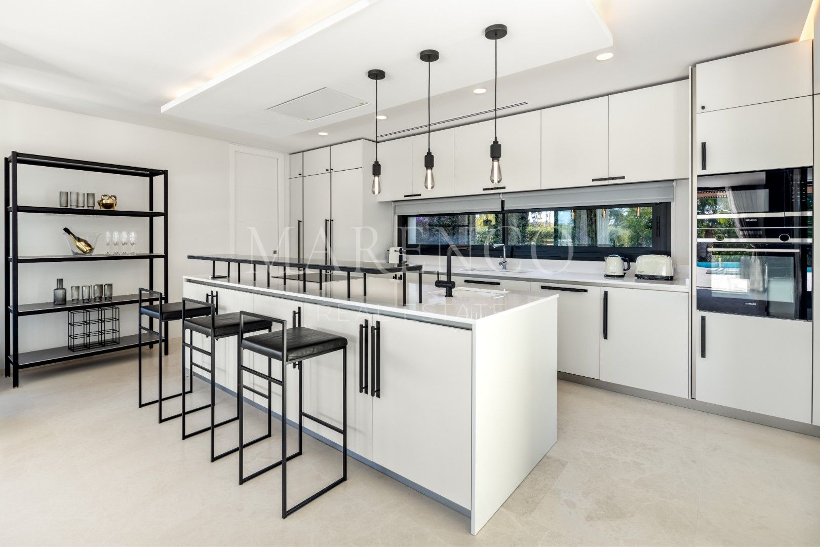 Villa zu verkaufen in Nueva Andalucia, Marbella mit 6 Schlafzimmer, 8 Badezimmer und hat Schwimmbad (privat), garage (privat) und Garten (privat). Maße: 680m² Gebaut, 1751m² handlung und 301m² Terrasse.