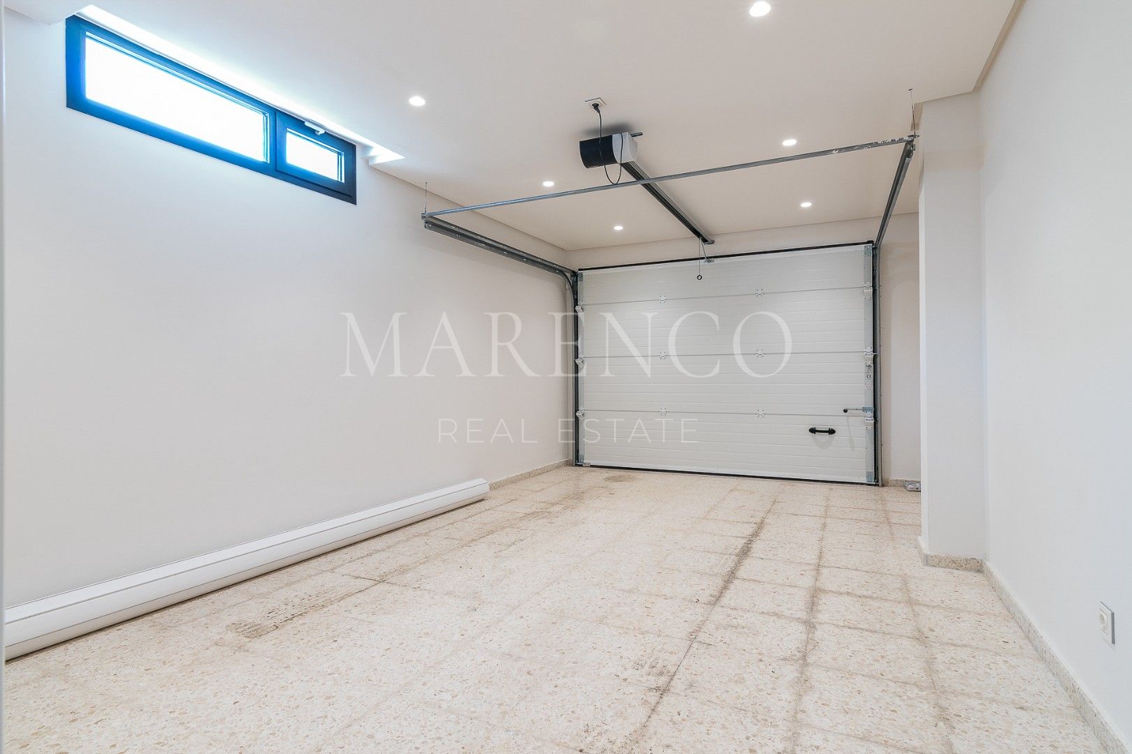 Das Untergeschoss erweitert die Flexibilität der Villa mit einem großzügigen Keller. Hier wird ein großes Schlafzimmer durch einen geräumigen Waschbereich ergänzt, der in ein Heimkino oder Fitnessstudio umgestaltet werden könnte und so verschiedene Lebensstile unterstützt. Jeder Aspekt dieses Hauses wurde sorgfältig durchdacht, um den Wohnkomfort zu maximieren, mit hohen Decken, traditionellen Holzbalken und Schüco-Fenstern, die die Innenräume mit natürlichem Licht durchfluten und atemberaubende Ausblicke auf den Berg La Concha und den angrenzenden Golfplatz bieten.