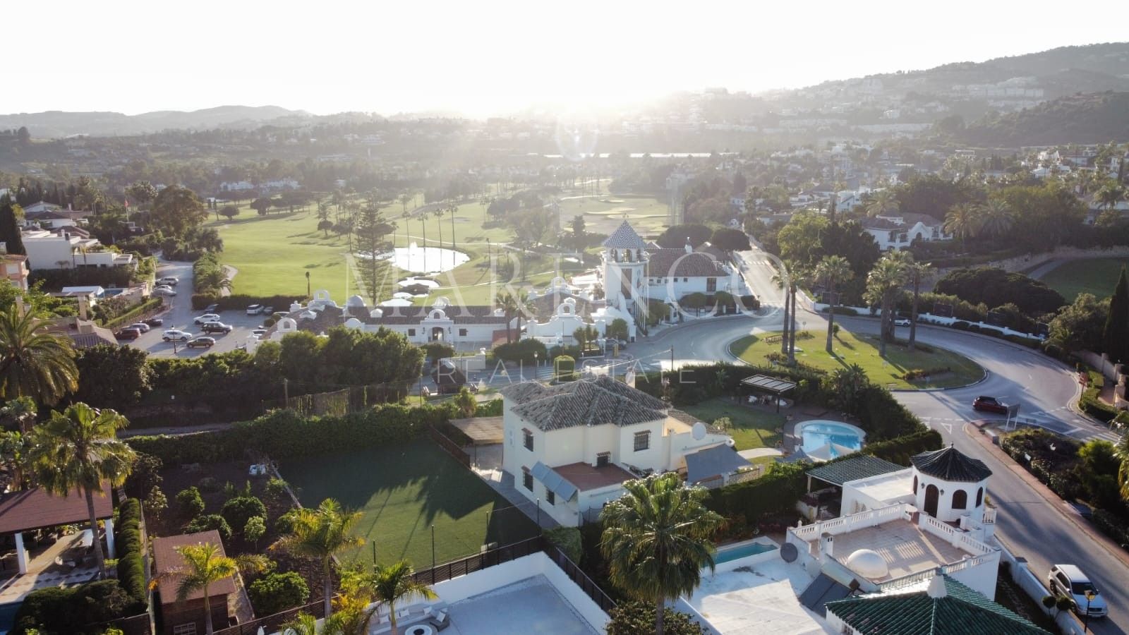 Auf einem großzügigen Grundstück von 1.826 m² erbaut, bietet die Villa helle und weitläufige Innenräume. Sie verfügt über sechs Schlafzimmer und vier Badezimmer, darunter eine Mastersuite mit direktem Zugang zur Terrasse, ein gemütliches Wohnzimmer mit Kamin, ein Essbereich mit Zugang zu den Terrassen sowie eine Einbauküche mit großem Modernisierungspotenzial. Die klassische andalusische Architektur verleiht der Villa eine zeitlose Eleganz.
